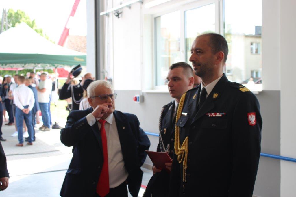 Kulminacyjnym punktem uroczystości było symboliczne przecięcie wstęgi przed garażami wyjazdowymi remizy przez zaproszonych gości.