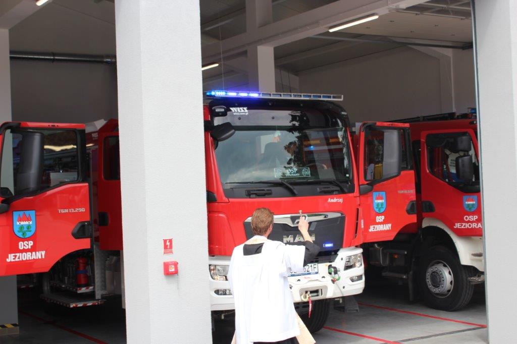 Ksiądz Wikariusz Parafii Św. Bartłomieja Apostoła w Jezioranach Łukasz Potoczek poświęcił budynek, nowe pojazdy pożarnicze oraz sprzęt ratowniczy. Następnie głos zabrali zaproszeni goście, którzy gratulowali władzom samorządowym inwestycji, a strażakom zaangażowania i odwagi, jednocześnie życząc im bezpiecznych interwencji i satysfakcji z wykonywanej służby.