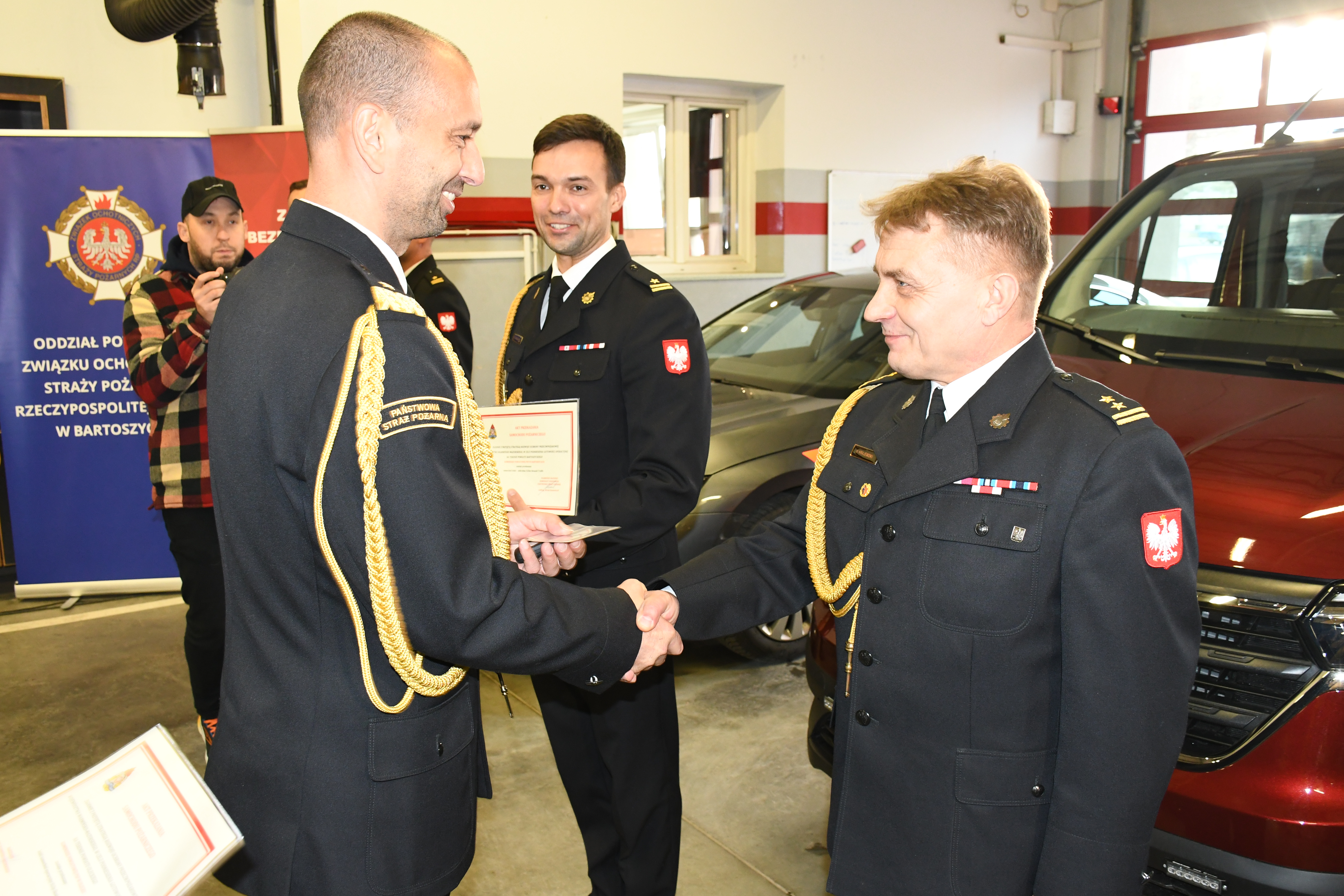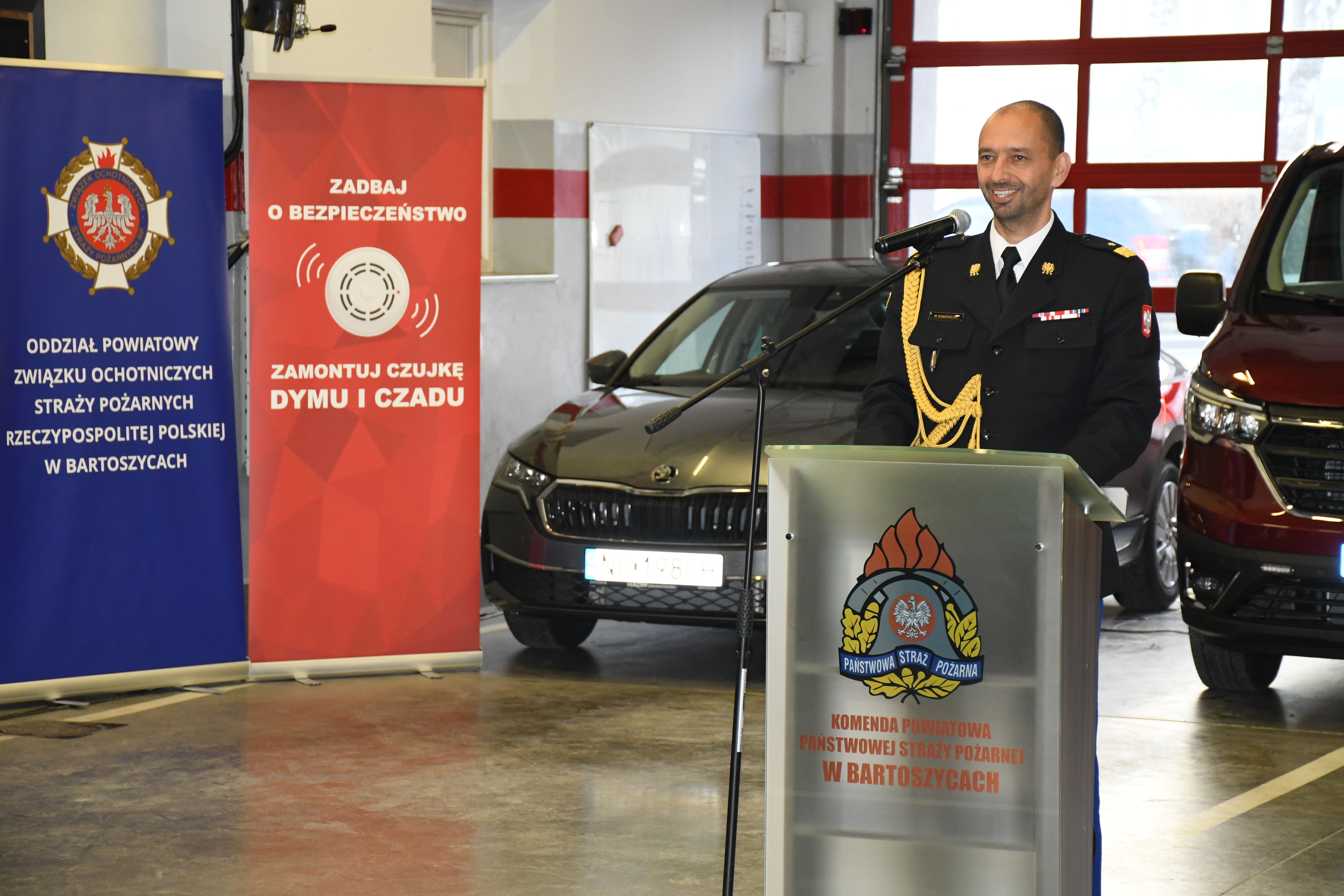 W piątek 20 grudnia w siedzibie Komendy Powiatowej Państwowej Straży Pożarnej w Bartoszycach odbyła się uroczysta zbiórka z okazji oficjalnego przekazania samochodów pożarniczych i łodzi ratowniczej jednostkom PSP oraz otwarcia kompleksu sportowo-szkoleniowego dla OSP i MDP. Ponadto trzem jednostkom Ochotniczych Straży Pożarnych z Warmii i Mazur wręczono akty włączenia jednostek do Krajowego Systemu Ratowniczo-Gaśniczego.