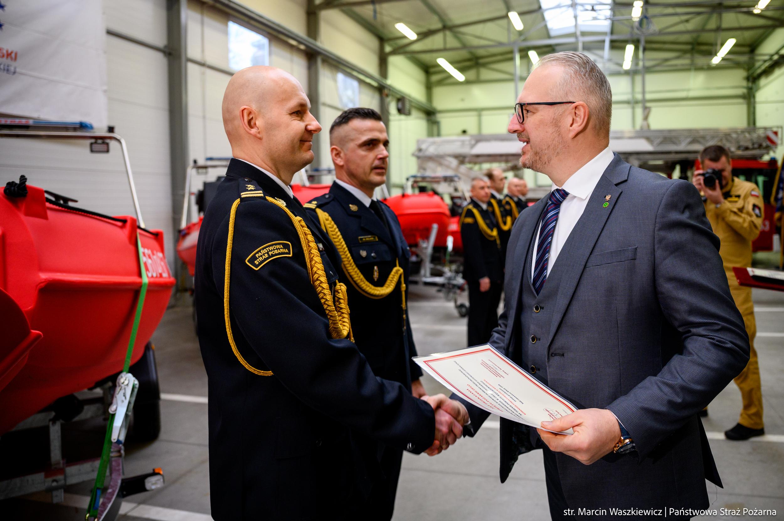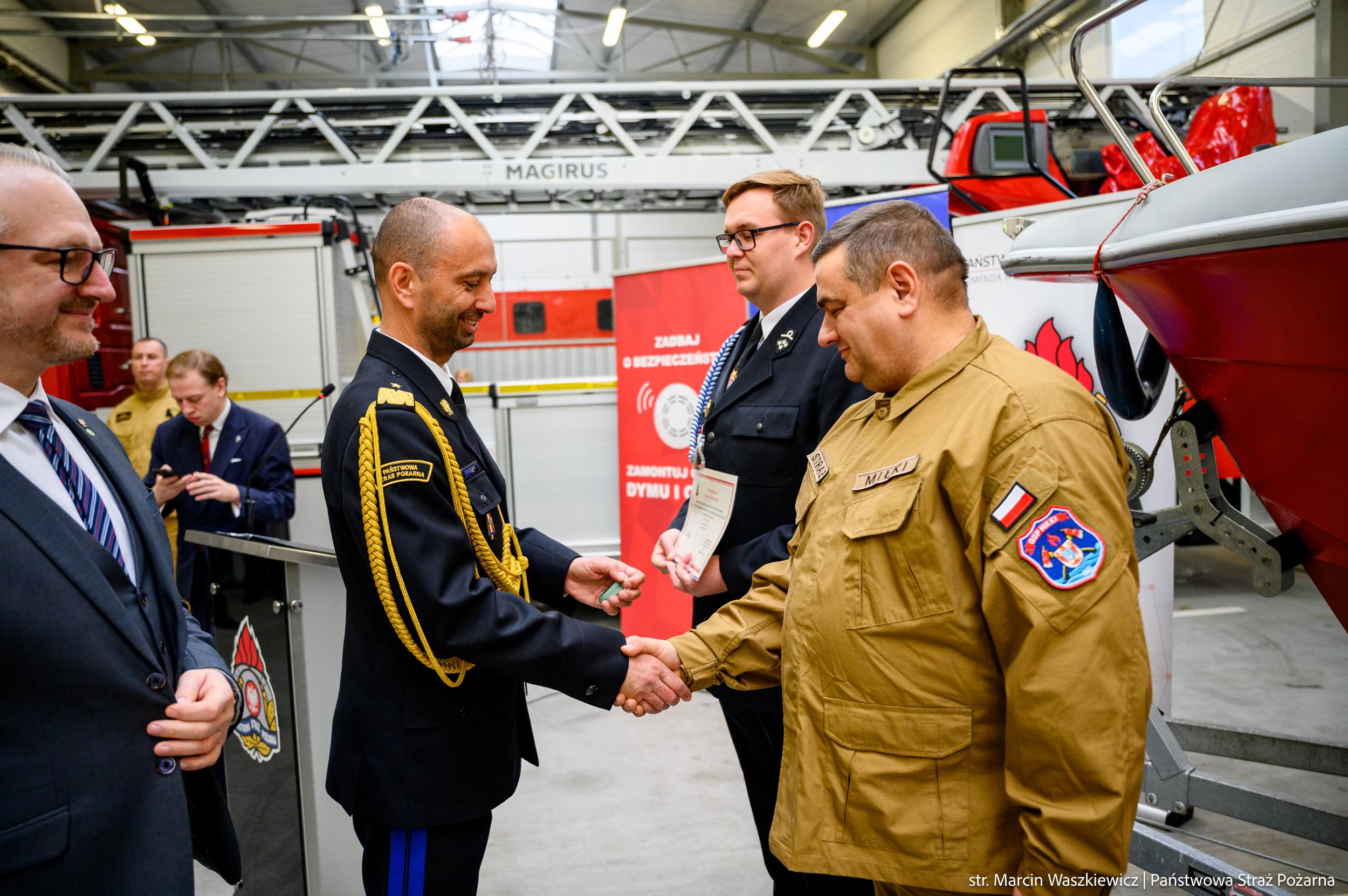 17 grudnia w siedzibie jednostki ratowniczo-gaśniczej nr 2 Komendy Miejskiej Państwowej Straży Pożarnej w Olsztynie odbyła się uroczysta zbiórka z okazji oficjalnego przekazania samochodów pożarniczych i łodzi ratowniczych jednostkom PSP i OSP. Ponadto pięciu jednostkom Ochotniczych Straży Pożarnych z Warmii i Mazur wręczono akty włączenia jednostek do Krajowego Systemu Ratowniczo-Gaśniczego.