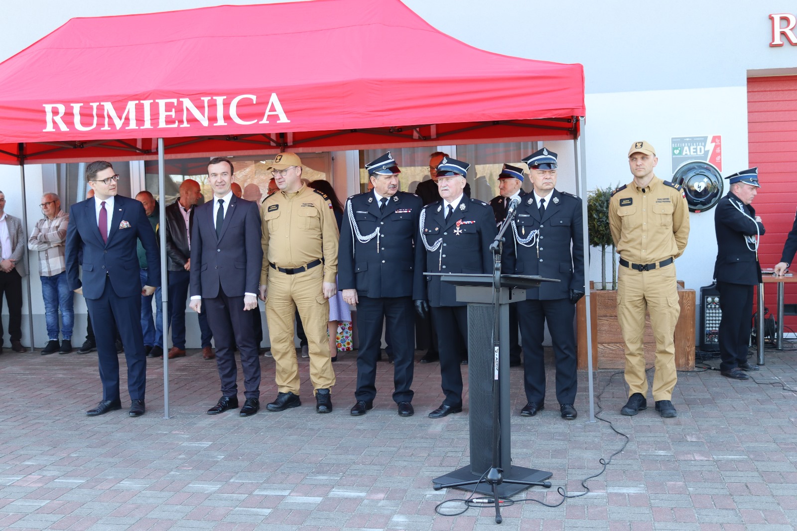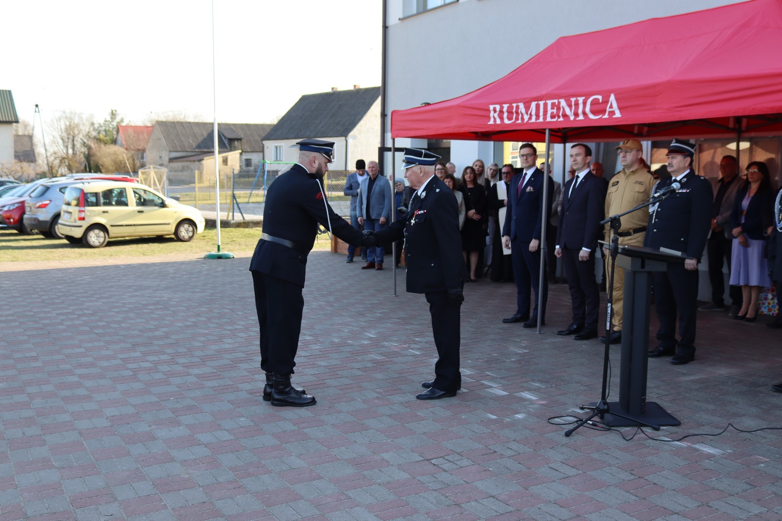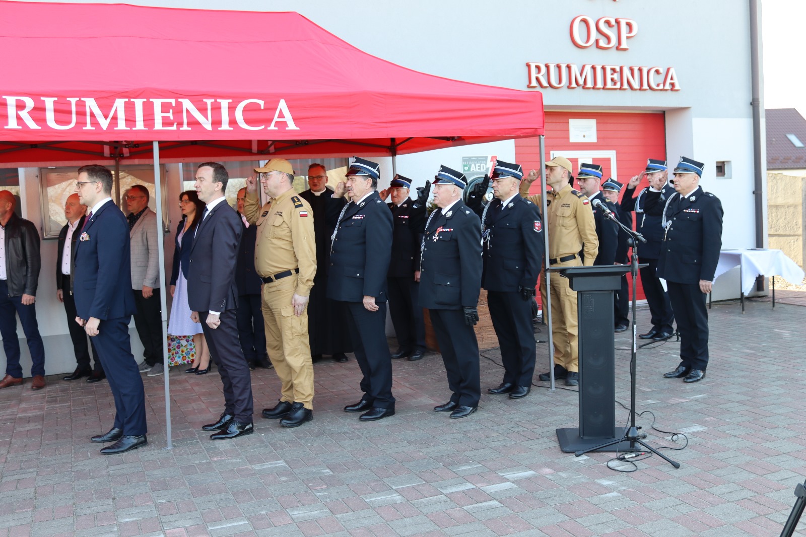 Z tej okazji przed remizą OSP Rumienica odbyła się uroczysta zbiórka, w której udział wzięli strażacy ochotnicy z Rumienicy oraz gminy Lubawa, lokalne społeczeństwo, a także zaproszeni goście. Obecni byli parlamentarzyści z regionu, Wicewojewoda Warmińsko-Mazurski, a Państwową Straż Pożarną reprezentowali st. bryg. Tomasz Ostrowski Zastępca Warmińsko-Mazurskiego Komendanta Wojewódzkiego PSP wraz z mł. bryg. Marcinem Wiśniewskim iławskim Komendantem Powiatowym PSP. Na uroczystość przybyli także przedstawiciele władz wojewódzkich i powiatowych Związku Ochotniczych Straży Pożarnych RP oraz samorządowcy.