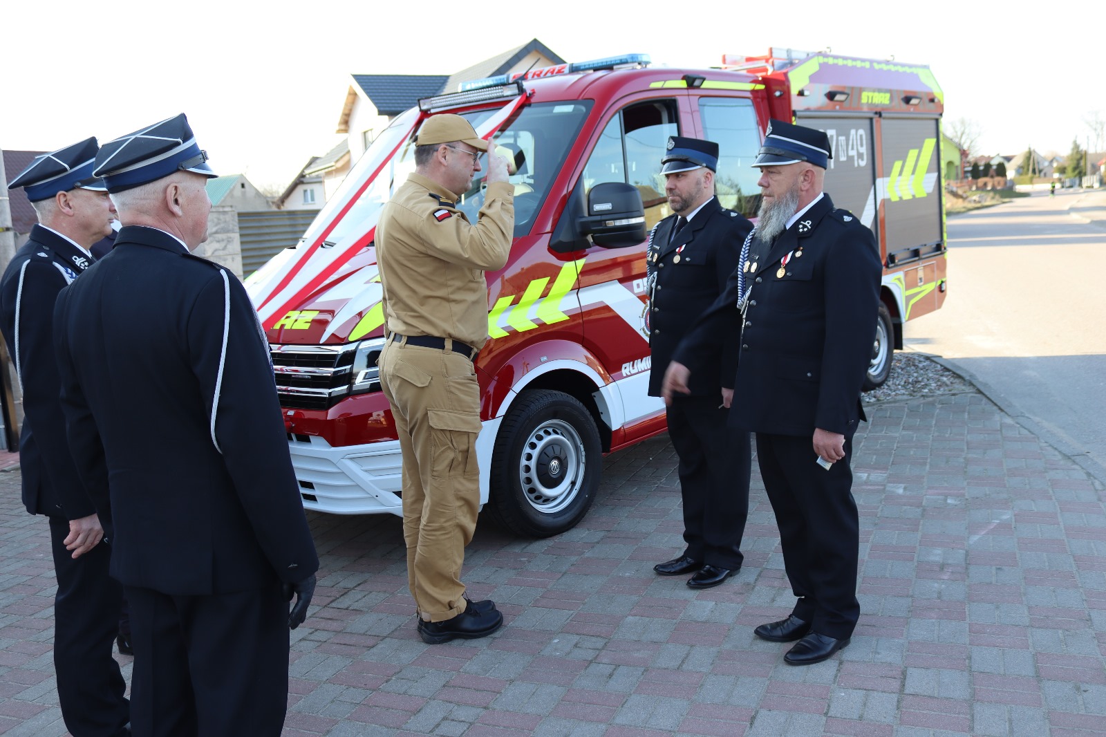Oficjalne przekazanie samochodu pożarniczego do OSP Rumienica – w uroczystości udział wziął zastępca komendanta wojewódzkiego PSP
