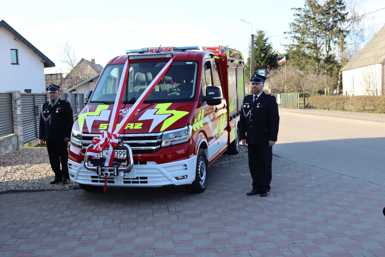 Kulminacyjnym punktem uroczystości było przekazanie kluczyków i dokumentów do nowego samochodu ratowniczo-gaśniczego, którego dokonał między innymi st. bryg. Tomasz Ostrowski.