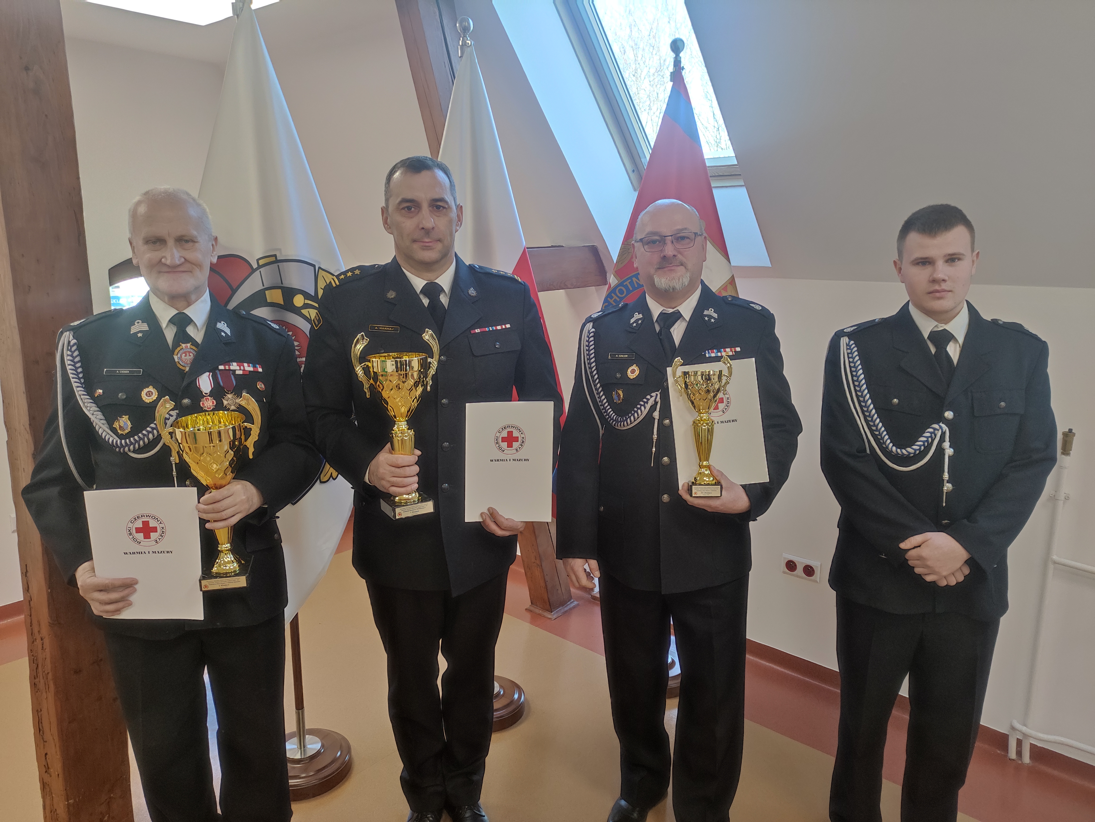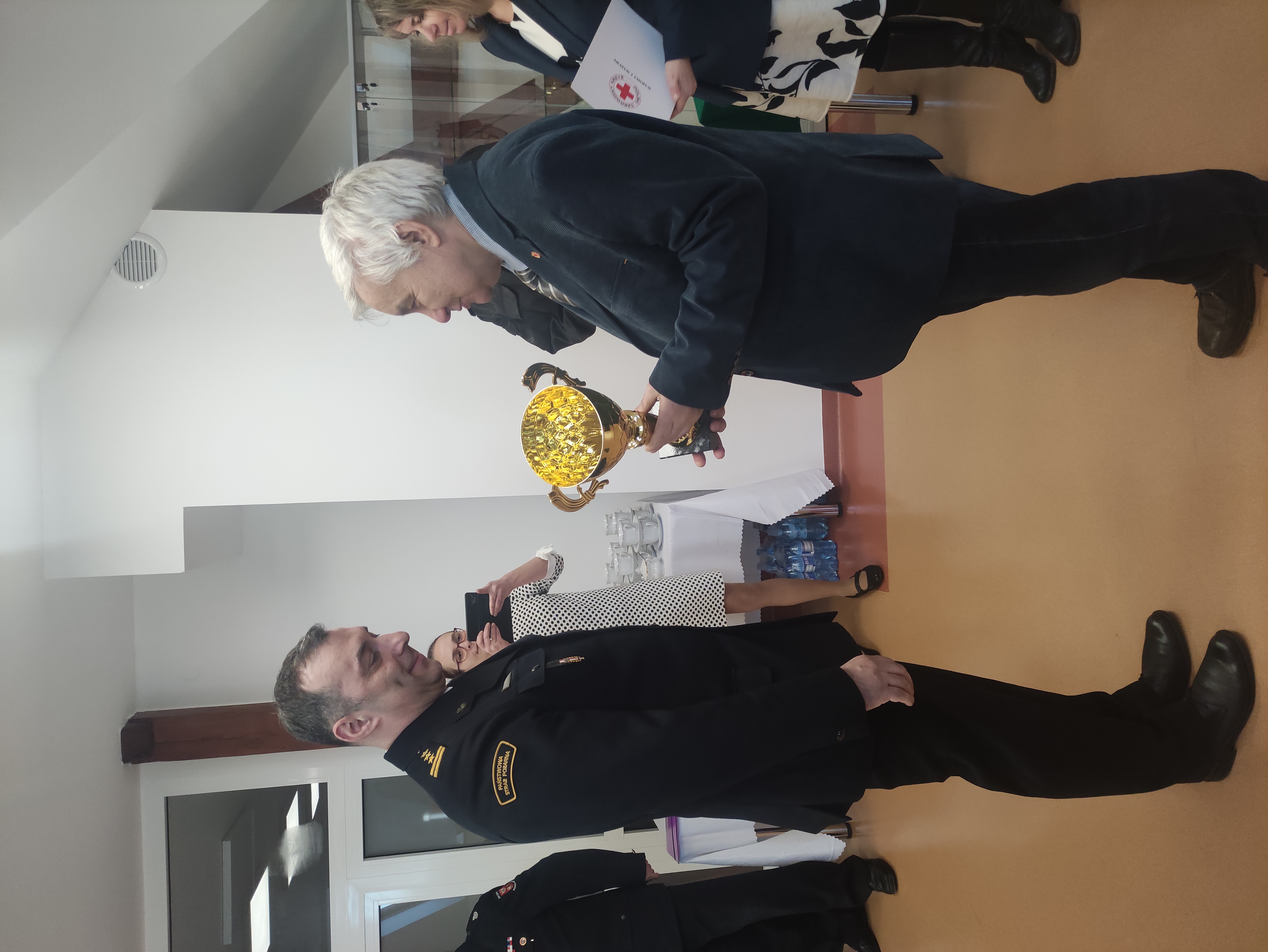 Prezes Warmińsko-Mazurskiego Oddziału Okręgowego PCK Pan Zbigniew Zawadzki wraz z Dyrektorem Okręgowym PCK Panią Dorotą d’Aystetten oraz Dyrektorem ZOW ZOSP RP dh. Grzegorzem Matczyńskim wręczyli okolicznościowe puchary i dyplomy jednostkom Państwowej Straży Pożarnej i Ochotniczych Straży Pożarnych woj. warmińsko-mazurskiego. Liderem zostali funkcjonariusze i druhowie z powiatu bartoszyckiego. Warmińsko-Mazurski Komendant Wojewódzki nadbryg. Tomasz Komoszyński przekazał wyrazy uznania Zarządowi Warmińsko-Mazurskiego Oddziału PCK za organizację akcji, a strażakom PSP i OSP pogratulował i podziękował za wkład i zaangażowanie.