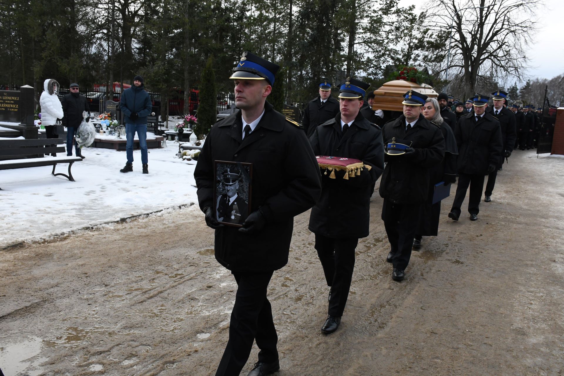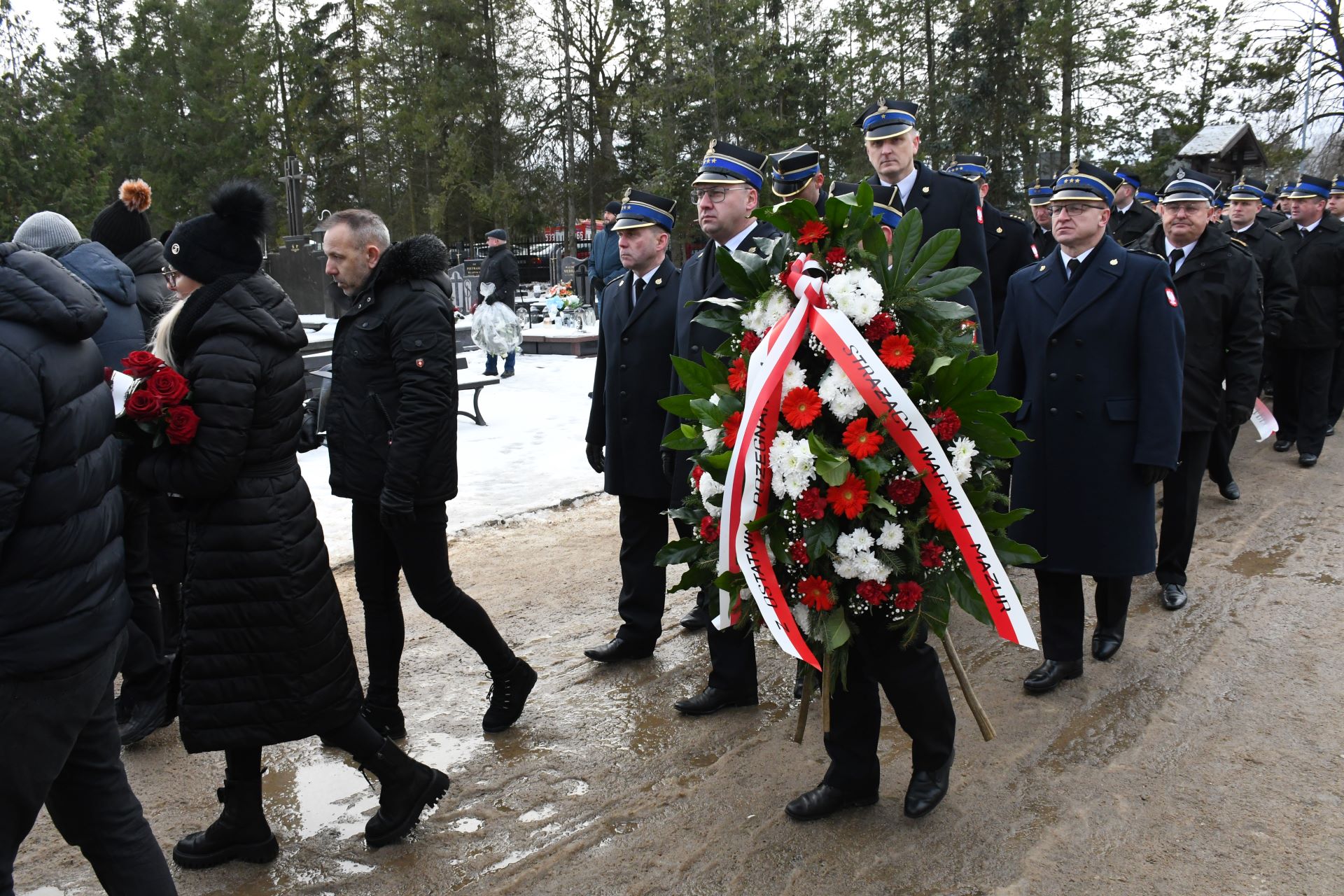 12 stycznia pożegnaliśmy świętej pamięci mł. kpt. Pawła Świata z Komendy Powiatowej Państwowej Straży Pożarnej w Ostródzie. W tym dniu w Morągu na ostatnim pożegnaniu zmarłego zgromadziła się brać strażacka z powiatu ostródzkiego i województwa warmińsko-mazurskiego. Środowisku pożarniczemu naszego województwa przewodniczył st. bryg. Tomasz Ostrowski p.o. Warmińsko-Mazurskiego Komendanta Wojewódzkiego PSP. Ostatnie pożegnanie śp. mł. kpt. Pawła Świata odbyło się zgodnie z Ceremoniałem Pożarniczym z udziałem Warmińsko-Mazurskiej Kompanii Honorowej Państwowej Straży Pożarnej i pocztów sztandarowych.