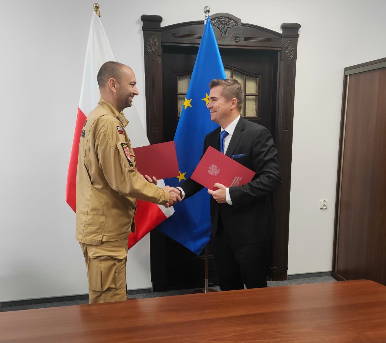 10 października w olsztyńskiej Komendzie Wojewódzkiej PSP dokumenty parafowali nadbryg. Michał Kamieniecki Warmińsko-Mazurski Komendant Wojewódzki PSP i dr Krzysztof Konopka Prezes Zarządu PTEiBS.