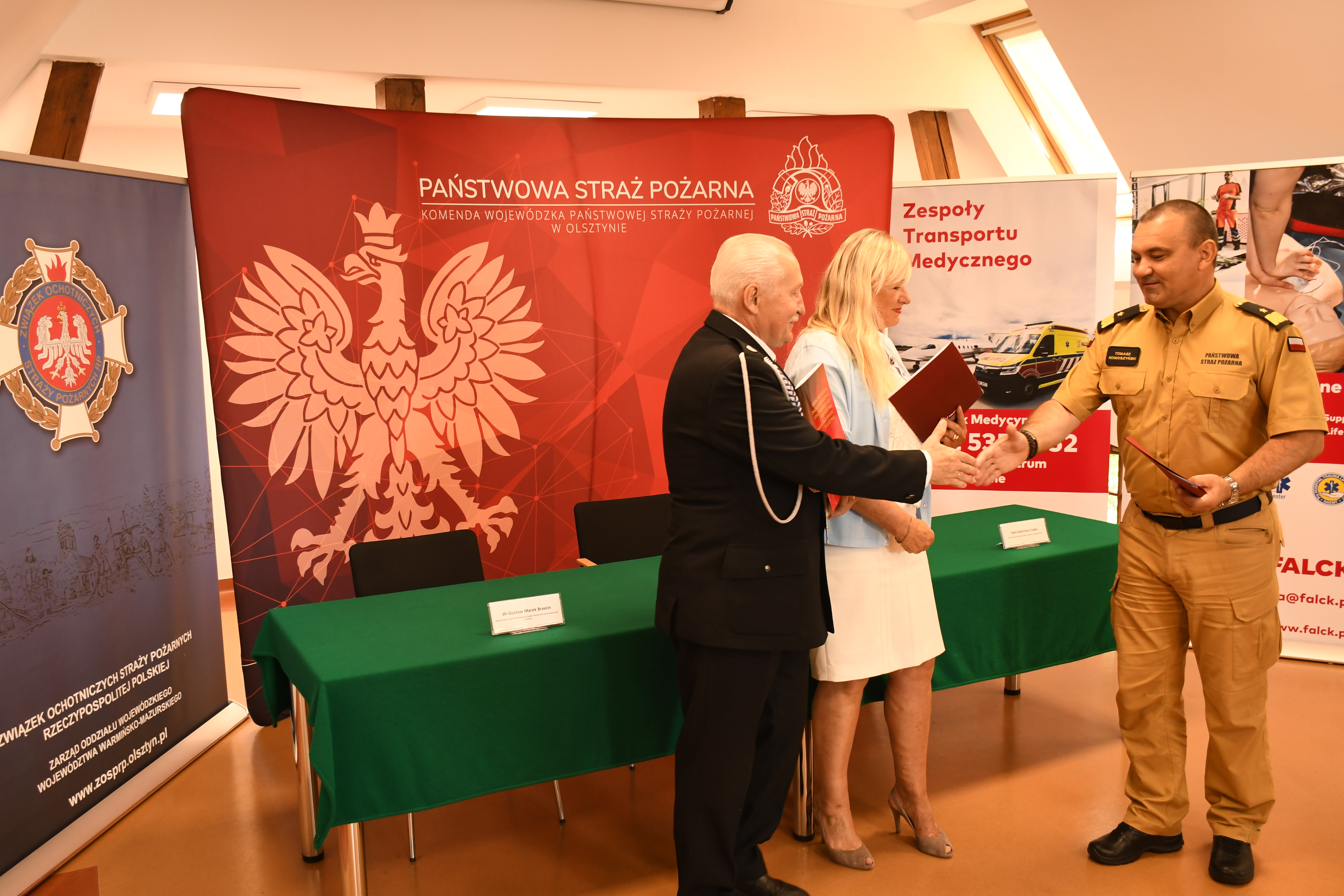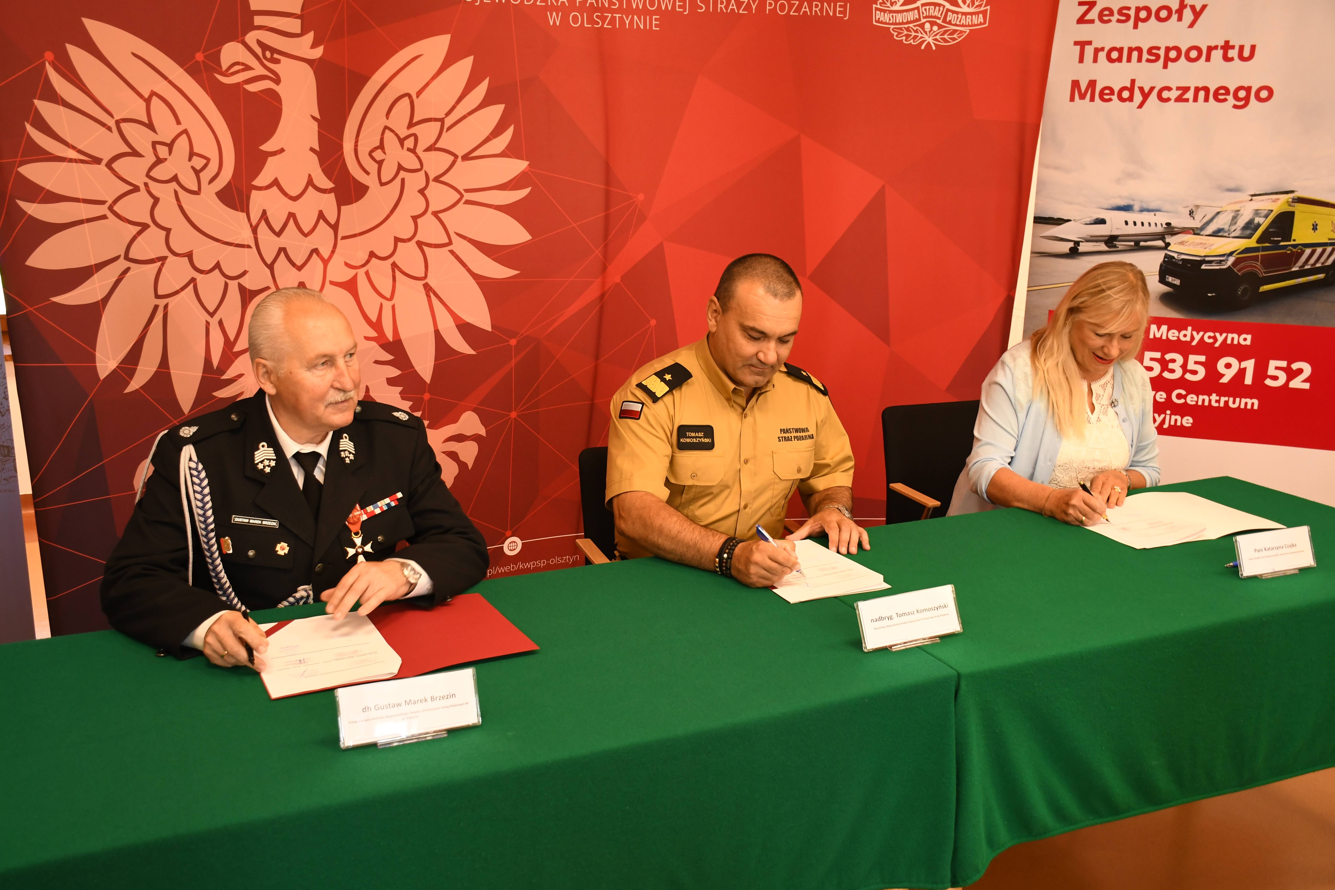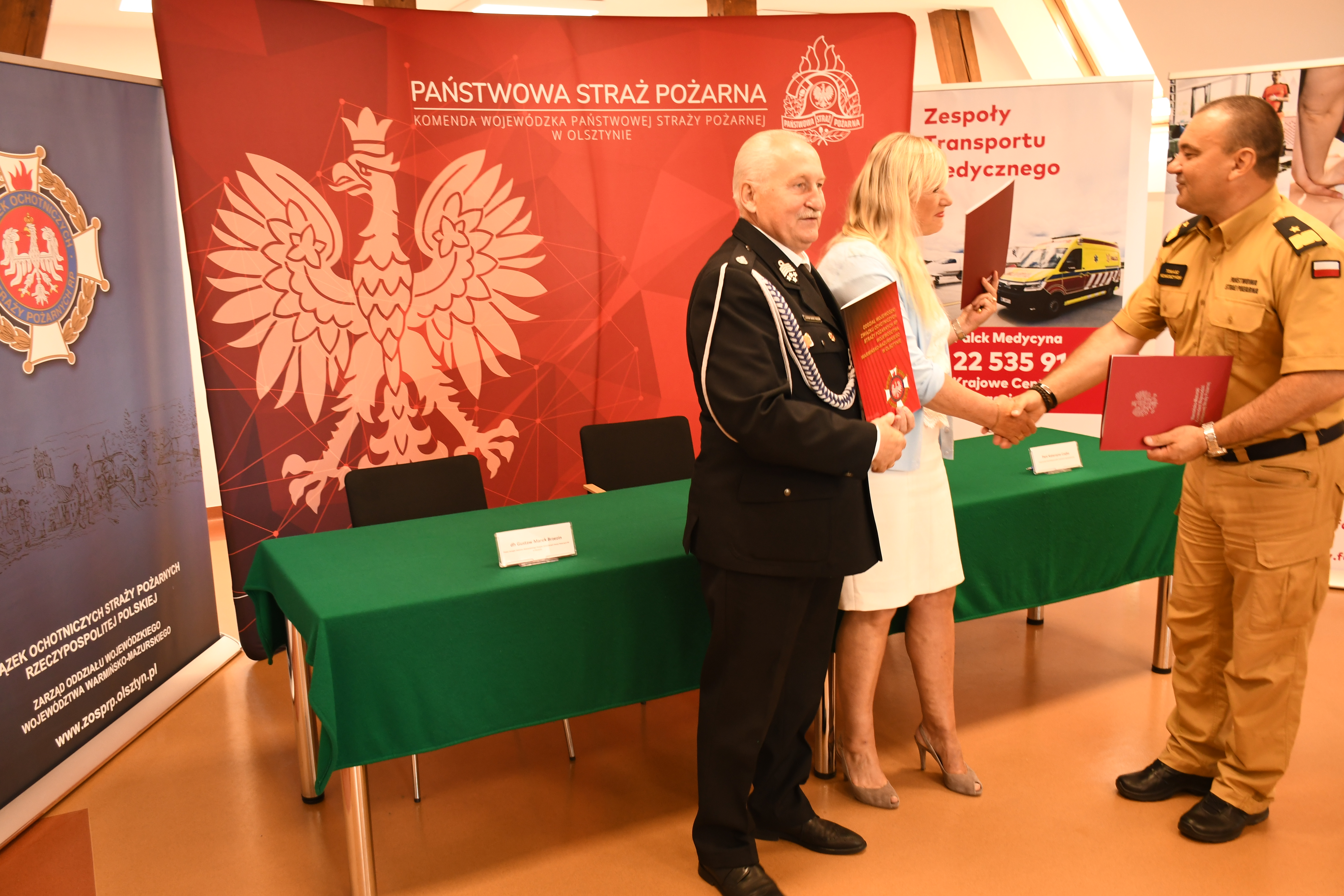 W poniedziałek 19 czerwca podpisano trójstronne porozumienie pomiędzy Komendą Wojewódzką Państwowej Straży Pożarnej w Olsztynie, Oddziałem Wojewódzkim Związku Ochotniczych Straży Pożarnych Rzeczypospolitej Polskiej i Falck Medycyna. Dokumenty w siedzibie olsztyńskiej Komendy Wojewódzkiej PSP parafowali: nadbryg. Tomasz Komoszyński Warmińsko-Mazurski Komendant Wojewódzki PSP, dh Gustaw Marek Brzezin Prezes Zarządu Oddziału Wojewódzkiego ZOSP RP i Pani Katarzyna Czajka Prezes Zarządu Falck Medycyna.