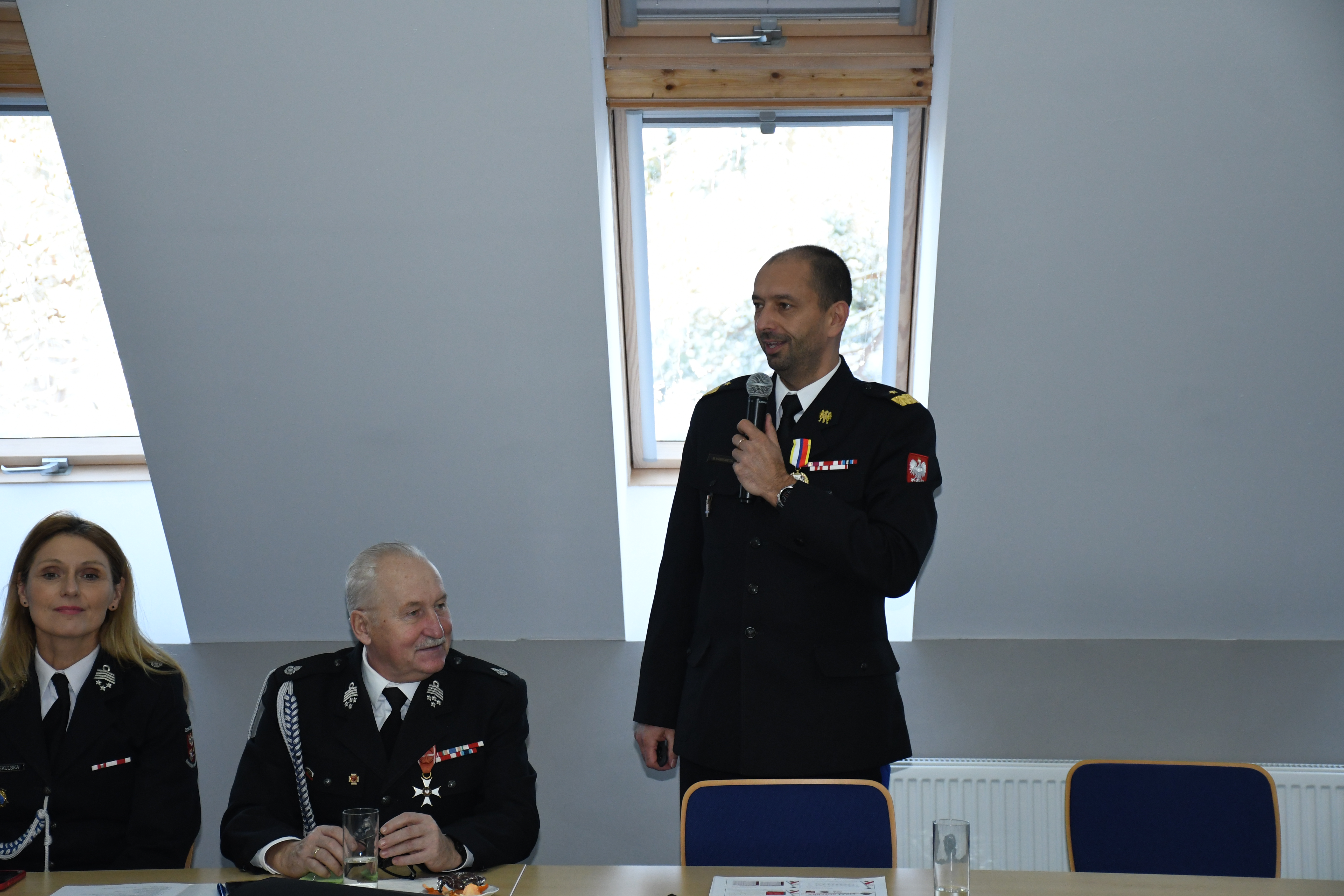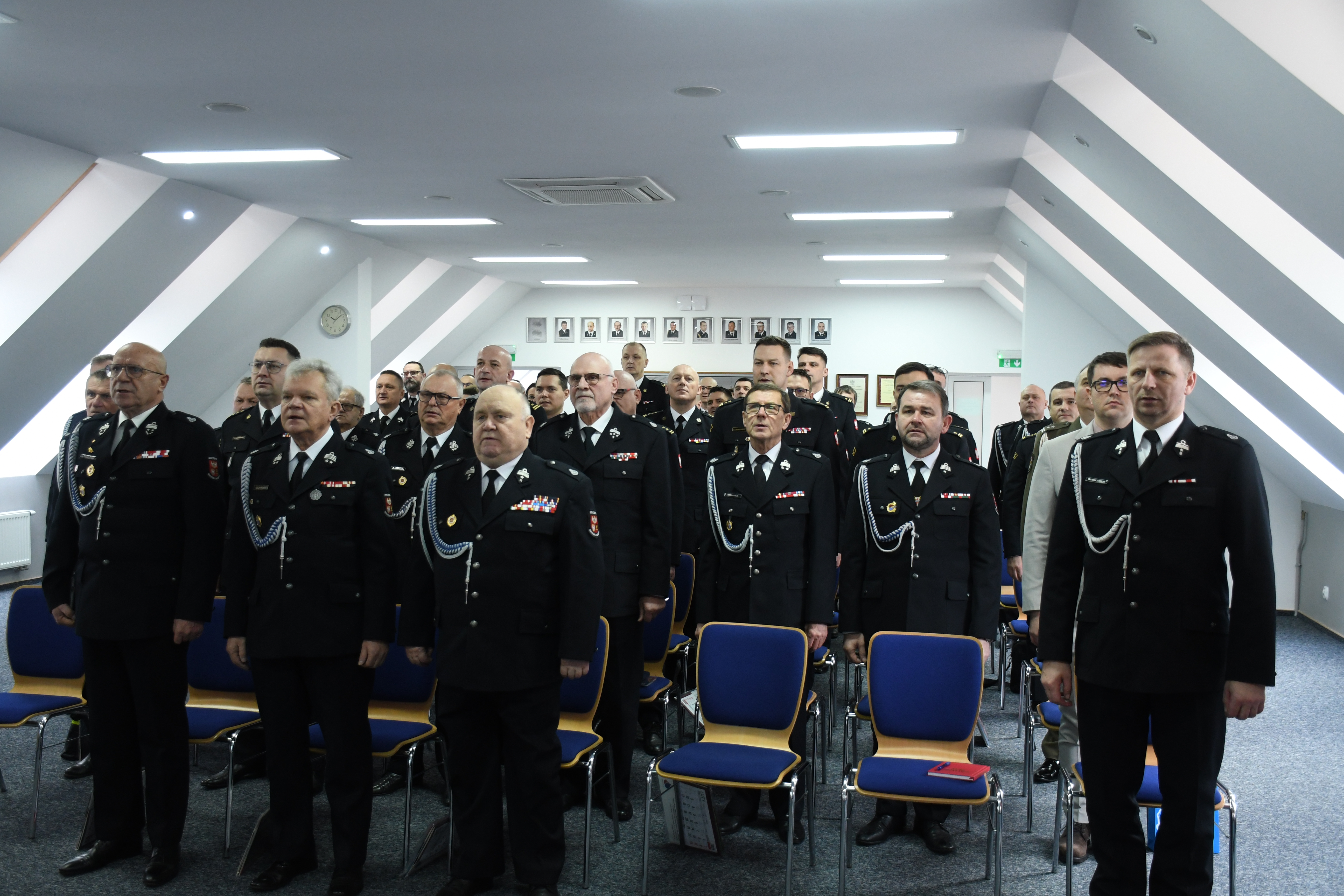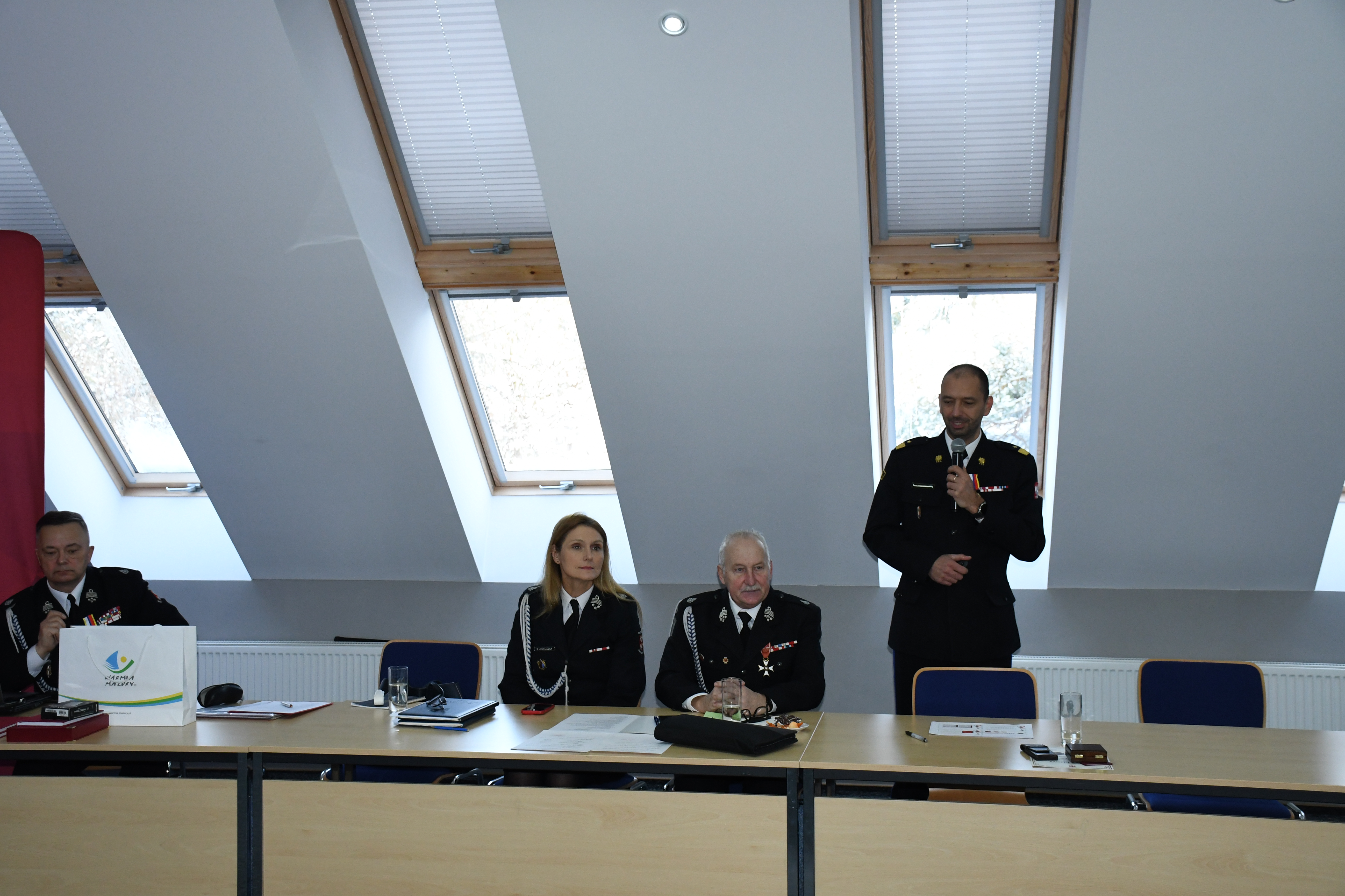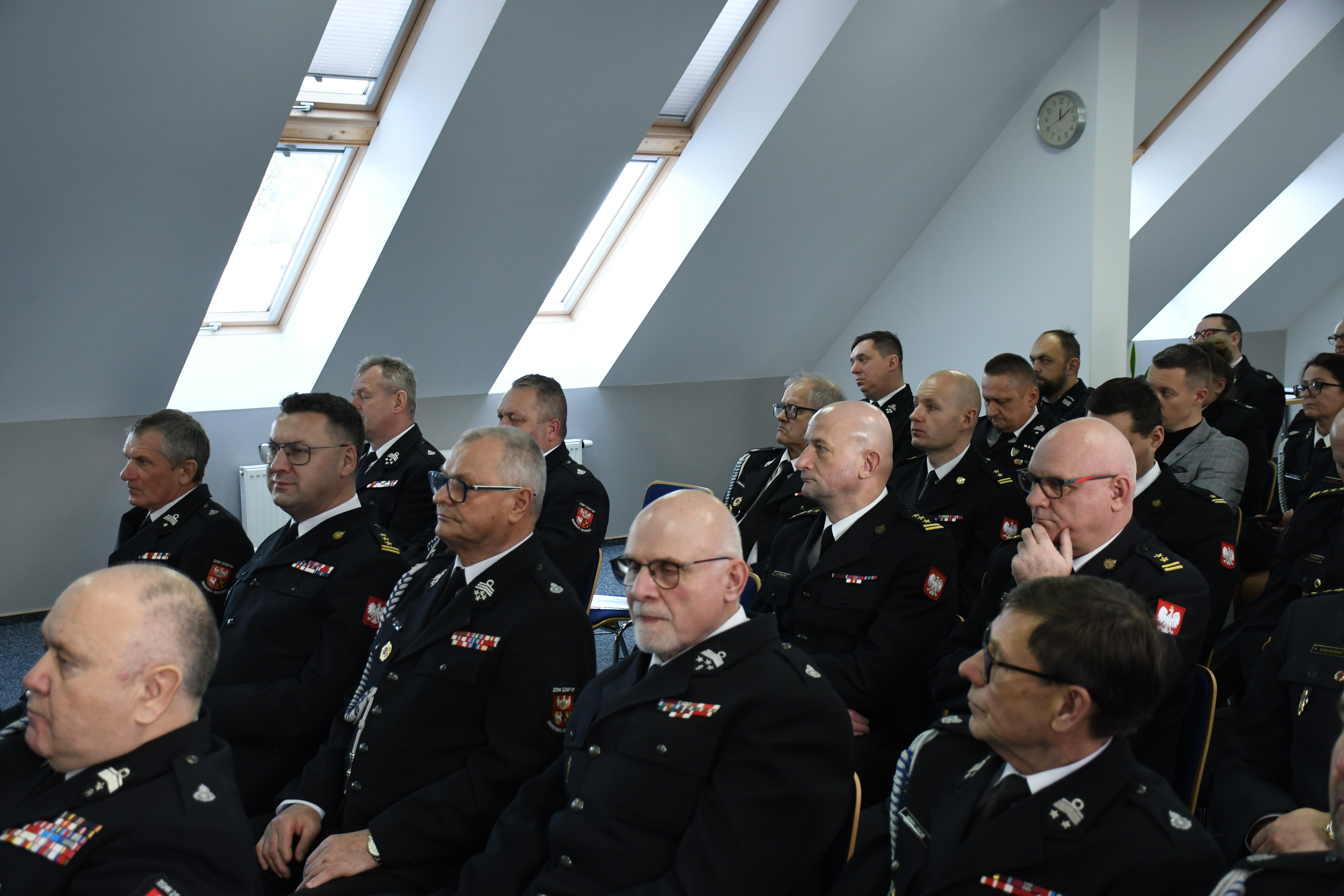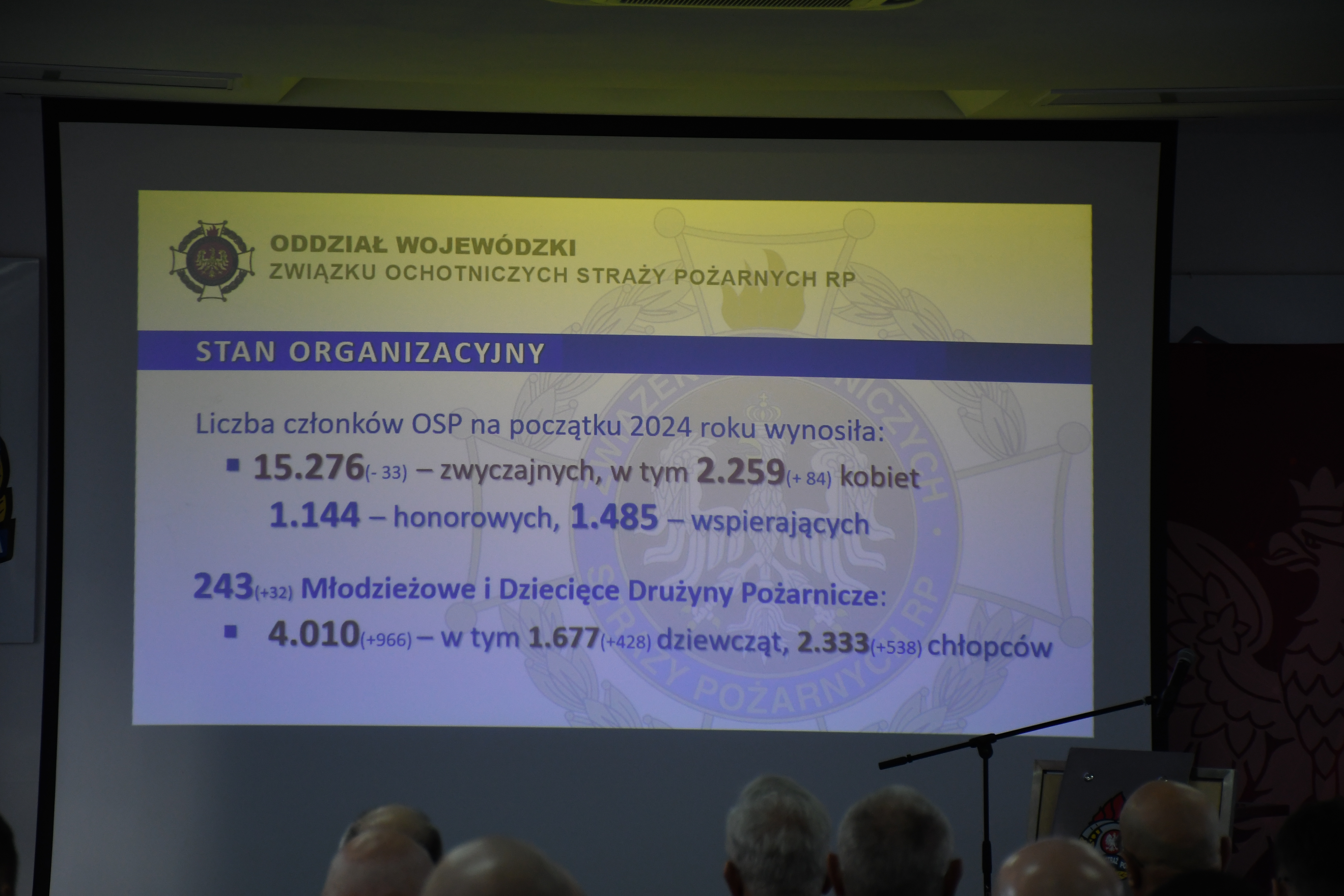 Dh Maciej Jasiński przedstawił sprawozdanie z działalności Związku OSP w roku 2024, a nadbryg. Michał Kamieniecki omówił działalność PSP w województwie w obszarze współpracy z Ochotniczymi Strażami Pożarnymi.