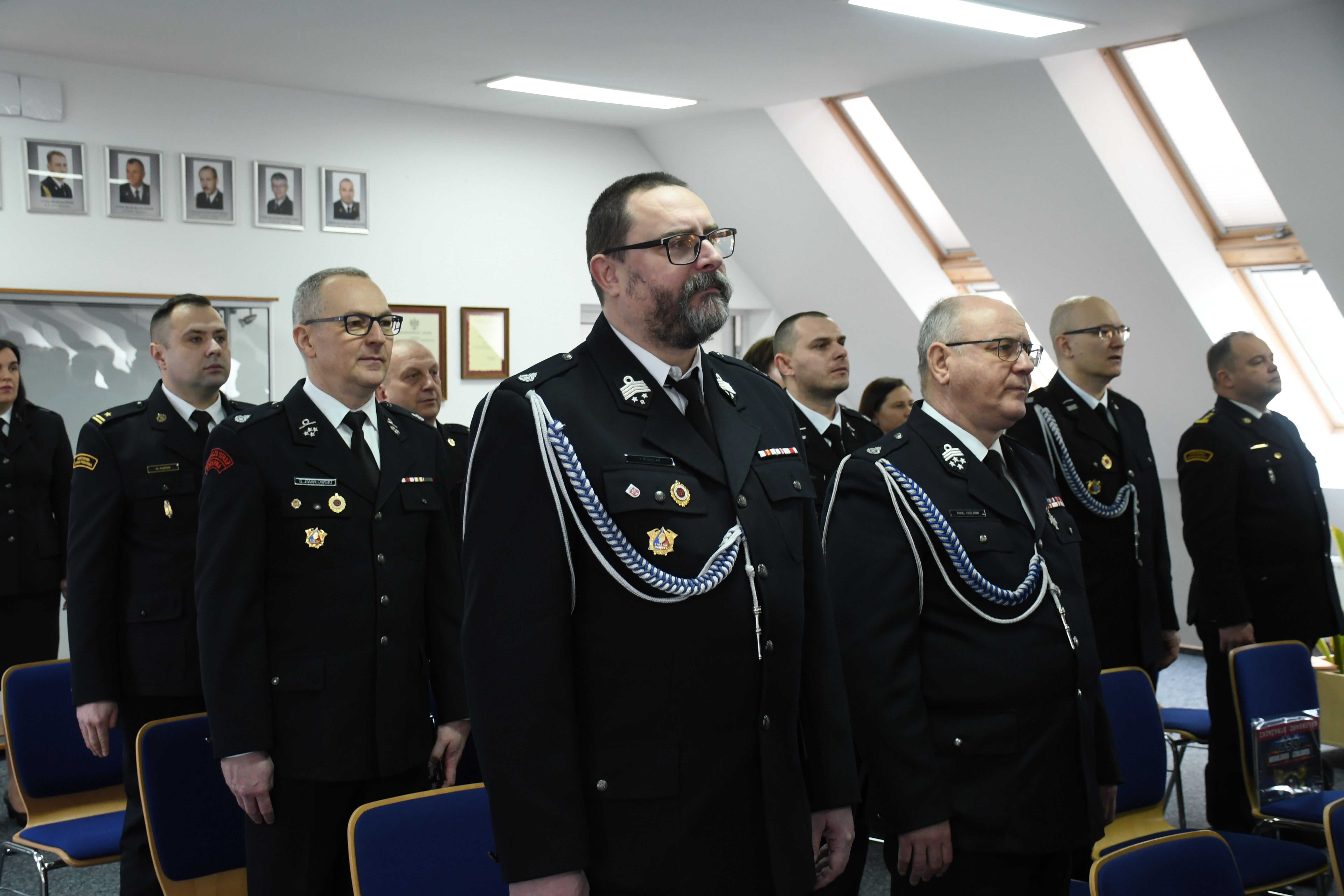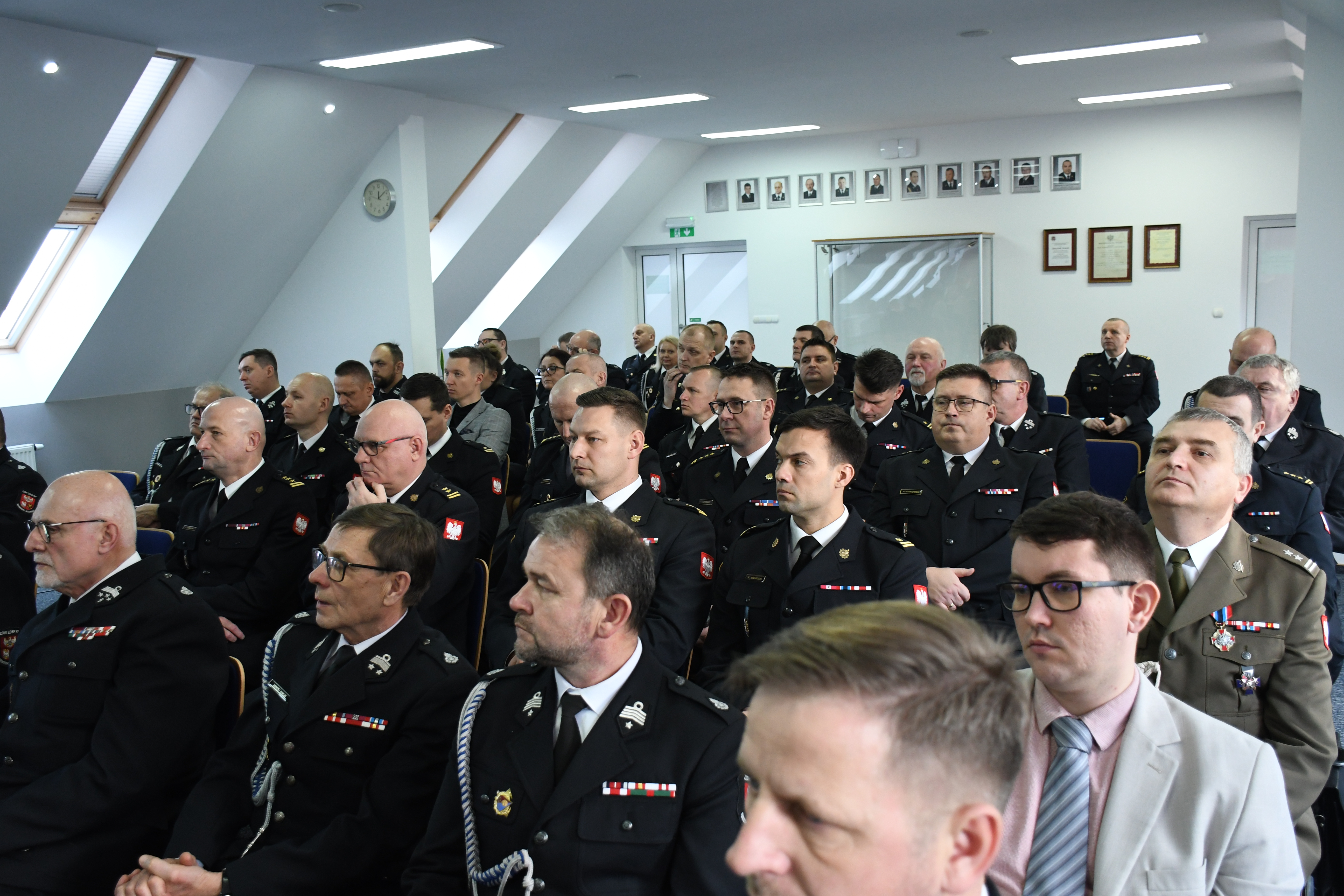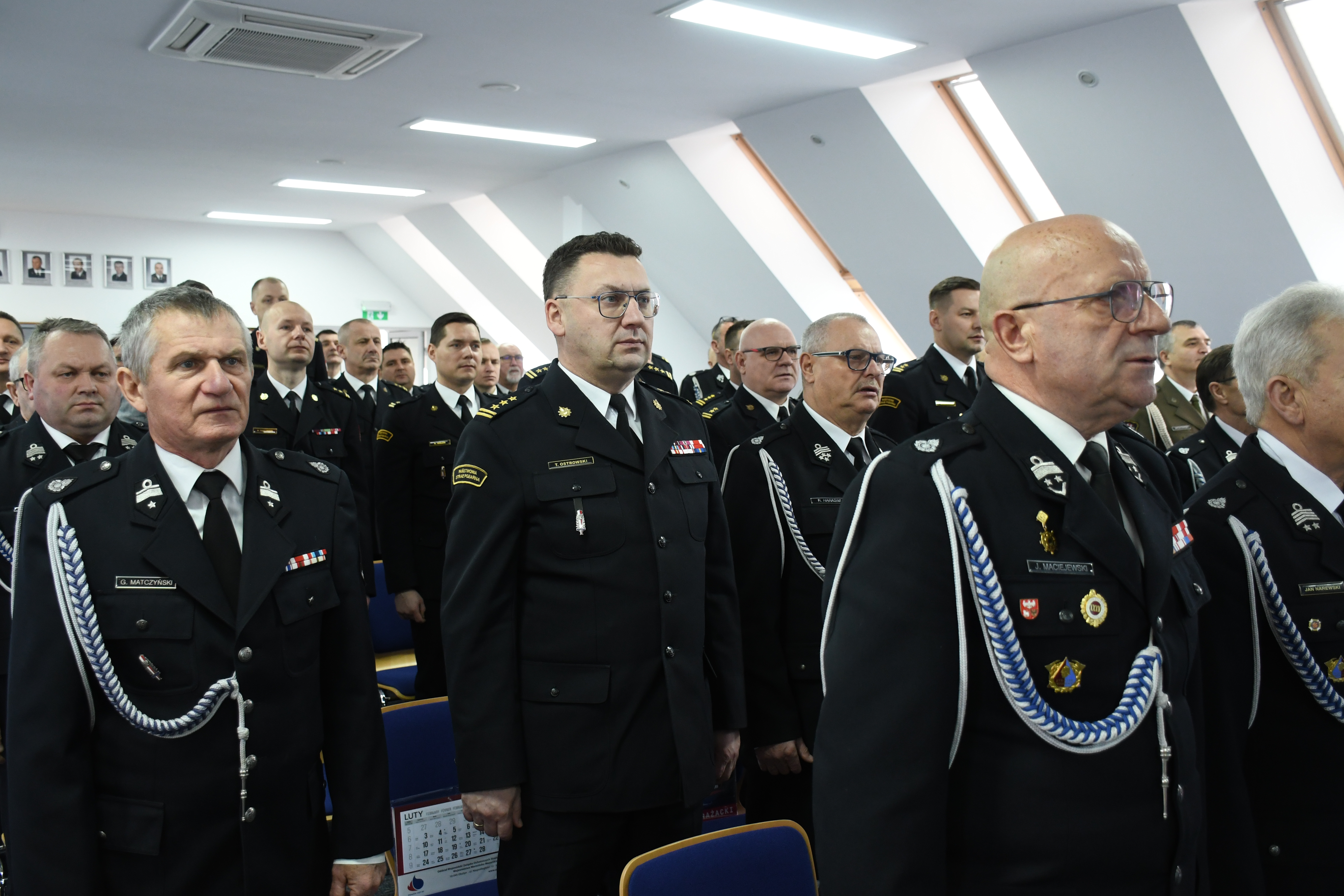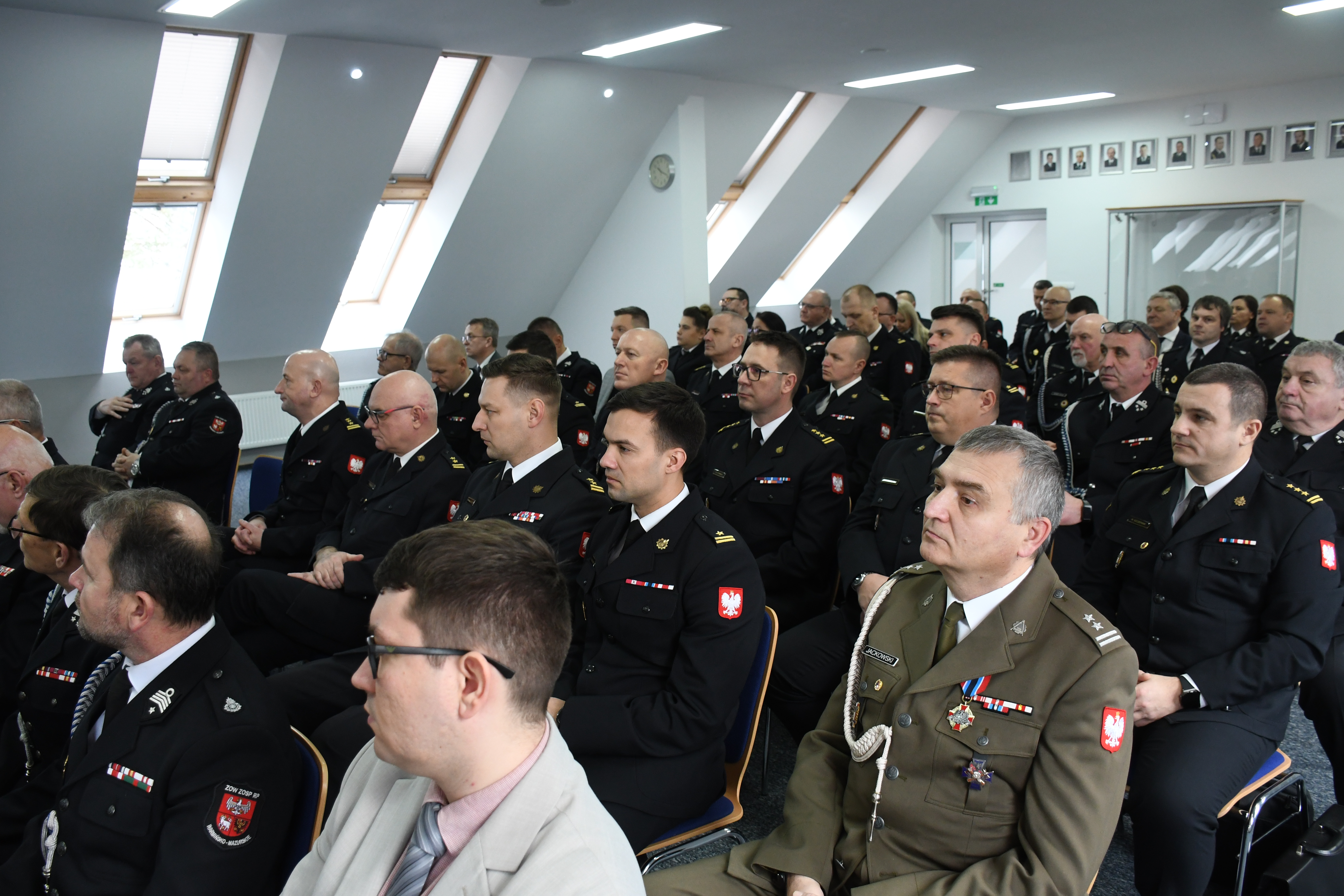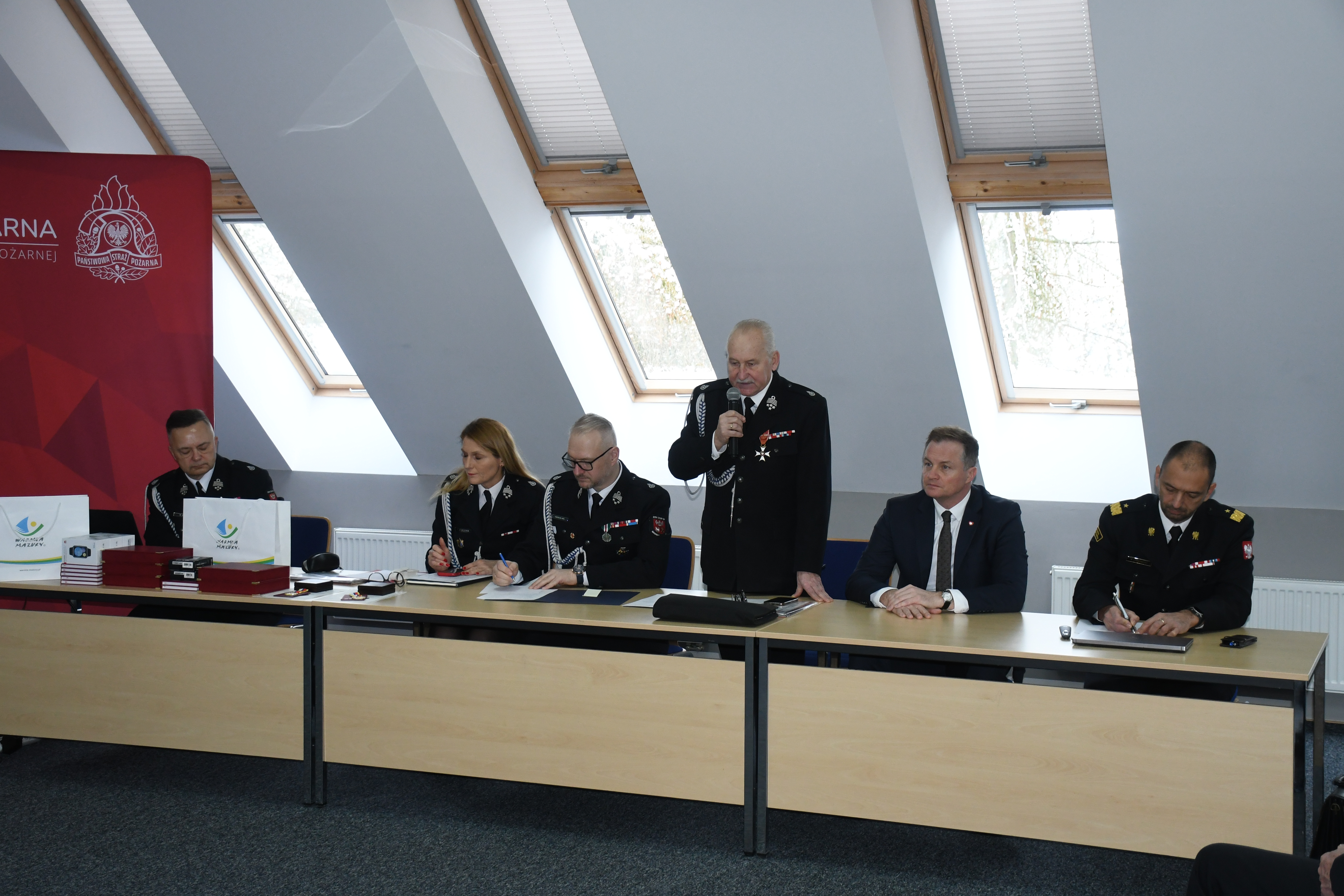 Dh Maciej Jasiński przedstawił sprawozdanie z działalności Związku OSP w roku 2024, a nadbryg. Michał Kamieniecki omówił działalność PSP w województwie w obszarze współpracy z Ochotniczymi Strażami Pożarnymi.