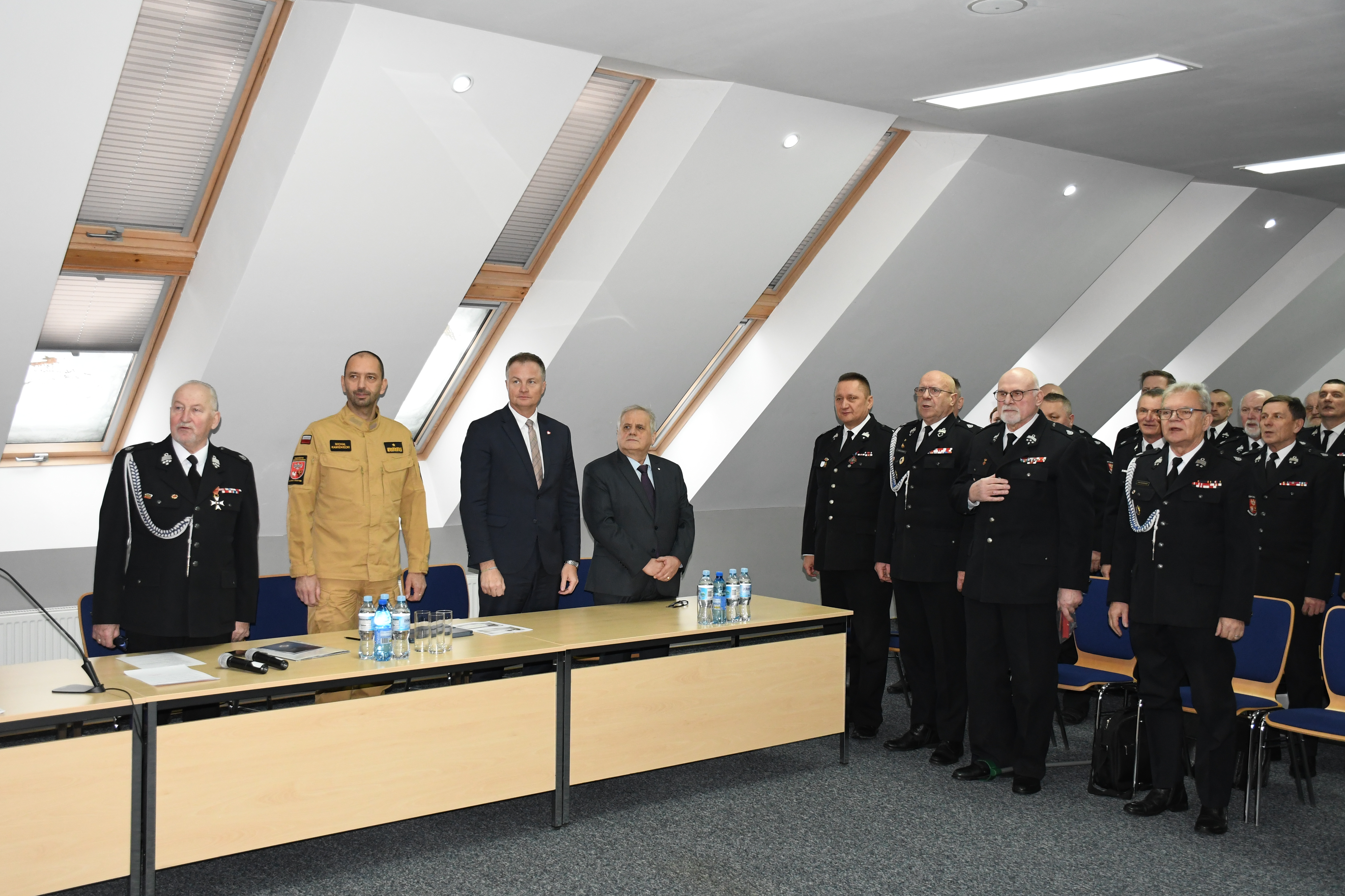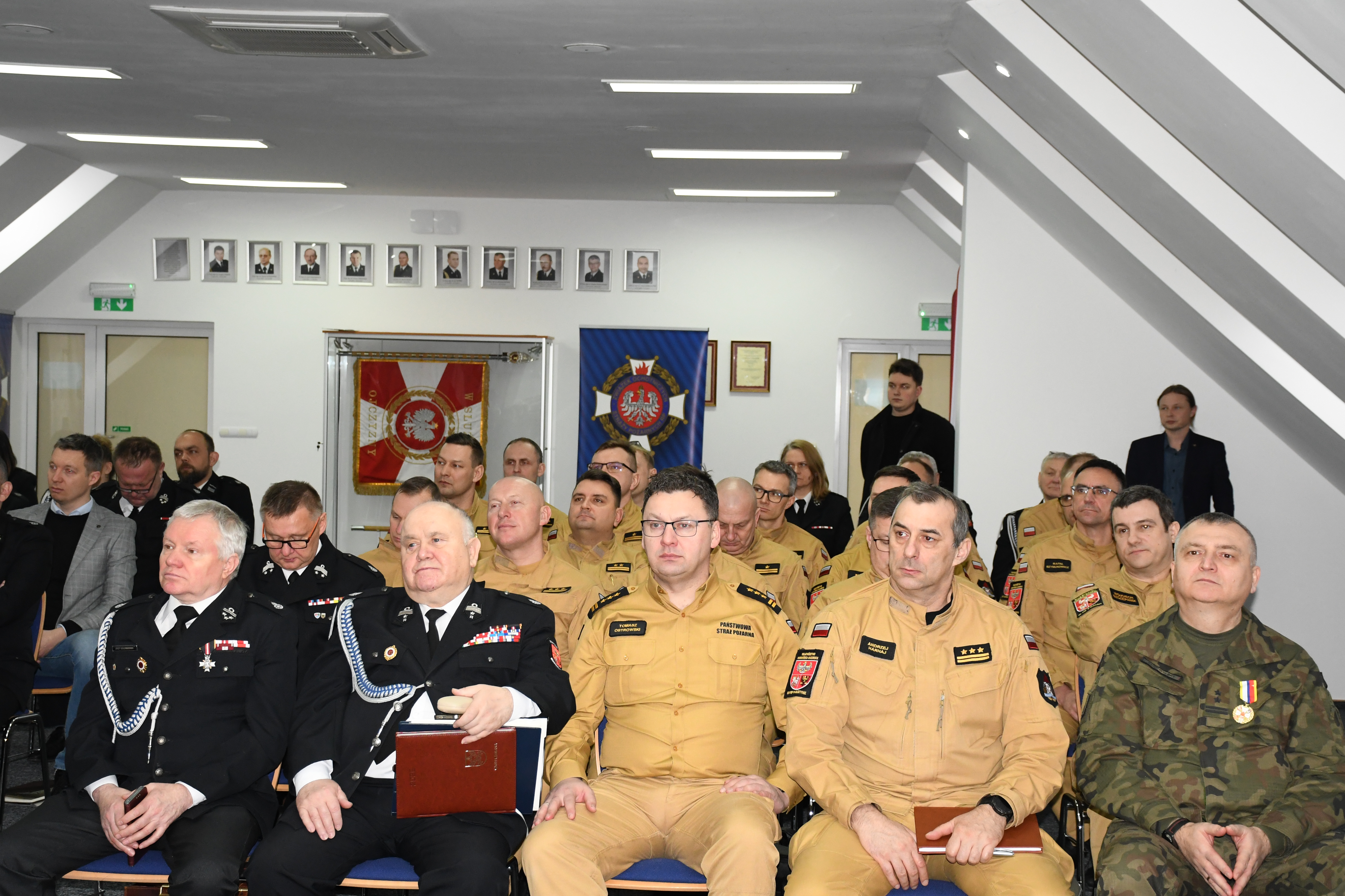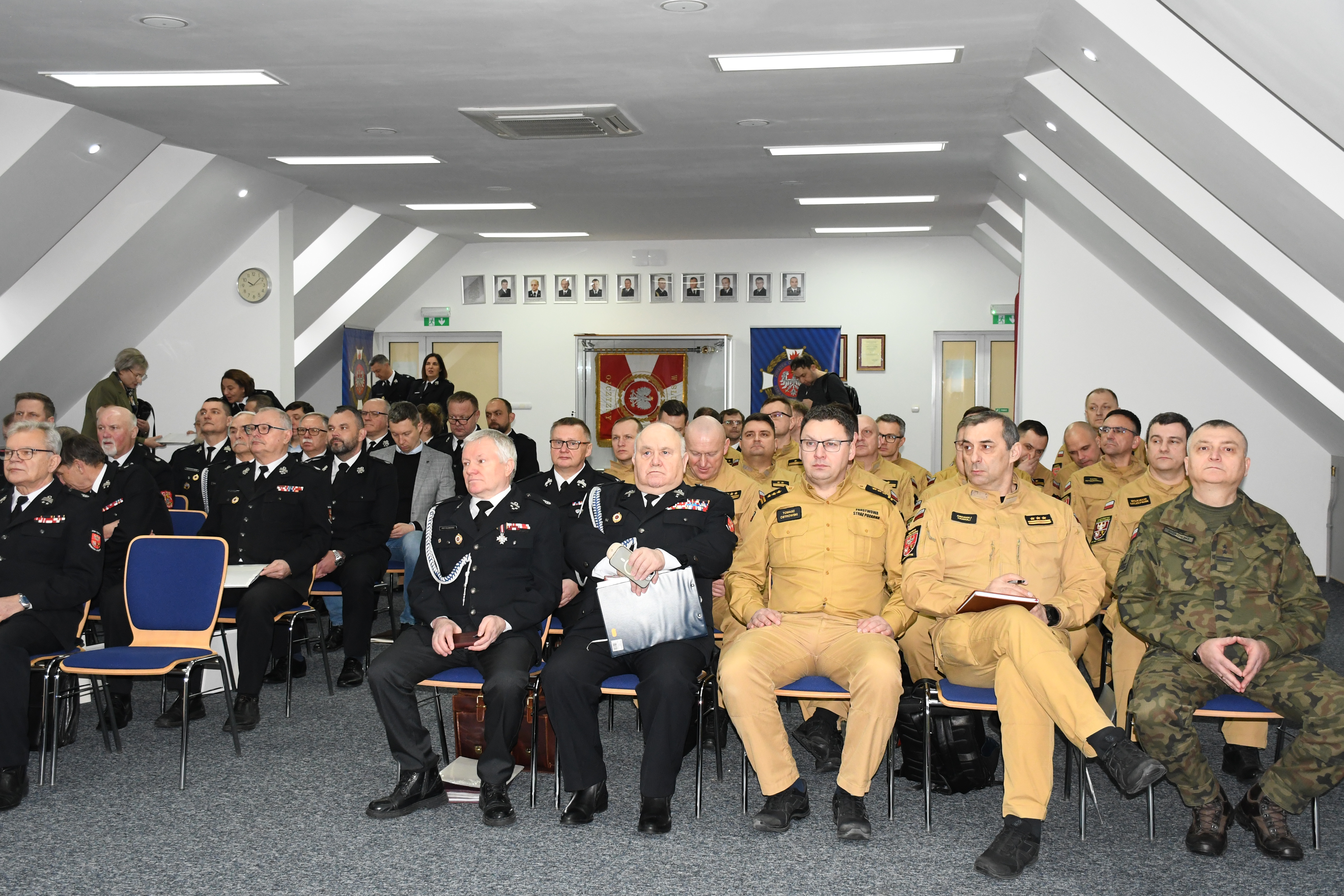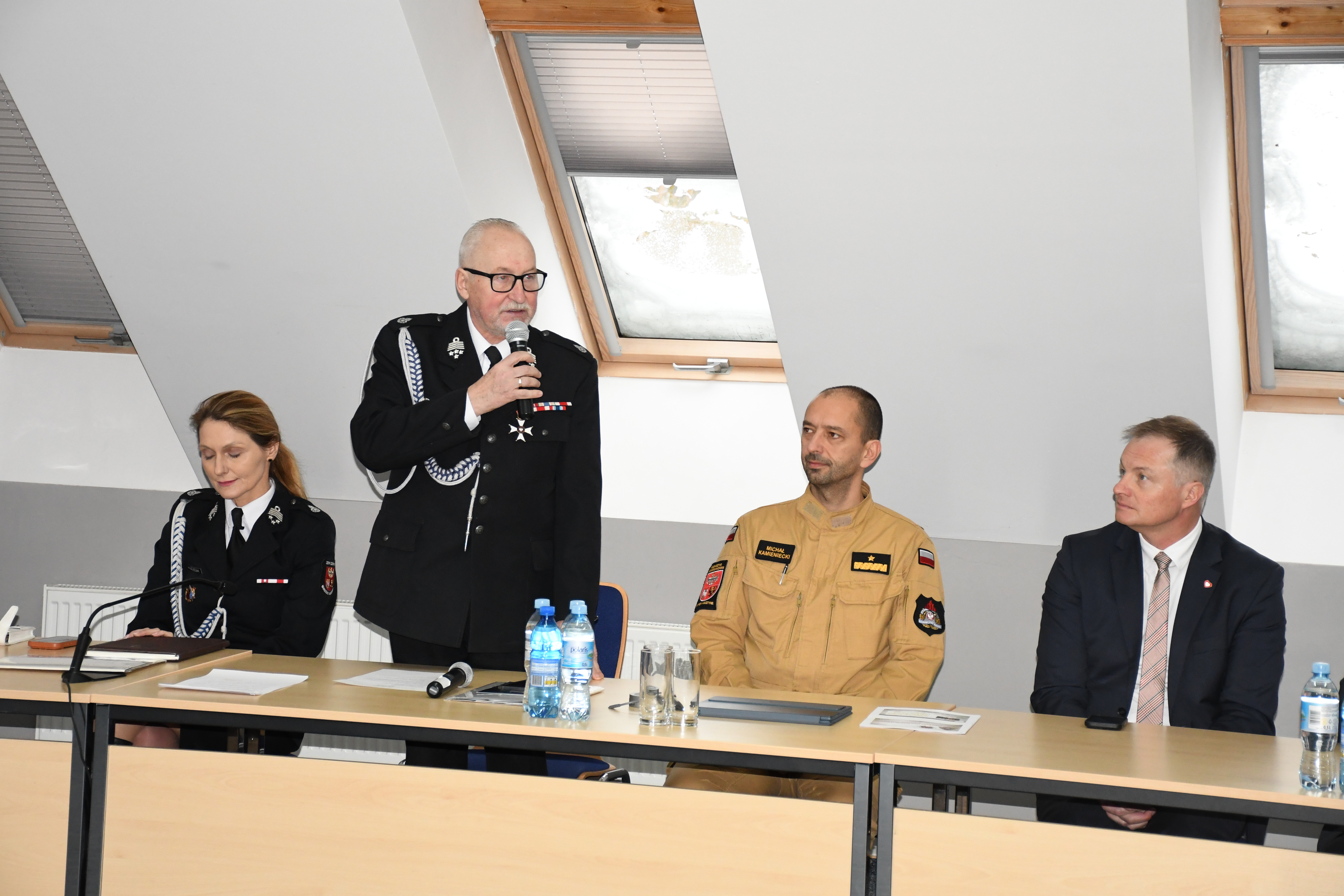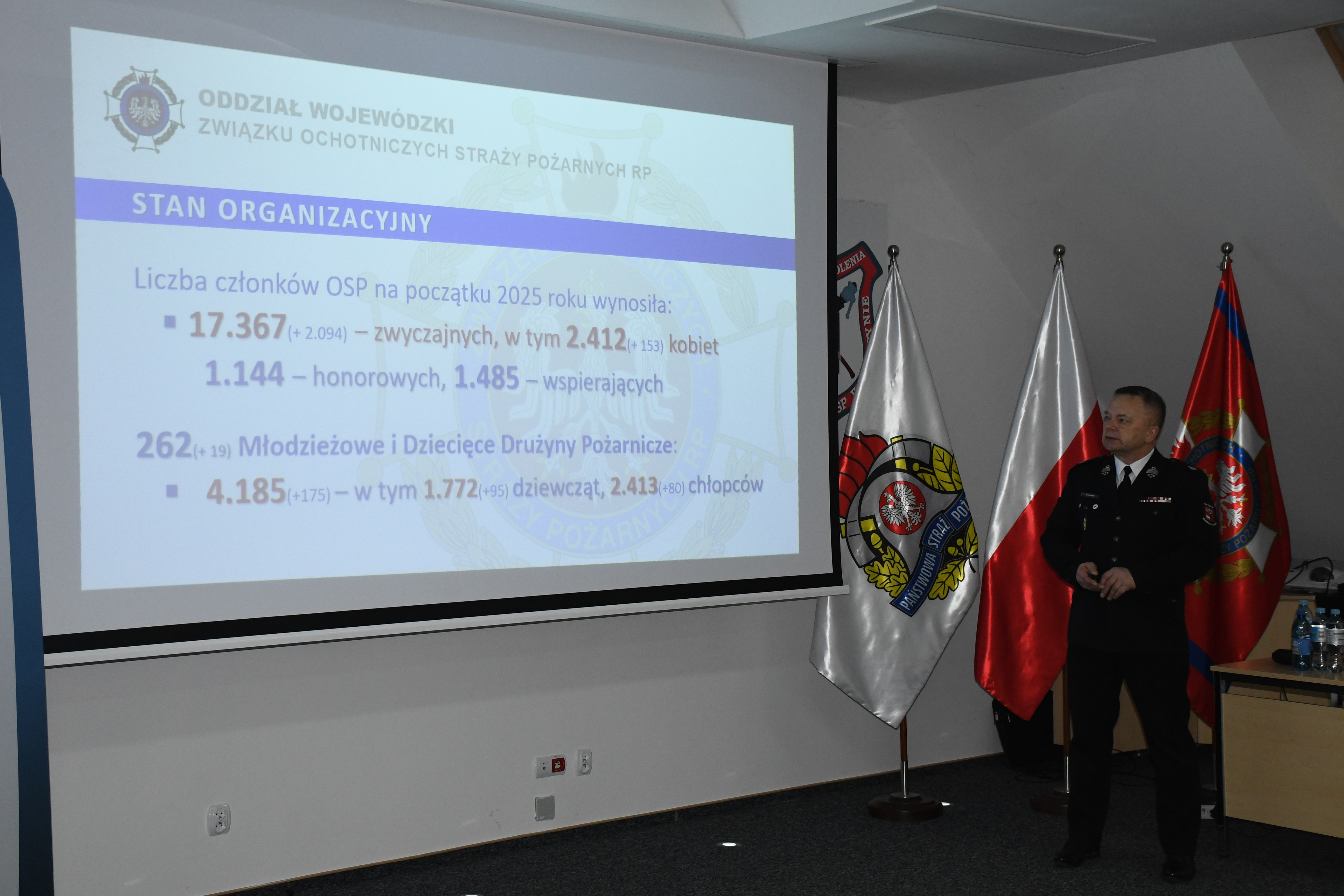 Następnie dh Maciej Jasiński przedstawił sprawozdanie z działalności Związku OSP na Warmii i Mazurach w roku 2025, a nadbryg. Michał Kamienicki omówił działalność PSP w województwie w obszarze współpracy z Ochotniczymi Strażami Pożarnymi w minionym roku.