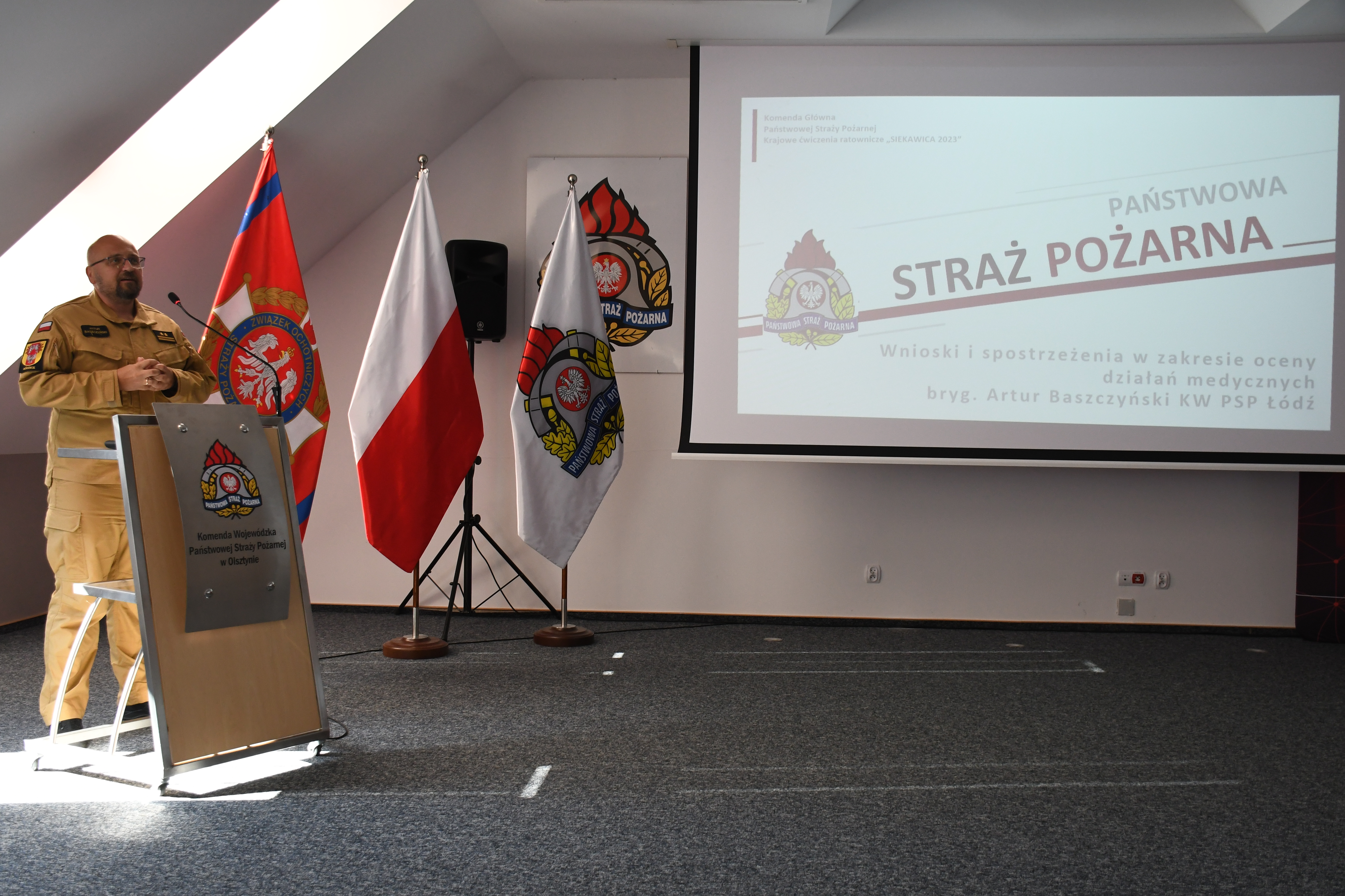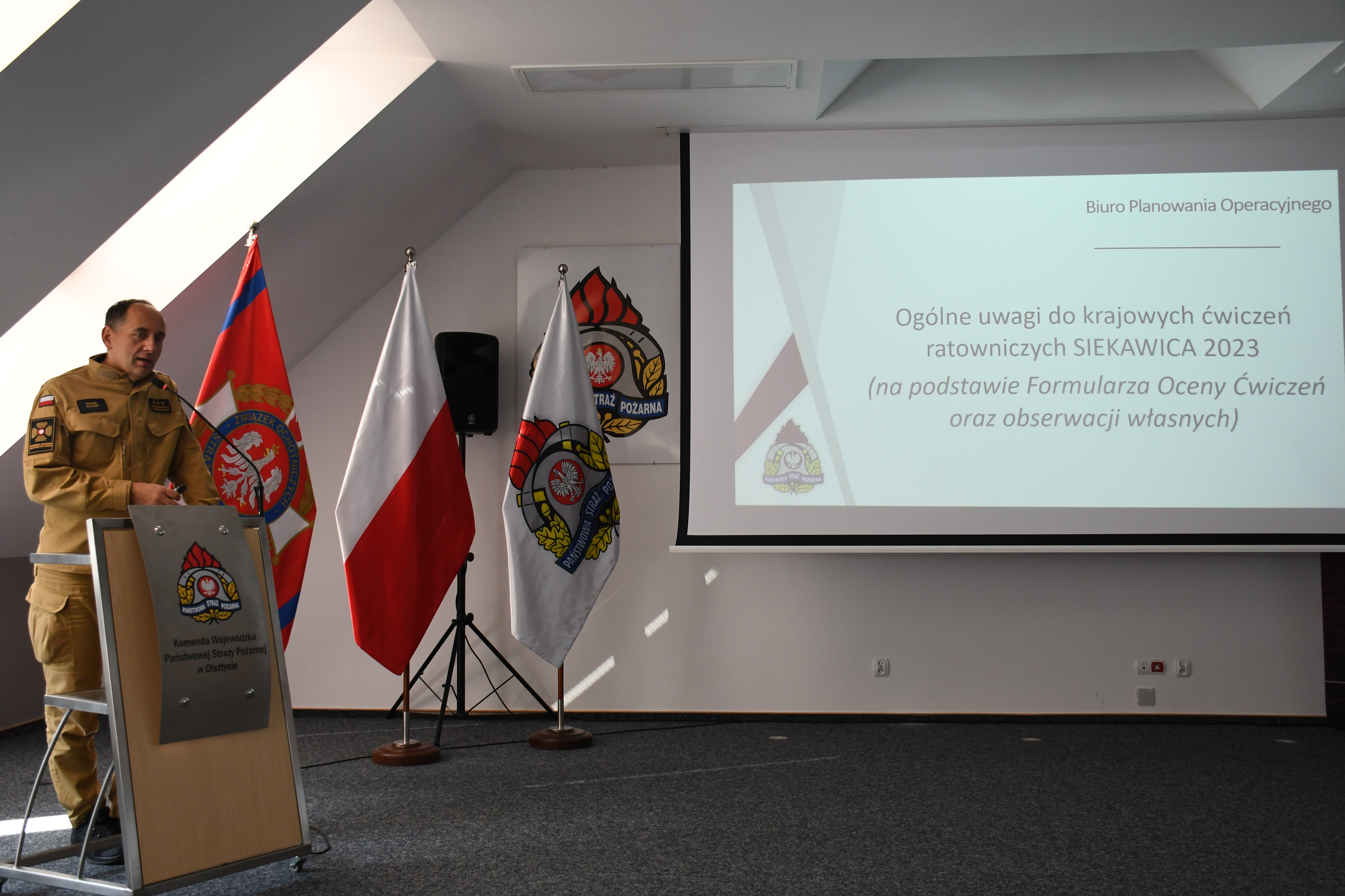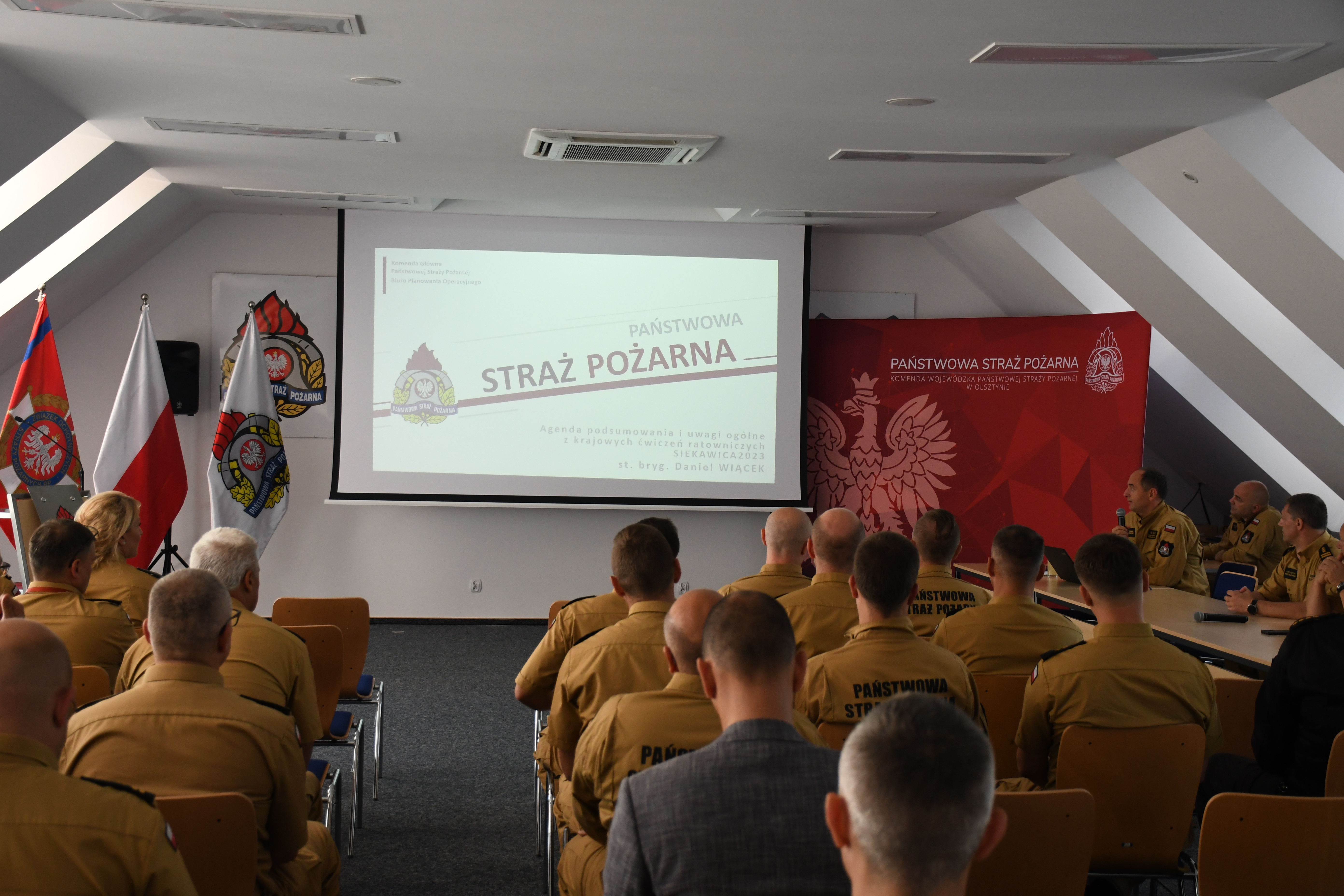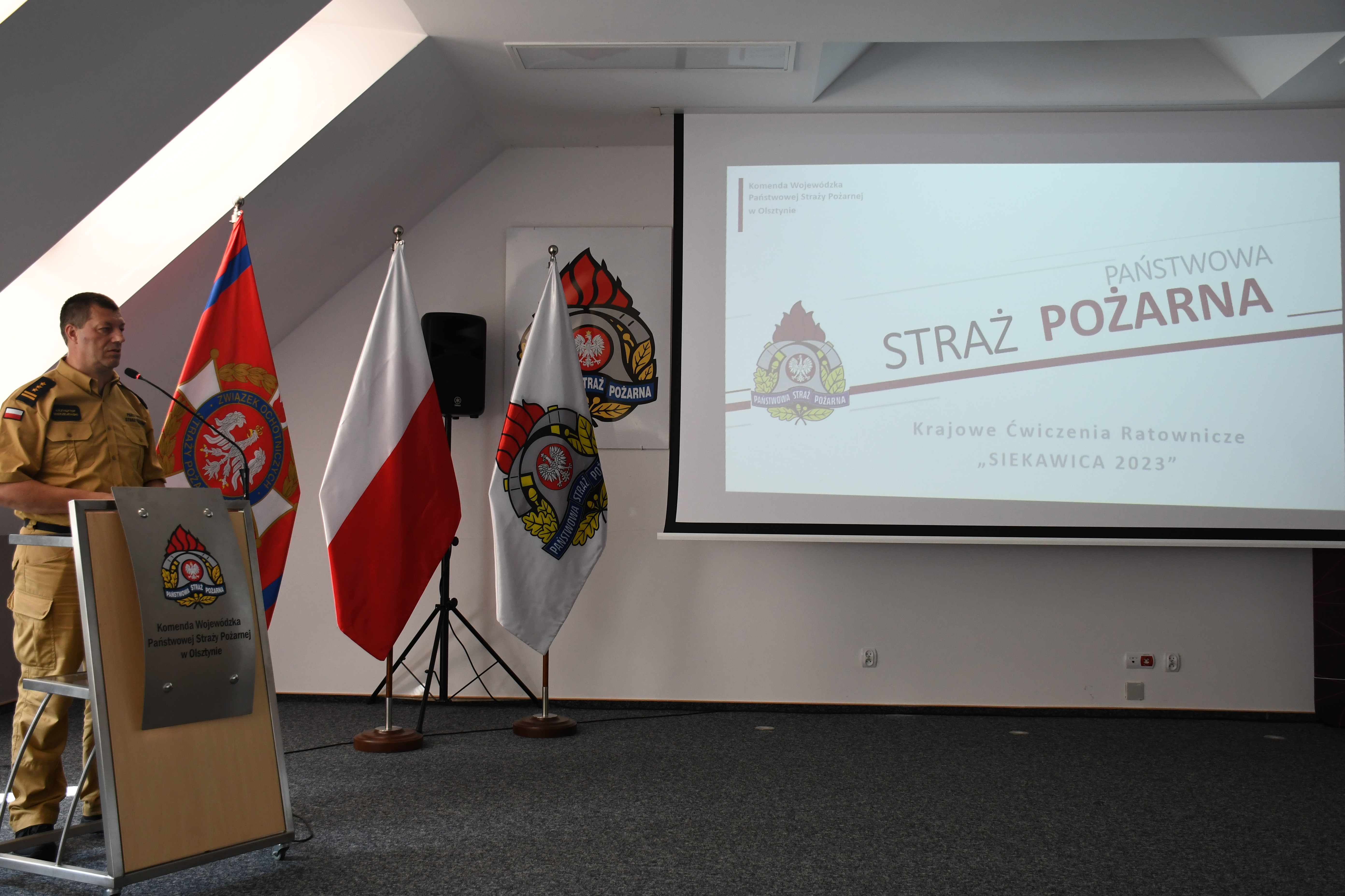 W ośrodku szkolenia Komendy Wojewódzkiej Państwowej Straży Pożarnej w Olsztynie 12 września odbyła się odprawa podsumowująca krajowe ćwiczenia Centralnego Odwodu Operacyjnego pod kryptonimem „SIEKAWICA 2023”. Ćwiczenia odbyły się w dniach 18-20 lipca br. w woj. warmińsko-mazurskim, na terenie pow. szczycieńskiego. Udział w nich wzięły wydzielone siły i środki COO z Warmii i Mazur, z woj. pomorskiego, zachodniopomorskiego i kujawsko-pomorskiego, a także LSRG Szymany, OSP z pow. szczycieńskiego, Policja i inne podmioty ratownicze oraz Lasy Państwowe.