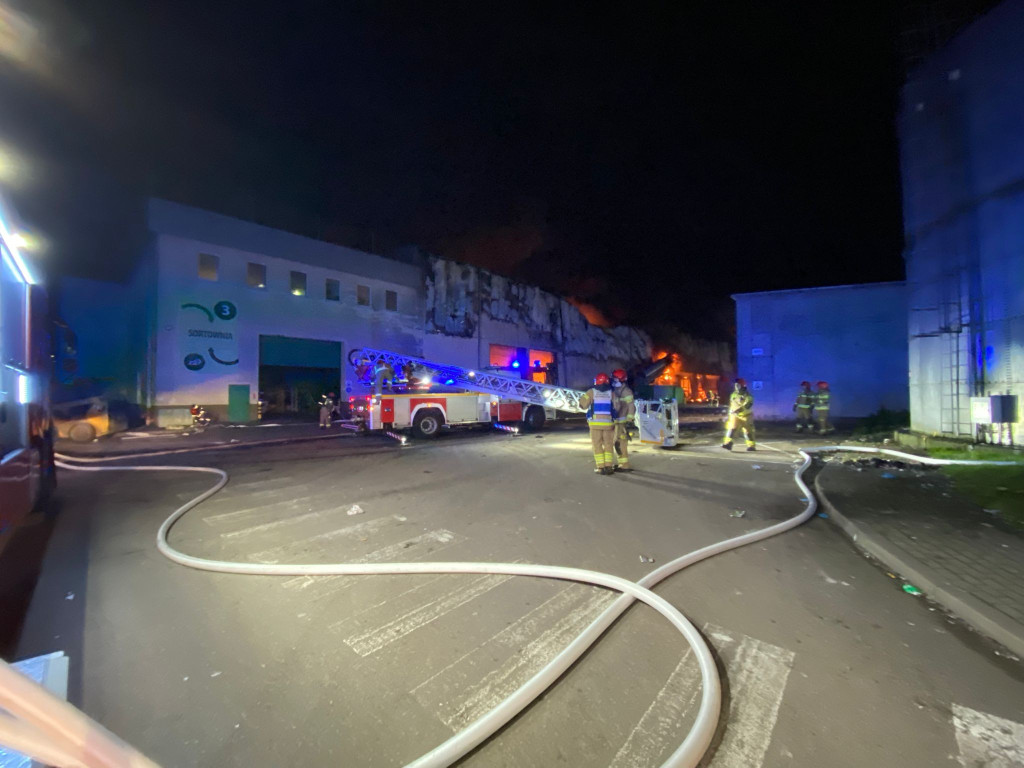 Poważny pożar hali sortowni odpadów w Elblągu