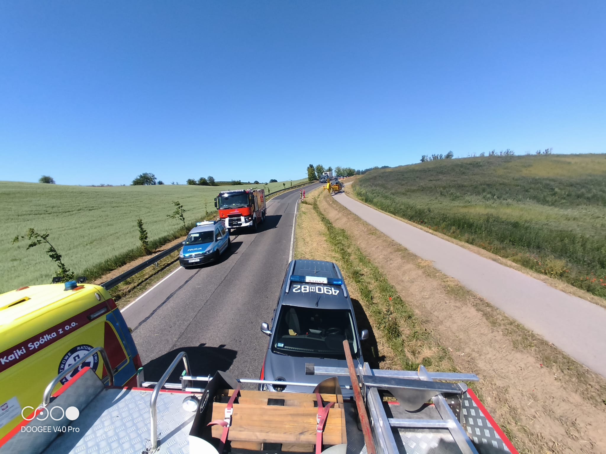 Na miejscu akcji pracowali strażacy z Komendy Powiatowej PSP w Mrągowie oraz okoliczne Ochotnicze Straże Pożarne, a także policjanci oraz Państwowe Ratownictwo Medyczne. Do akcji ratowniczej przyleciały również dwa śmigłowce Lotniczego Pogotowia Ratunkowego.