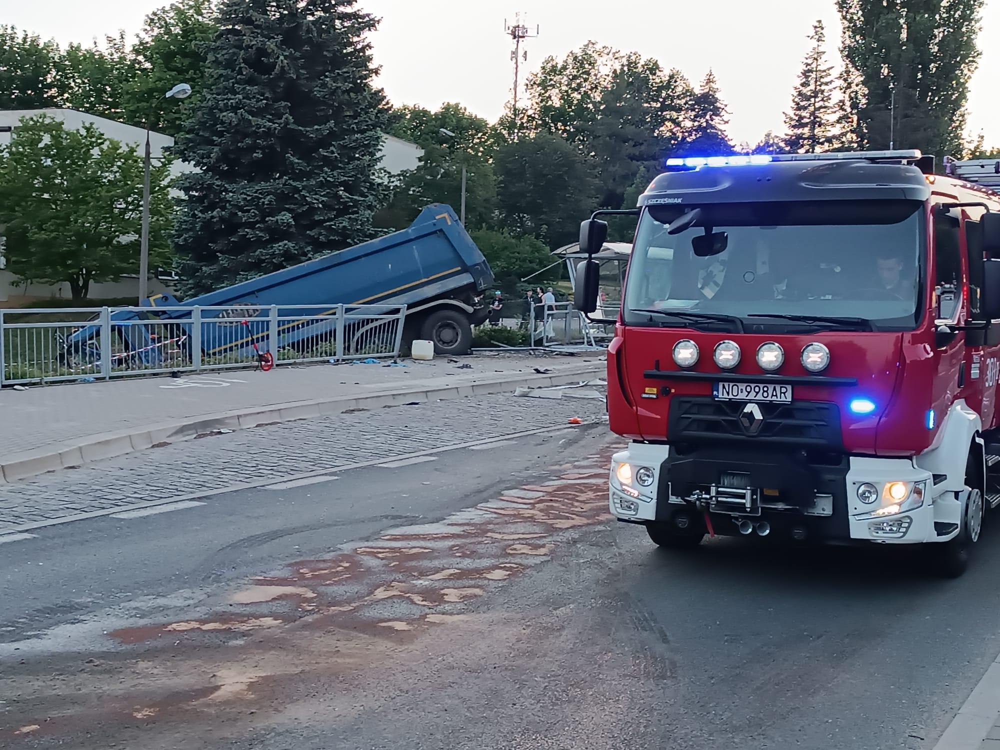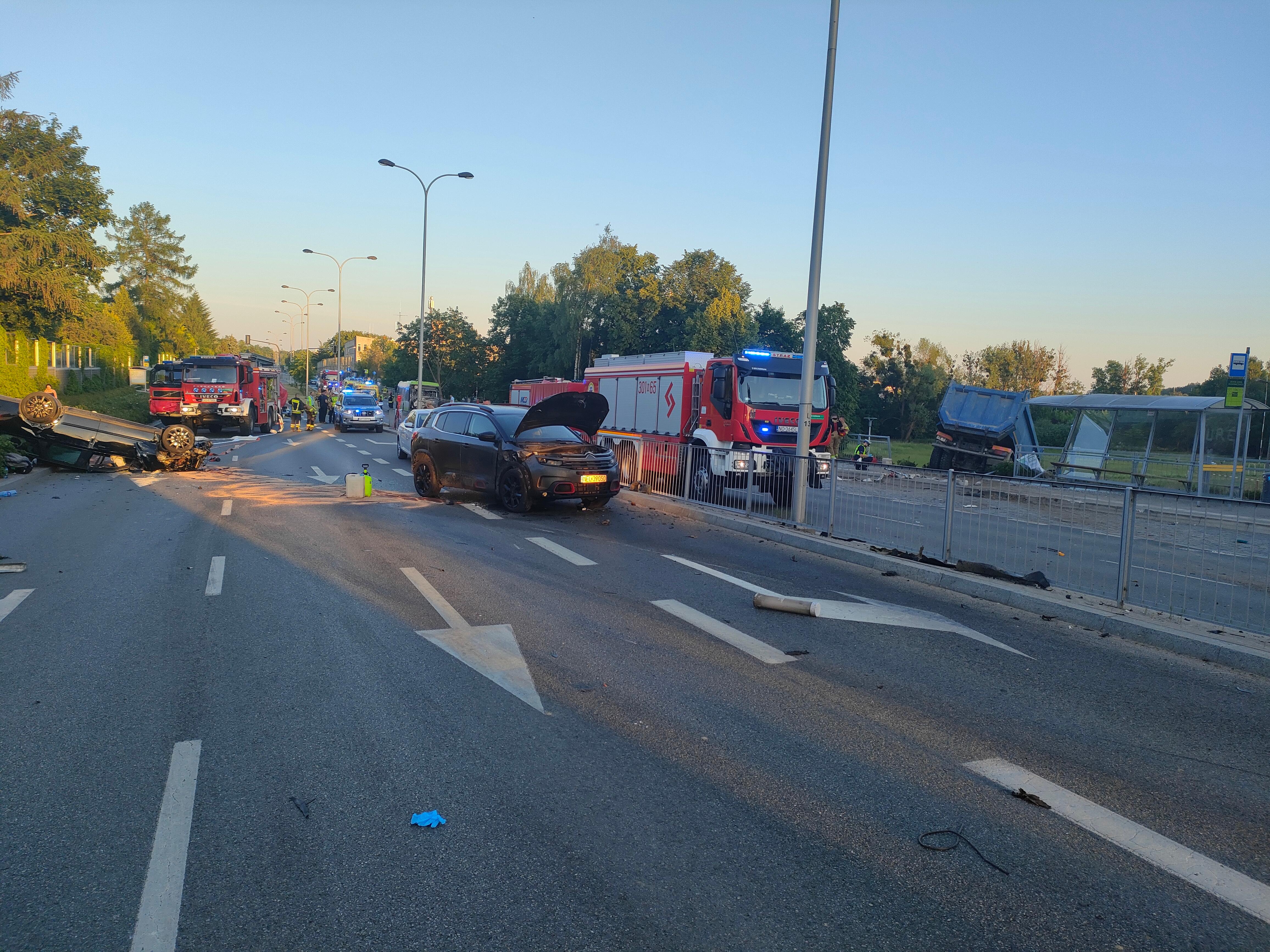 Do poważnego wypadku drogowego doszło w poniedziałek 27 maja kilka minut przed godziną 19:00 w Olsztynie. Poruszający się ulicą Bałtycką w kierunku centrum miasta samochód ciężarowy uderzył w cztery samochody osobowe, które stały na skrzyżowaniu z sygnalizacją świetlną, następnie uderzył w tył autobusu miejskiego i uszkadzając wiatę przystankową, spadł ze skarpy na drogę rowerową. W wyniku zdarzenia ucierpiało 26 osób. Na miejsce wypadku zadysponowano samochody pożarnicze z olsztyńskiej Komendy Miejskiej Państwowej Straży Pożarnej oraz okoliczne jednostki Ochotniczych Straży Pożarnych. Strażacy gdy dojechali na miejsce zdarzenia, natychmiast przystąpili do udzielania pomocy poszkodowanym. Wykonali segregację poszkodowanych i udzielali kwalifikowanej pierwszej pomocy rannym. Równolegle zabezpieczyli miejsce zdarzenia pod względem pożarowym. Po chwili dojechały zespoły Państwowego Ratownictwa Medycznego. Autobusem podróżowało 16 osób, pozostałe osoby, które brały udział w zdarzeniu, podróżowały samochodami osobowymi. Akcja ratownicza była złożona, a dowodzenie nad nią objął bryg. Łukasz Jasiński Komendant Miejski PSP w Olsztynie. Finalnie do szpitali przetransportowano 14 osób, pięcioro z nich odniosło poważne obrażenia. W działaniach ratowniczych udział brało 13 pojazdów pożarniczych, 48 strażaków.