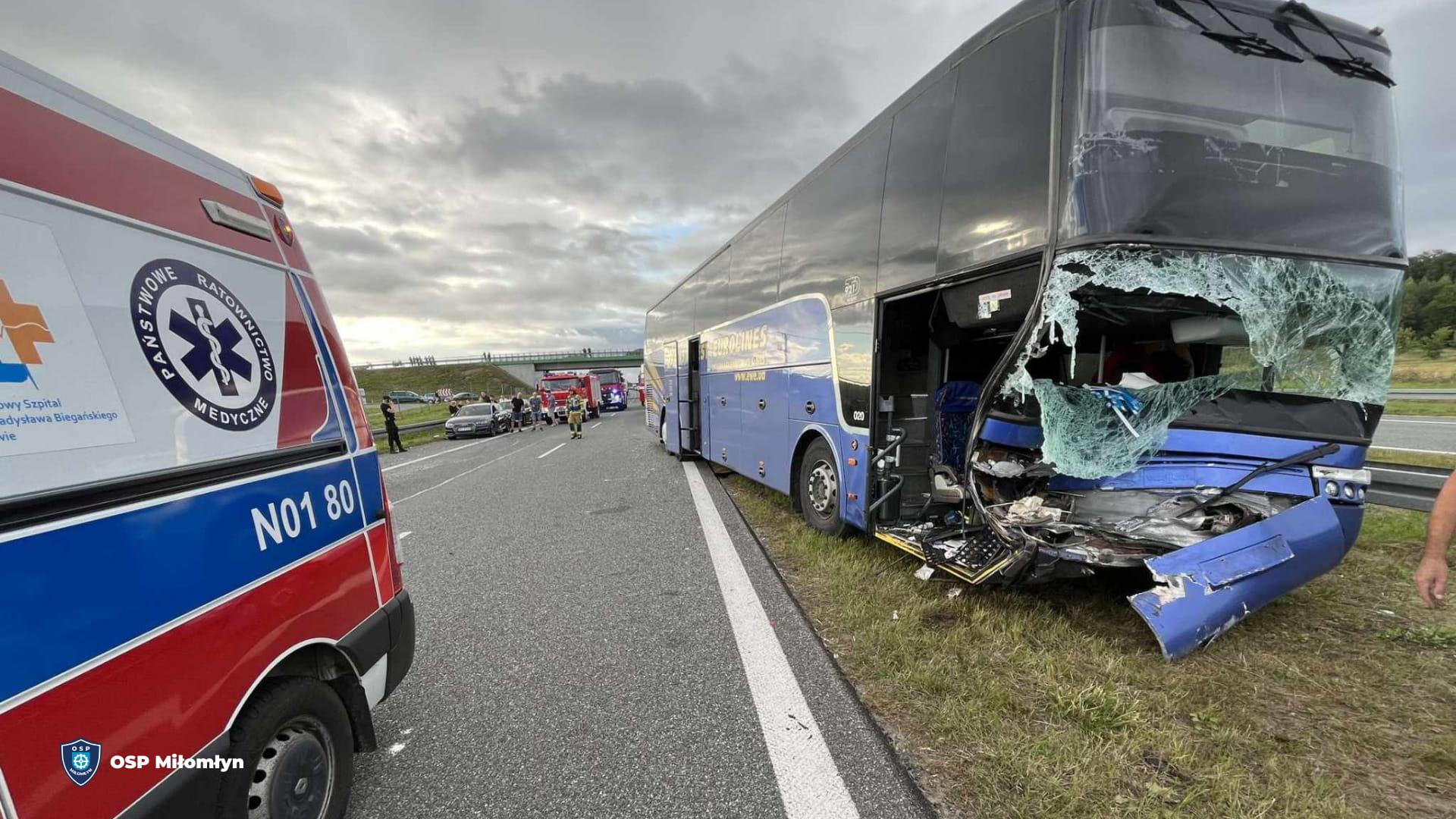 Do poważnego wypadku drogowego doszło wczoraj (05.08.2024) na drodze krajowej S7 w okolicy miejscowości Surzyki Wielkie – pow. ostródzki. Kilkanaście minut przed godziną 18:00 doszło do zderzenia samochodu osobowego, dostawczego i autokaru. Z ustaleń policji wynikało, że po najechaniu samochodowego w tył auta dostawczego, na tył osobówki najechał autokar. Siła uderzenia była bardzo duża. Przód autokaru i tył osobowego chevroleta uległo poważnym uszkodzeniom. Autem dostawczym podróżowało trzech mężczyzn – nie odnieśli żadnych obrażeń. Samochodem osobowym podróżowały dwie osoby, a wyniku wypadku kierowca auta został zabrany do szpitala. Autobusem podróżowało 21 osób (kobiety i dzieci) – obywatele Ukrainy oraz dwóch kierowców. Poważnie ranny został jeden z kierowców autokaru, który został zabrany do szpitala śmigłowcem Lotniczego Pogotowia Ratunkowego. Podróżujące autobusem kobiety i dzieci, dzięki wsparciu burmistrza Miłomłyna zostały przetransportowane pojazdem gminnym do szkoły w Miłomłynie, gdzie czekały na podstawienie autobusu zastępczego.