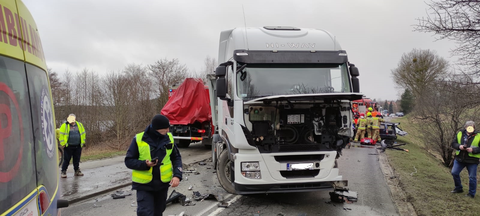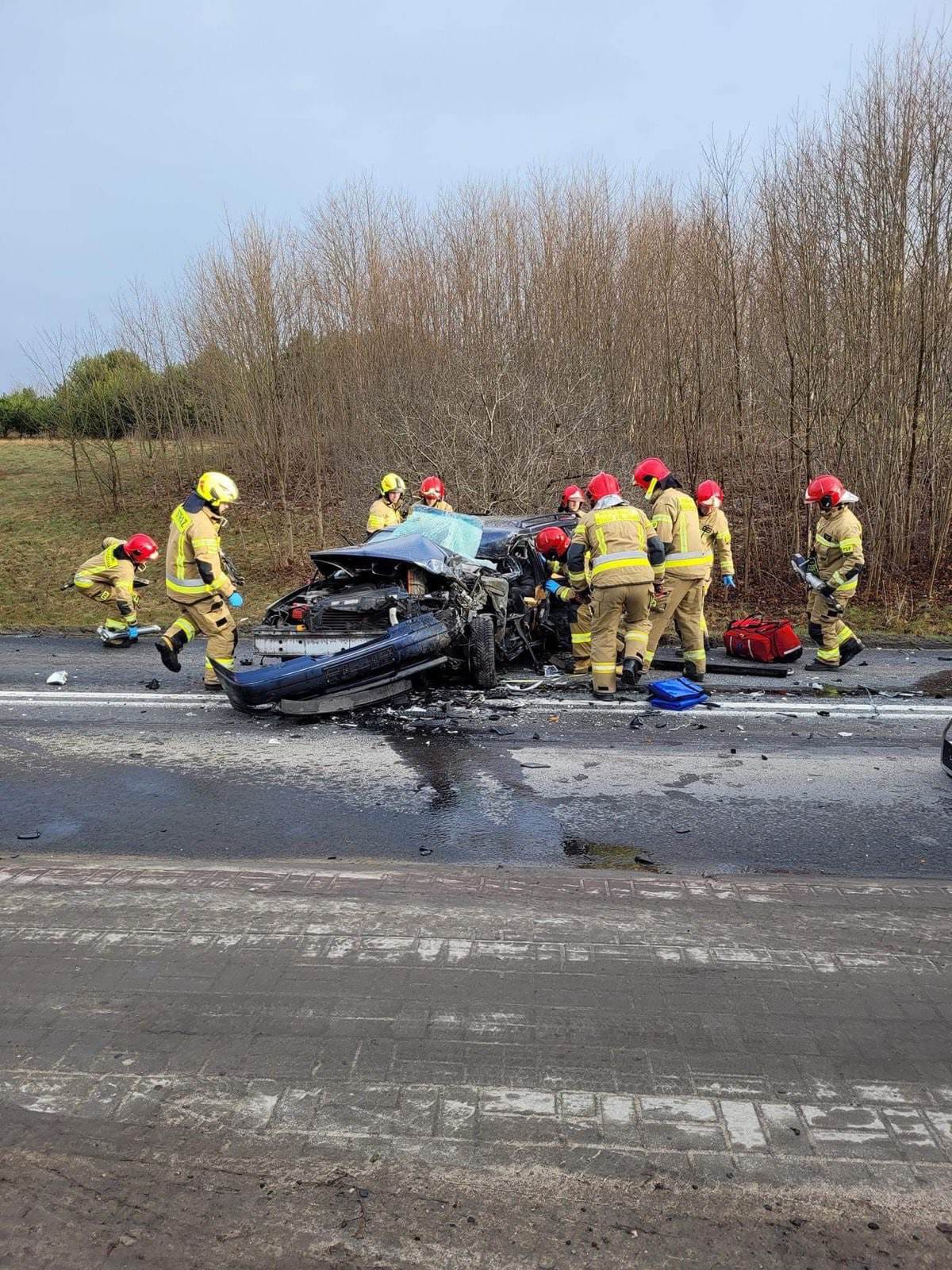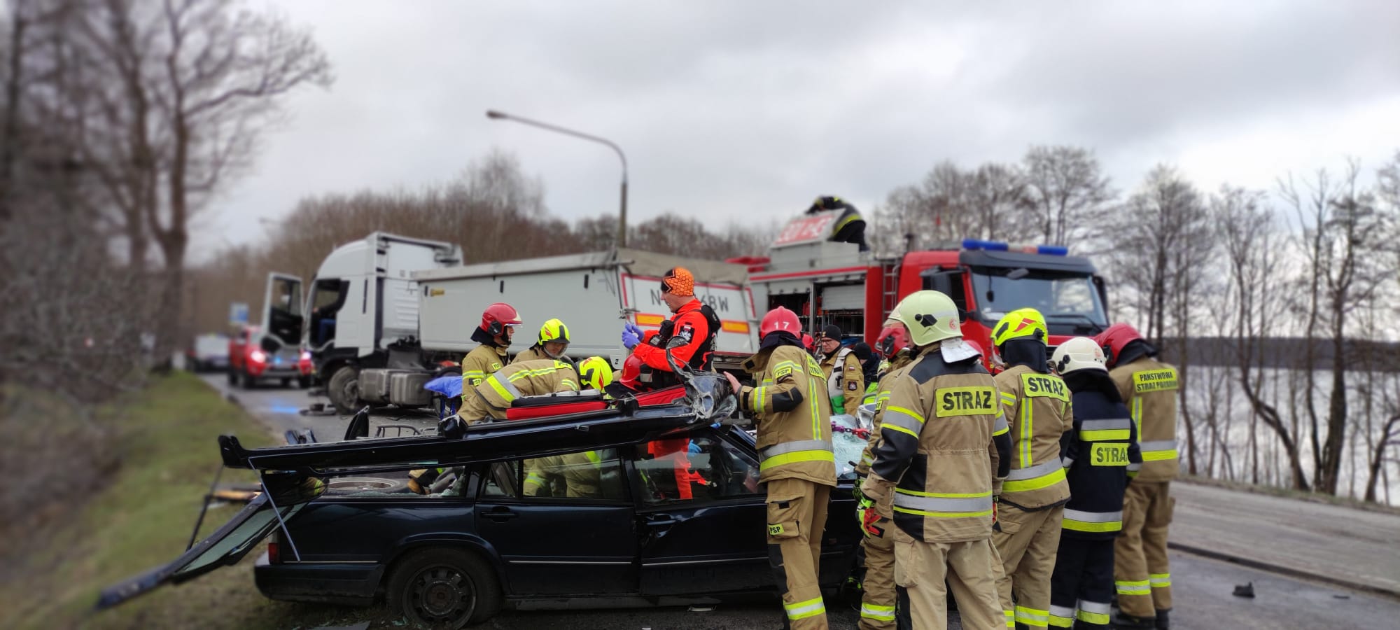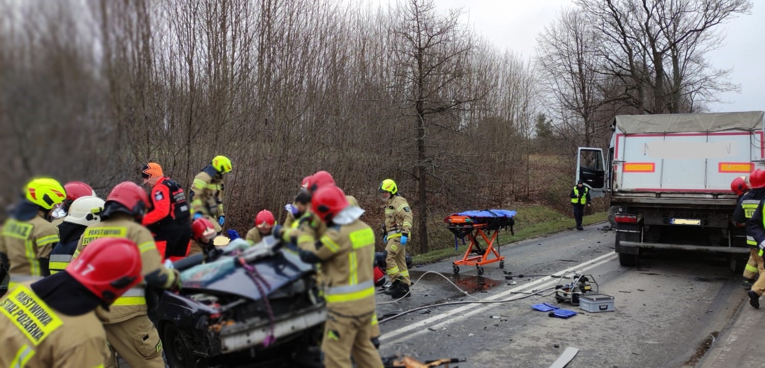 Kilka minut przed godziną ósmą 27 marca doszło do poważnego wypadku drogowego w Olsztynie. Na ulicy Bałtyckiej samochód osobowy czołowo zderzył się z ciężarowym. Do akcji ratowniczej z jednostki ratowniczo-gaśniczej nr 1 w Olsztynie wyjechały trzy zastępy pożarnicze, a także udał się olsztyński Komendant Miejski Państwowej Straży Pożarnej, który objął dowodzenie nad akcją. Ponadto dyspozycję wyjazdu otrzymała Ochotnicza Straż Pożarna Olsztyn – Gutkowo. Strażacy na miejscu wypadku zastali potężnie rozbity samochód osobowy, w którym uwięziony był przytomny mężczyzna. Strażacy natychmiast przystąpili do wykonania dostępu do poszkodowanego. Przy pomocy hydraulicznych narzędzi ratowniczych usunęli dach z pojazdu oraz rozparli zdeformowane elementy karoserii, a także odciągnęli kolumnę kierowniczą. Poszkodowany został wydobyty z pojazdu i przekazany zespołowi Państwowego Ratownictwa Medycznego. 58-letni mężczyzna z licznymi obrażeniami został zabrany do szpitala. Drugi uczestnik zdarzenia – kierowca zestawu ciężarowego nie odniósł obrażeń. Działania strażaków polegały również, na zabezpieczeniu rozbitych samochodów pod względem pożarowym. Ulica Bałtycka była zablokowana ponad trzy godziny. Przyczyny wypadku ustala Policja.