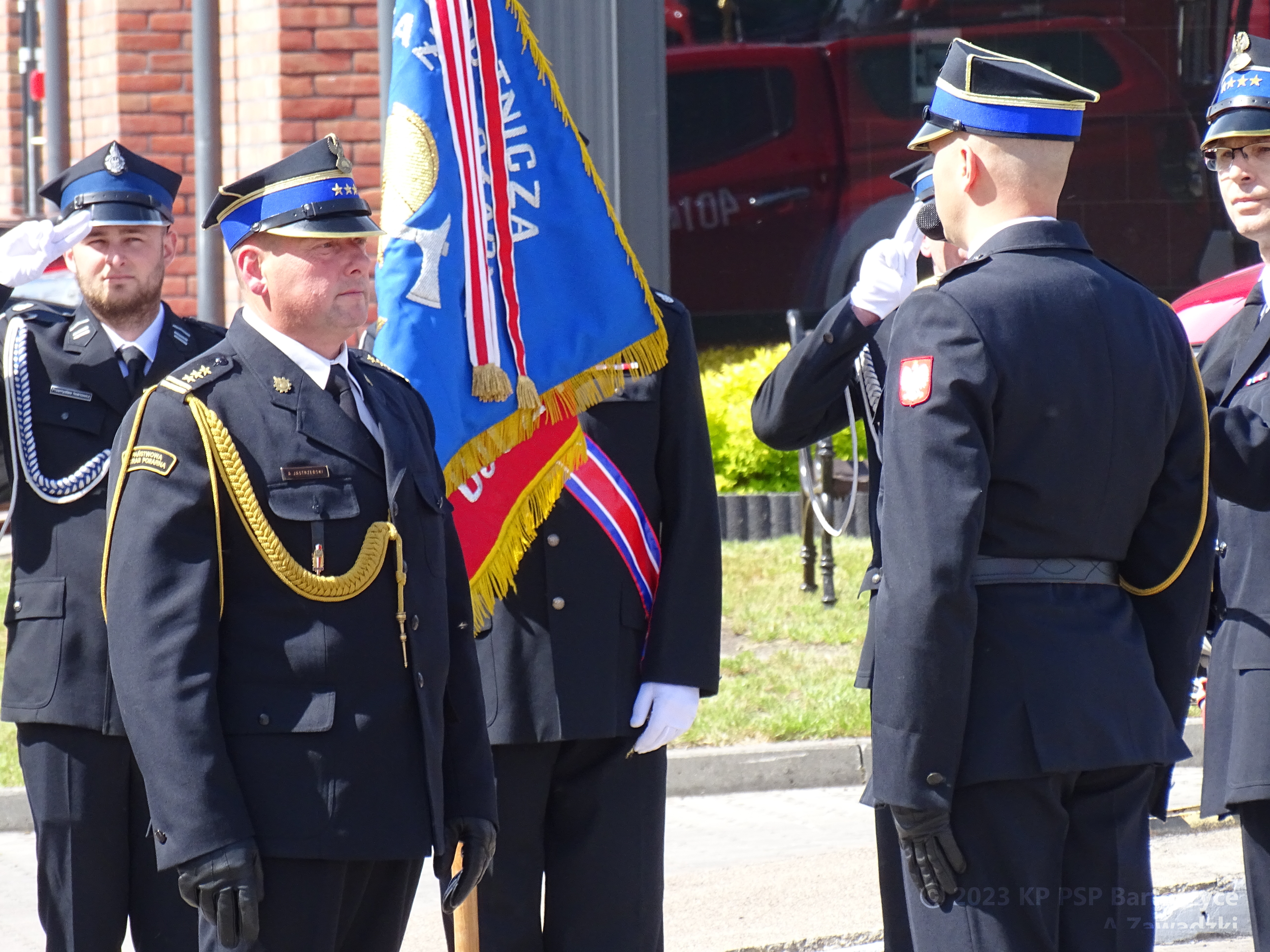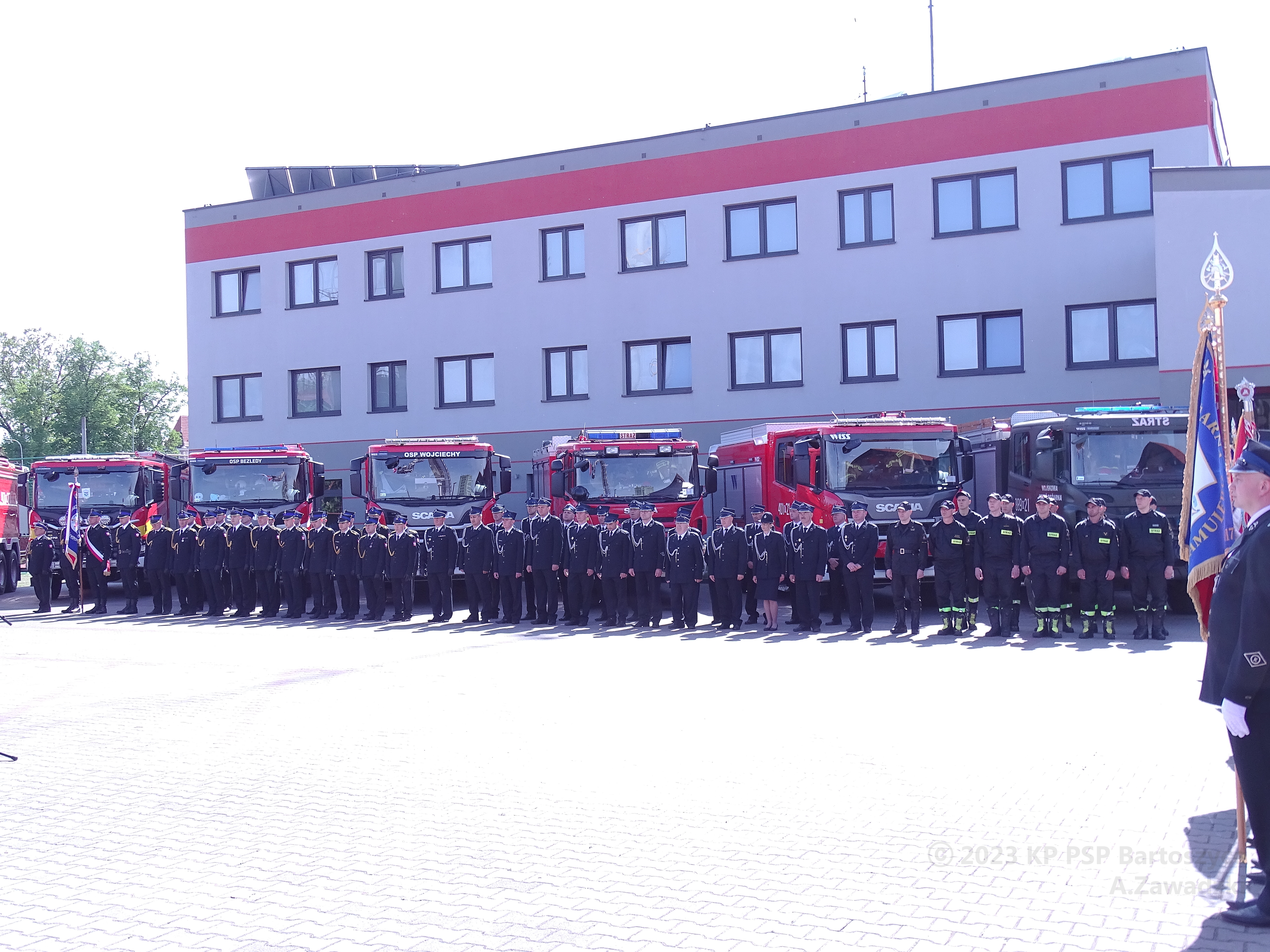 Uroczystość rozpoczęła się od złożenia meldunku Zastępcy Warmińsko-Mazurskiego Komendanta Wojewódzkiego PSP st. bryg. Adamowi Jastrzębskiemu przez dowódcę uroczystości. Następnie podniesiona została flaga państwowa i odśpiewany został „Mazurek Dąbrowskiego”. Jako pierwszy głos zabrał Komendant Powiatowy PSP w Bartoszycach st. bryg. Andrzej Harhaj, który przywitał zaproszonych gości, a następnie podziękował pracownikom cywilnym oraz funkcjonariuszom za zaangażowanie oraz codzienna pracę na rzecz tutejszej komendy. Słowa uznania skierował do przyjaciół z Ochotniczych Straży Pożarnych za ich poświęcenie na rzecz ochrony przeciwpożarowej. Podziękował także wszystkim przedstawicielom instytucji zarówno szczebla państwowego, jak i samorządowego oraz wszystkim sympatykom służby za doskonałą współpracę i wsparcie finansowe, które kierowane jest do bartoszyckiej komendy i jednostek OSP z terenu powiatu bartoszyckiego.