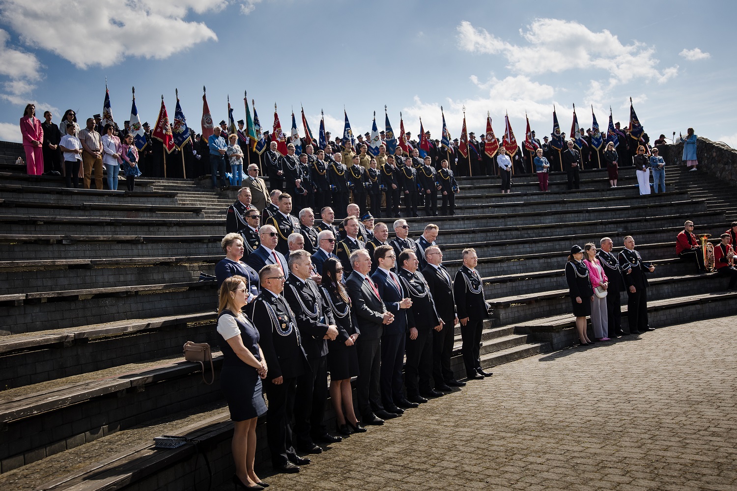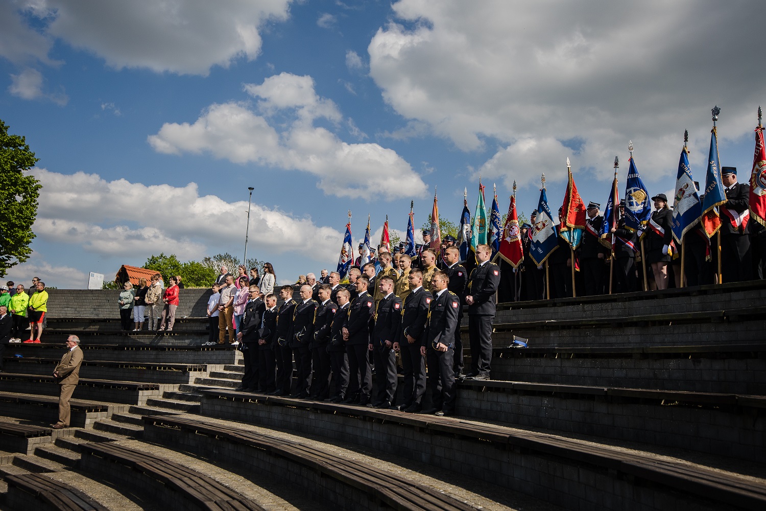 Uroczysty apel rozpoczął się od złożenia meldunku przez dowódcę uroczystości dh Mateusza Jaguszewskiego Prezesowi Zarządu Oddziału Wojewódzkiego Związku Ochotniczych Straży Pożarnych RP dh Gustawowi Markowi Brzezinowi i przeglądu poddziałów, następnie przy dźwiękach hymnu uroczyście podniesiono flagę państwową.