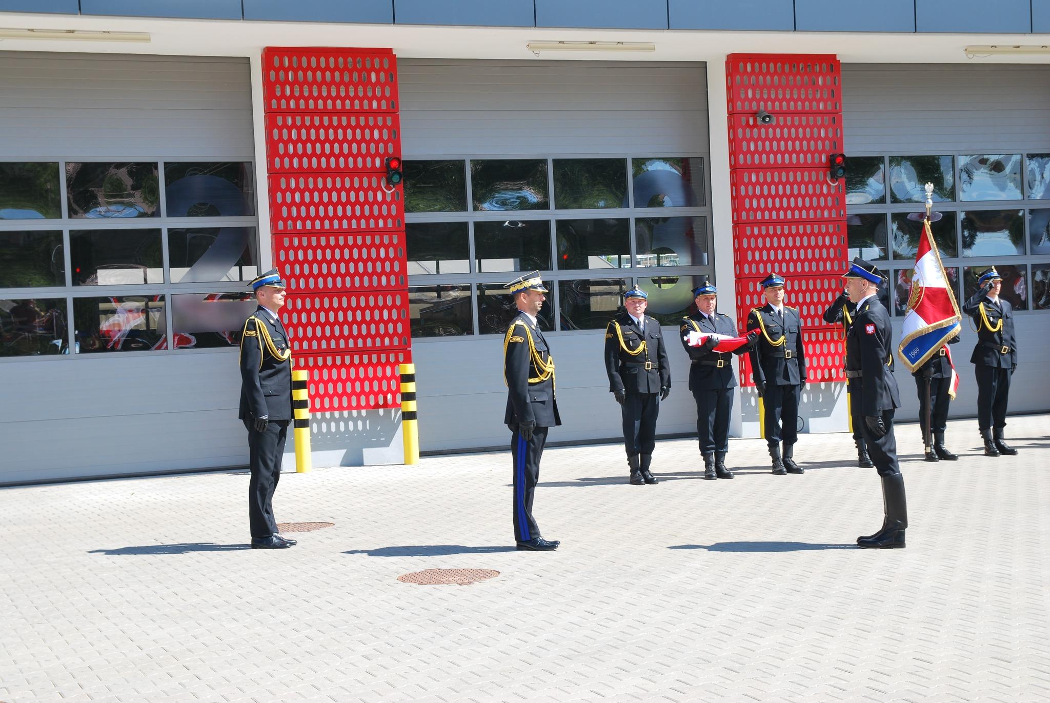 Uroczystość rozpoczęła się od złożenia meldunku Warmińsko – Mazurskiemu Komendantowi Wojewódzkiemu Państwowej Straży Pożarnej nadbryg. Michałowi Kamienieckiemu. Meldunek złożył Dowódca Uroczystości, st. kpt. Mateusz Norek.