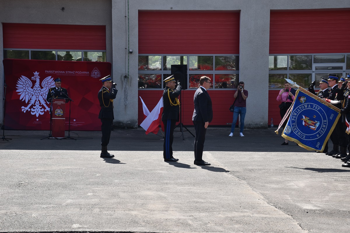 Komendant Powiatowy PSP st. bryg. Piotr Wlazłowski przywitał przybyłych na uroczystość gości. Podkreślił również, że tegoroczne obchody Dnia Strażaka maką wyjątkowy charakter w związku z obchodzonym jubileuszem 30-lecia powstania Państwowej Straży Pożarnej.