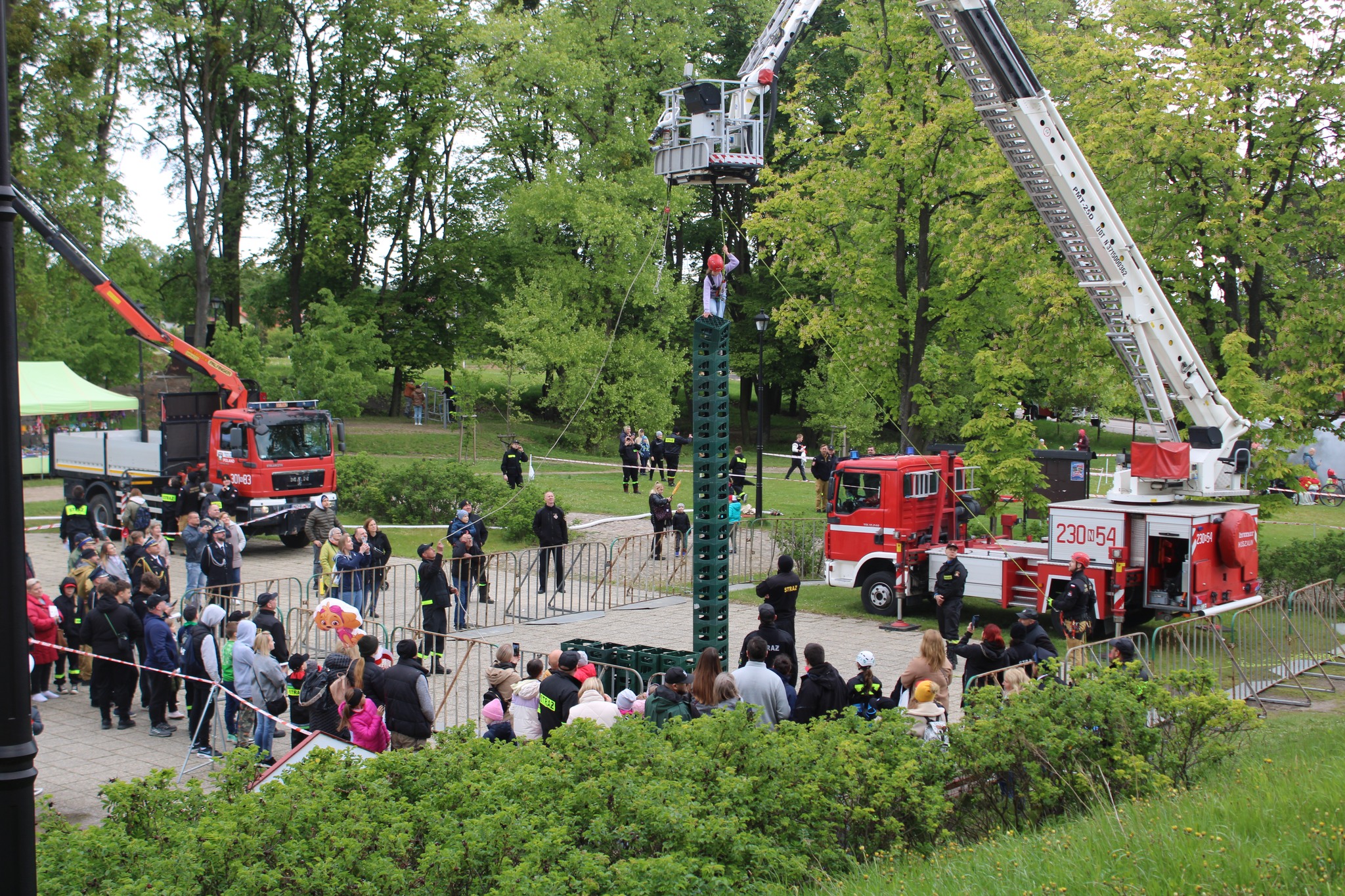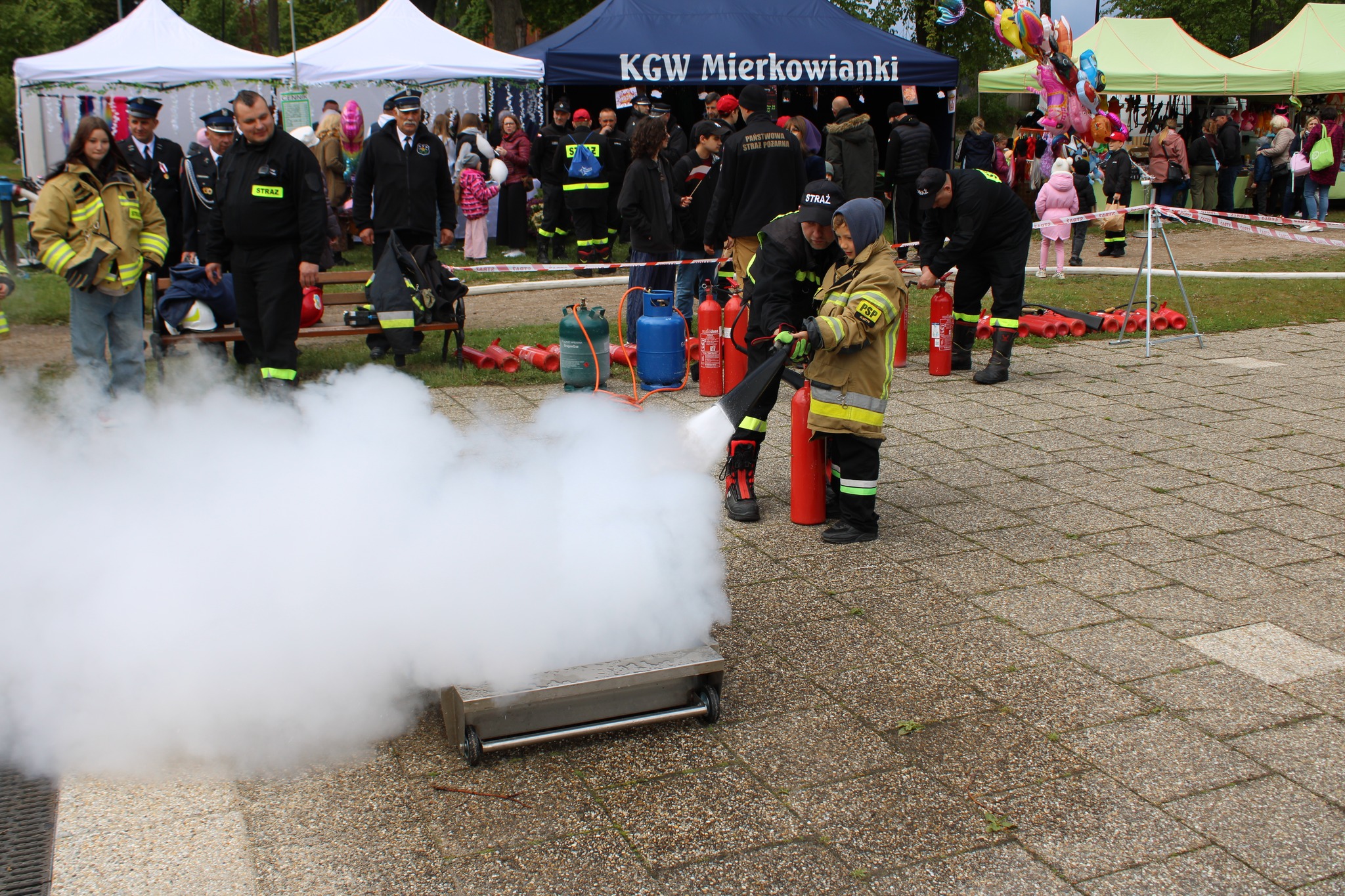 Po zakończeniu uroczystego apelu rozpoczął się Powiatowy Piknik Strażacki na przyzamczu, na którym przygotowane było wiele atrakcji, między innymi dmuchana zjeżdżalnia, zabawy z wodą i sprzętem gaśniczym, gry i zabawy oraz pokazy sprzętu i pojazdów strażackich. Najmłodsi uczestnicy wspólnie z rodzicami mogli poczuć się jak prawdziwi strażacy uczestnicząc w przygotowanych konkurencjach między innymi z zakresu ratownictwa technicznego, ratownictwa medycznego czy ratownictwa wysokościowego. Dzieci pokonywały również mini tor strażacki, miały możliwość przejazdu quadem oraz mogły gasić symulowane pożary gaśnicami oraz bawić się wodą celując do wyznaczonego celu. Dla osób, które ukończyły co najmniej sześć przygotowanych konkurencji strażackich czekał dyplom „Dzielnego Małego Strażaka”. Na pikniku strażackim panowała iście wyjątkowa, rodzinna atmosfera, a frekwencja dopisała !