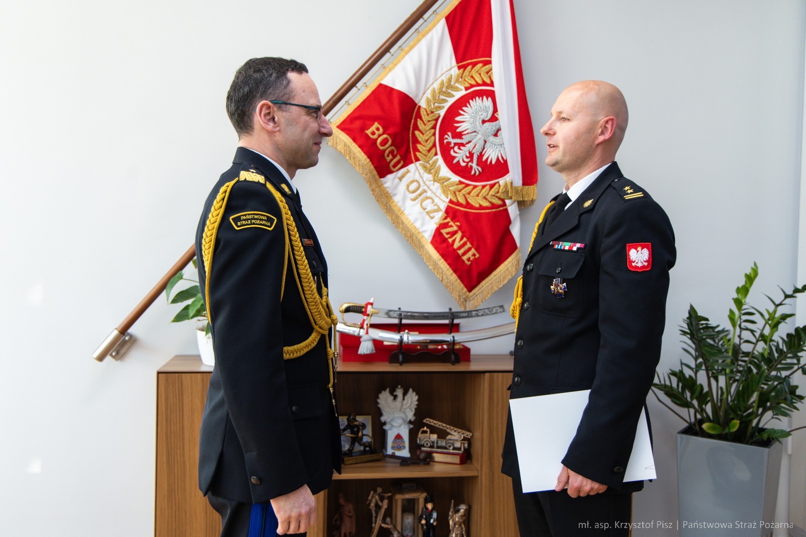 Uroczystość wręczenia decyzji odbyła się w Komendzie Głównej PSP, a udział w niej wziął również nadbryg.. Michał Kamieniecki Warmińsko-Mazurski Komendant Wojewódzki PSP.