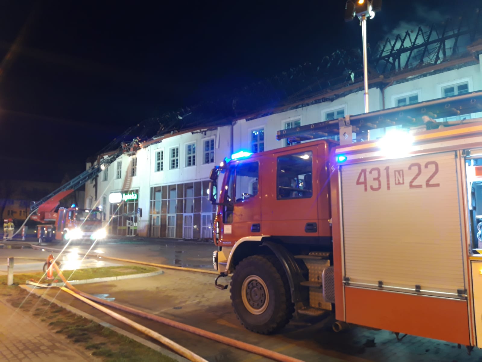 Kilkanaście minut po godzinie dwudziestej drugiej 11 kwietnia doszło do pożaru dachu galerii handlowej przy ulicy Mickiewicza w Ełku. Z informacji, jakie wpłynęły do stanowiska kierowania komendanta powiatowego PSP w Ełku, wynikało, że na dachu dawnego budynku szpitala, w którym obecnie funkcjonuje galeria handlowa, widoczne są płomienie. Do akcji gaśniczej z ełckiej JRG wyjechały dwa samochody ratowniczo-gaśnicze oraz samochód specjalny z drabiną mechaniczną. Dyspozycję wyjazdu otrzymały także okoliczne jednostki Ochotniczych Straży Pożarnych. Na miejscu strażacy zastali rozwinięty pożar dachu galerii handlowej. Ogień rozprzestrzeniał się błyskawicznie, po kilku minutach objął cały dach. Strażacy natychmiast rozpoczęli akcję gaśniczą. W pierwszej fazie podali przy wykorzystaniu drabiny mechanicznej i drabin przystawnych wodę z wężowych linii gaśniczych na płonący dach. Sukcesywnie na miejsce zdarzenia dojeżdżały kolejne zastępy pożarnicze, między innymi podnośnik hydrauliczny z JRG Olecko, co pozwoliło na wprowadzenie kolejnych prądów gaśniczych, również do wnętrza budynku. Strażacy starali się nie dopuścić, do przedostania się pożaru na poniższą kondygnację, w której znajdował się pasaż handlowy. Na miejsce akcji przybył Komendant Powiatowy PSP w Ełku, który przejął dowodzenie oraz grupa operacyjna komendanta wojewódzkiego PSP pod dowództwem Zastępcy Warmińsko-Mazurskiego Komendanta Wojewódzkiego PSP st. bryg. Adama Jastrzębskiego. W kulminacyjnym punkcie akcji gaśniczej udział w niej brało 11 zastępów pożarniczych, 37 strażaków. Strażakom udało się powstrzymać rozwój pożaru, dzięki czemu nie przeniósł się on na pasaż handlowy. Niestety cały dach spłonął. Wstępnie straty oszacowano na ponad 2 miliony złotych, a wartość uratowanego mienia na około 15 milionów złotych. Akcja gaśnicza wraz z etapem dogaszania trwała ponad 3 godziny. Przyczyny pożaru ustala Policja.