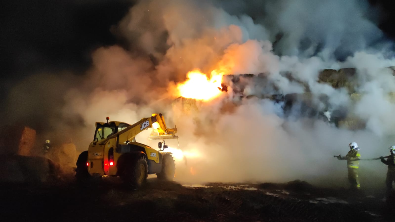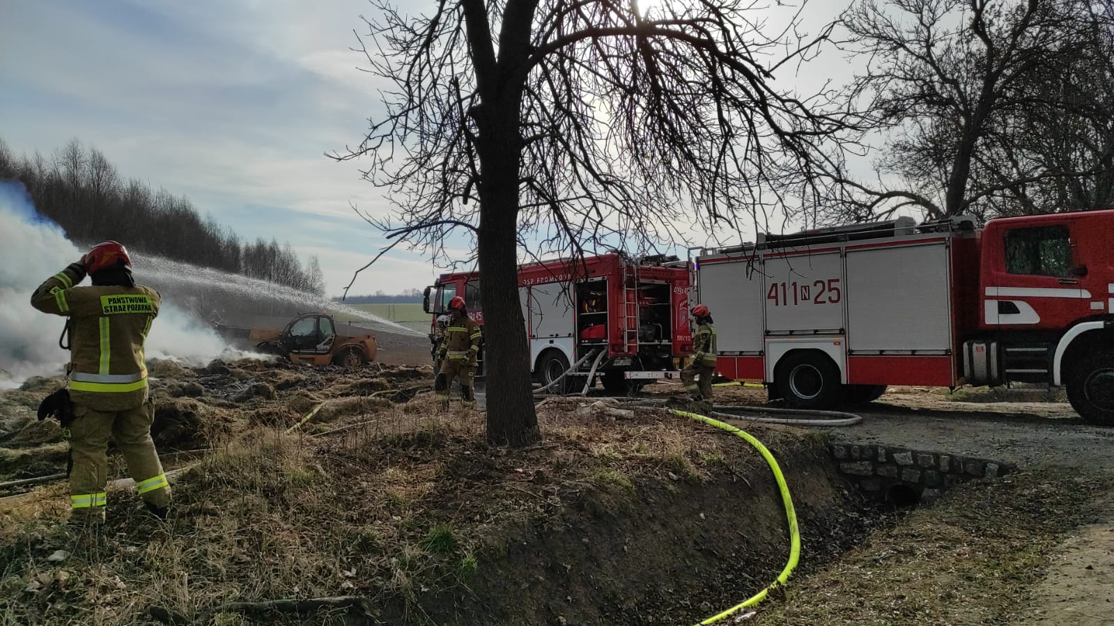 Pożar składowiska balotów słomy we Fromborku. Długotrwała akcja gaśnicza