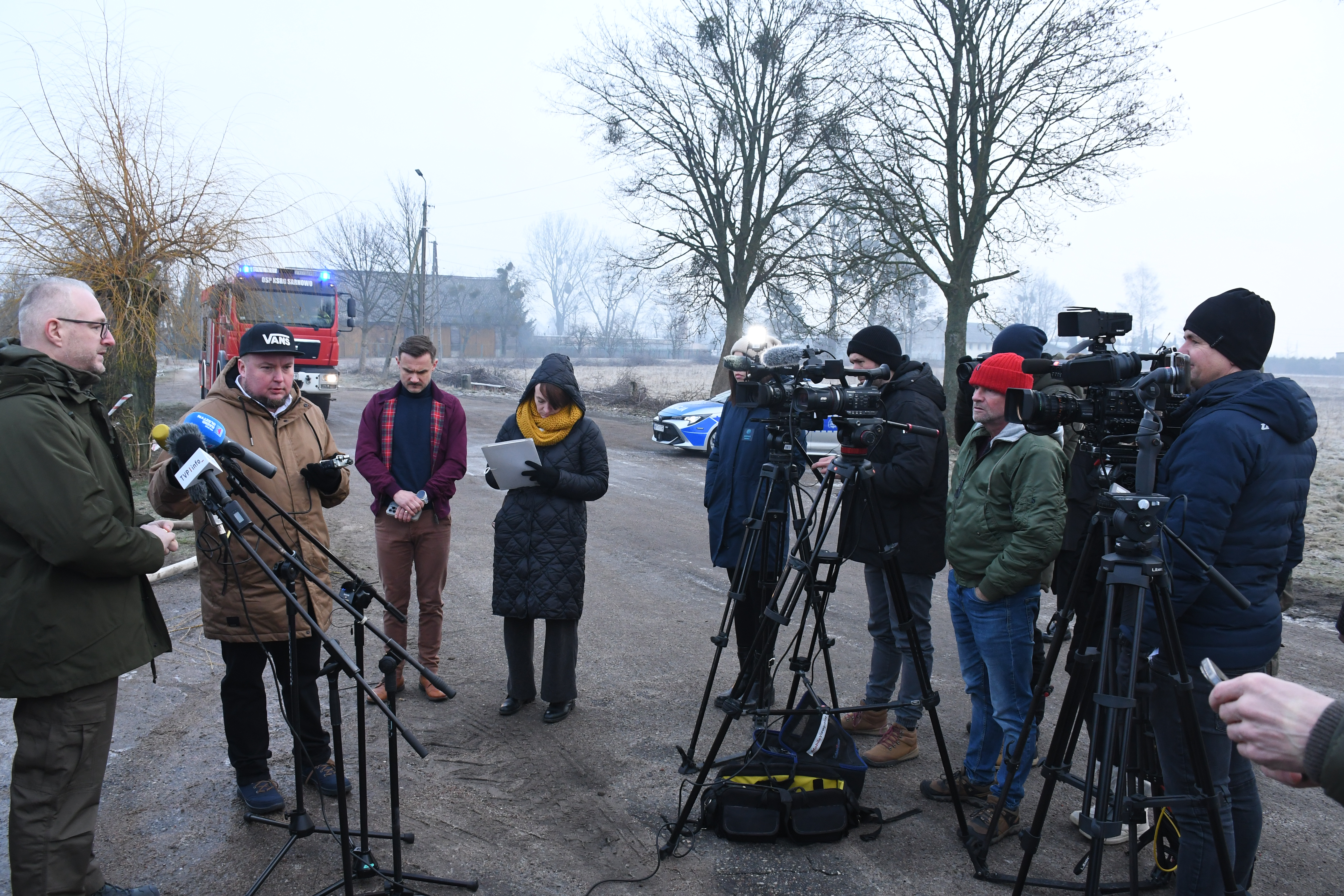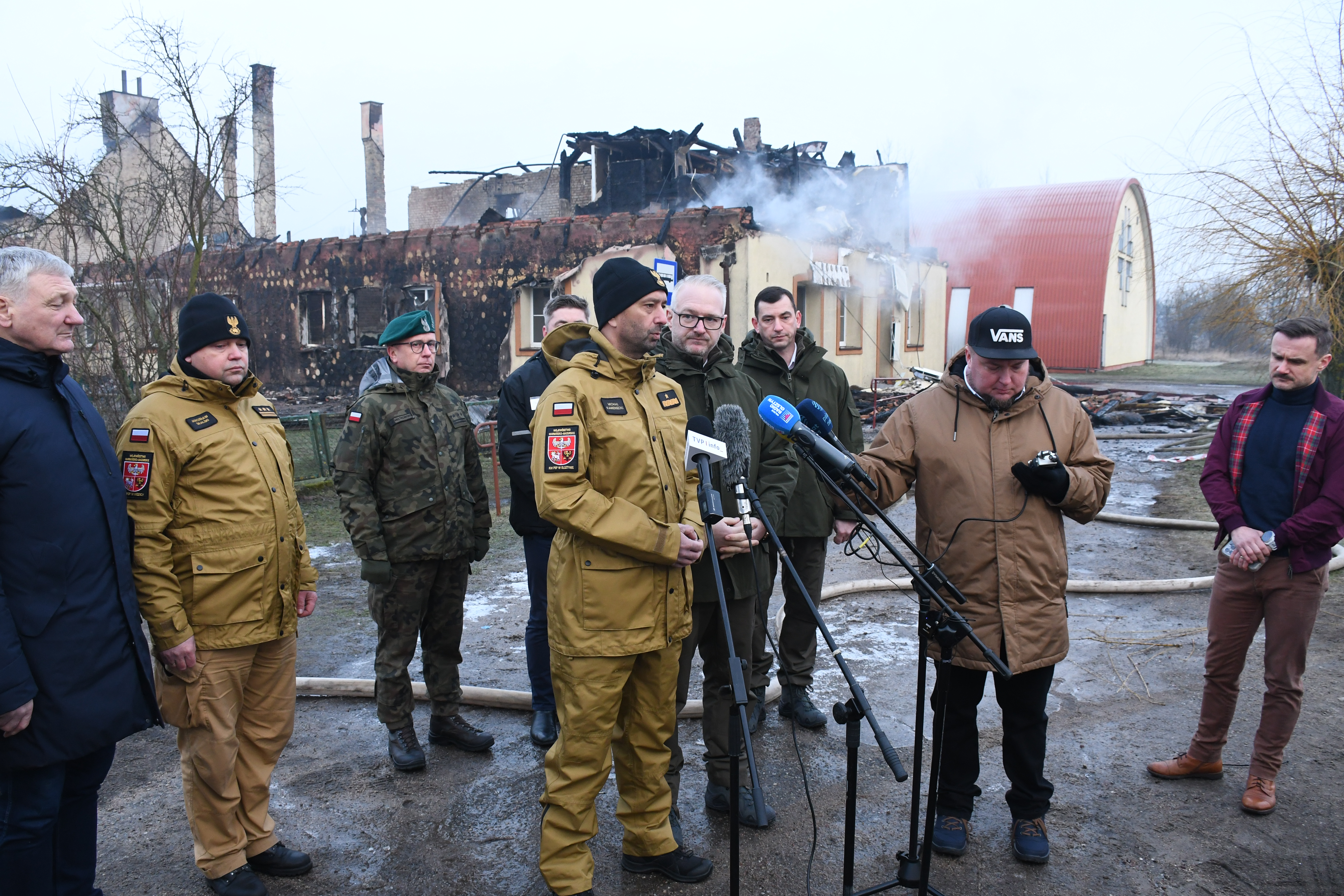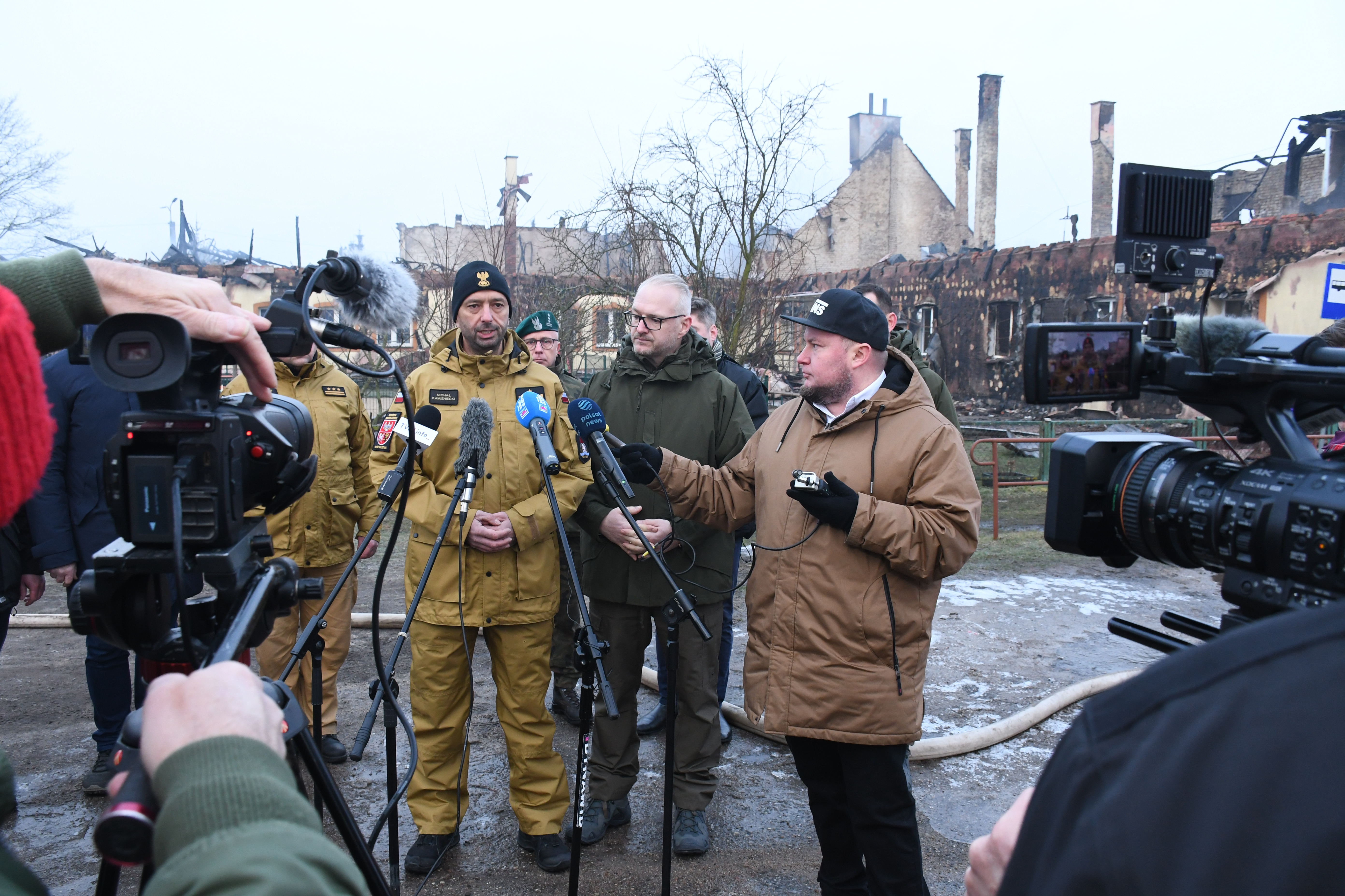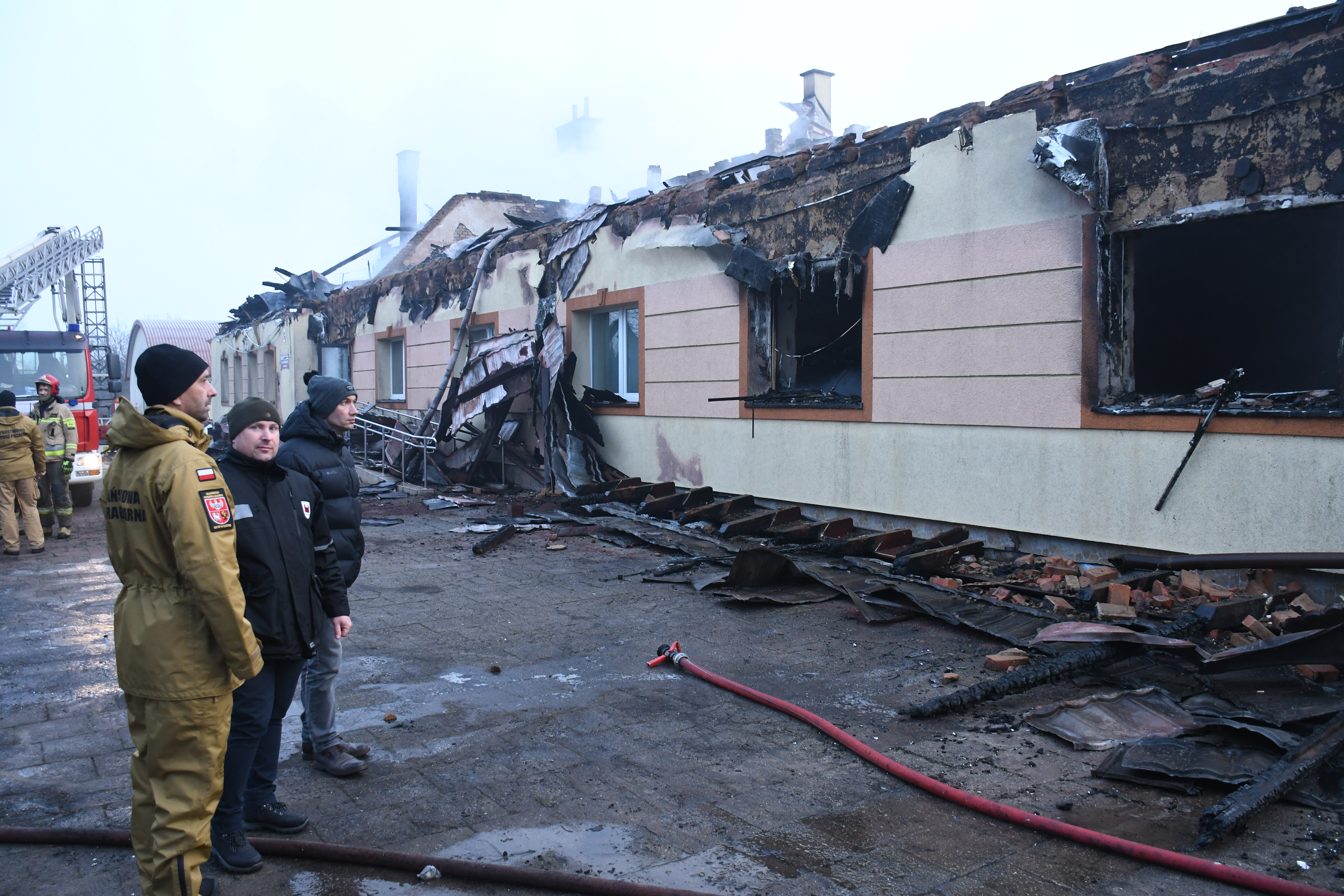 Dzisiejszego poranka (21 stycznia 2025) Komendant Wojewódzki PSP w Olsztynie ponownie przybył do Szkotowa, gdzie wraz z Radosławem Królem Wojewodą Warmińsko-Mazurskim i samorządowcami powiatu nidzickiego przeanalizowali stan szkód oraz dalsze etapy akcji dogaszania pożaru i kolejnych kroków po pożarze.