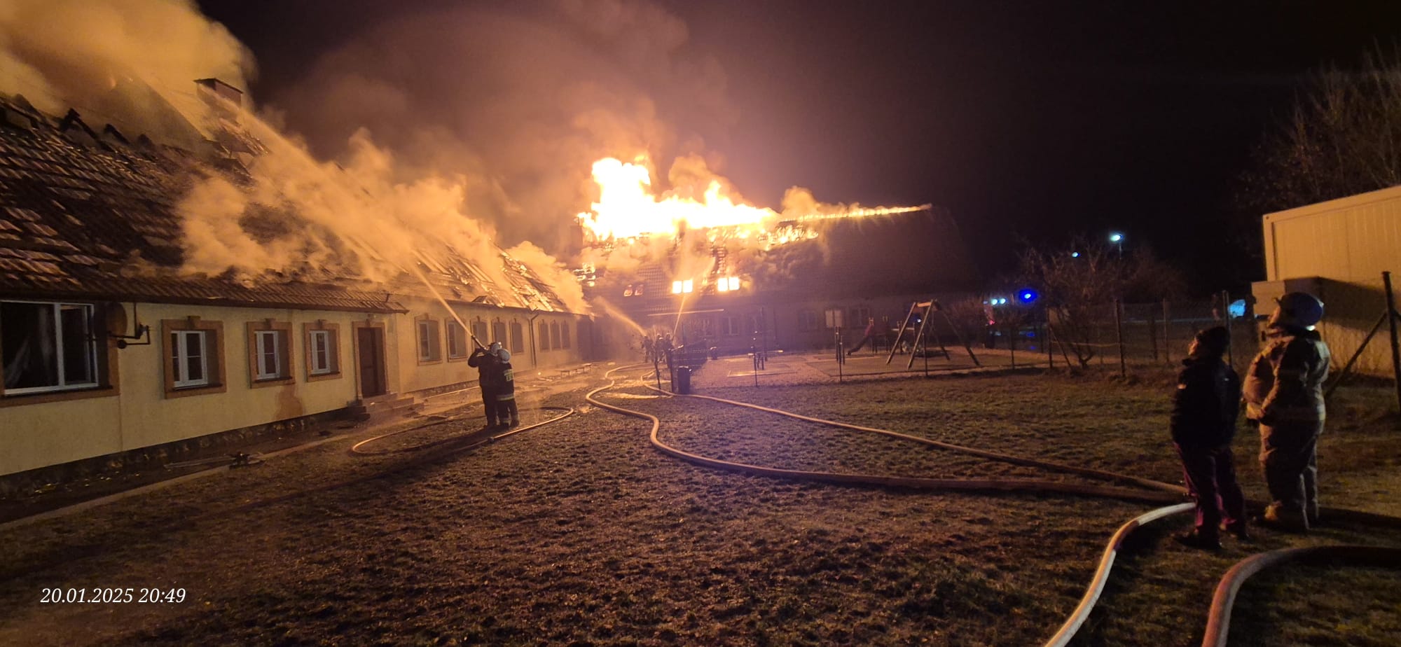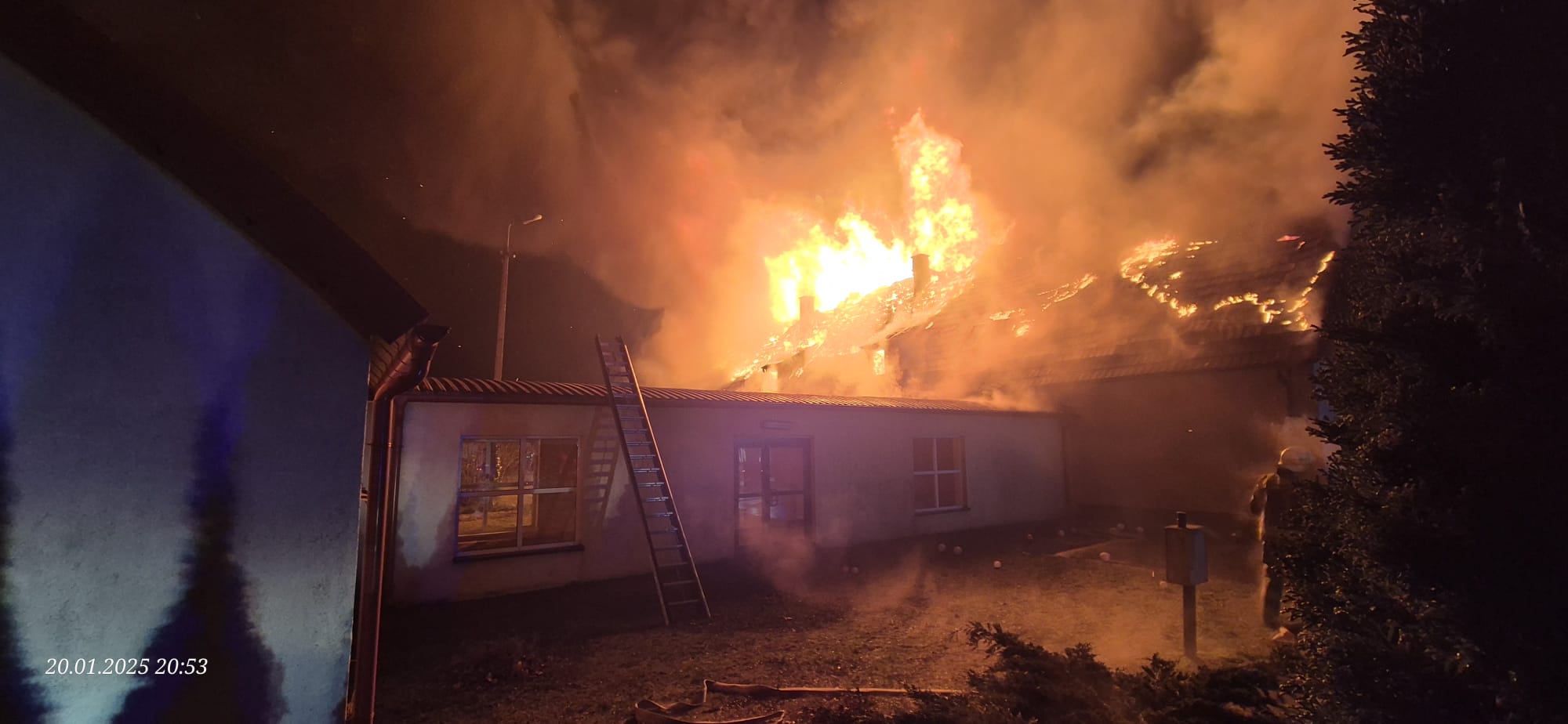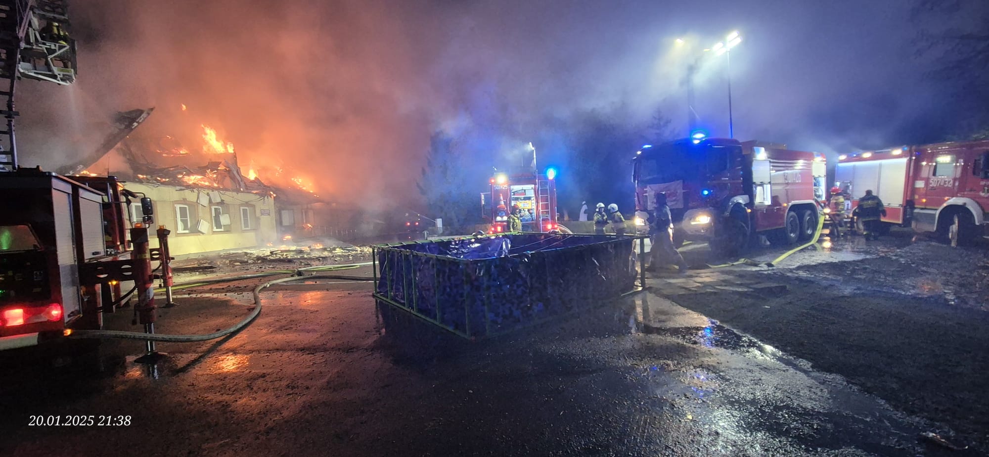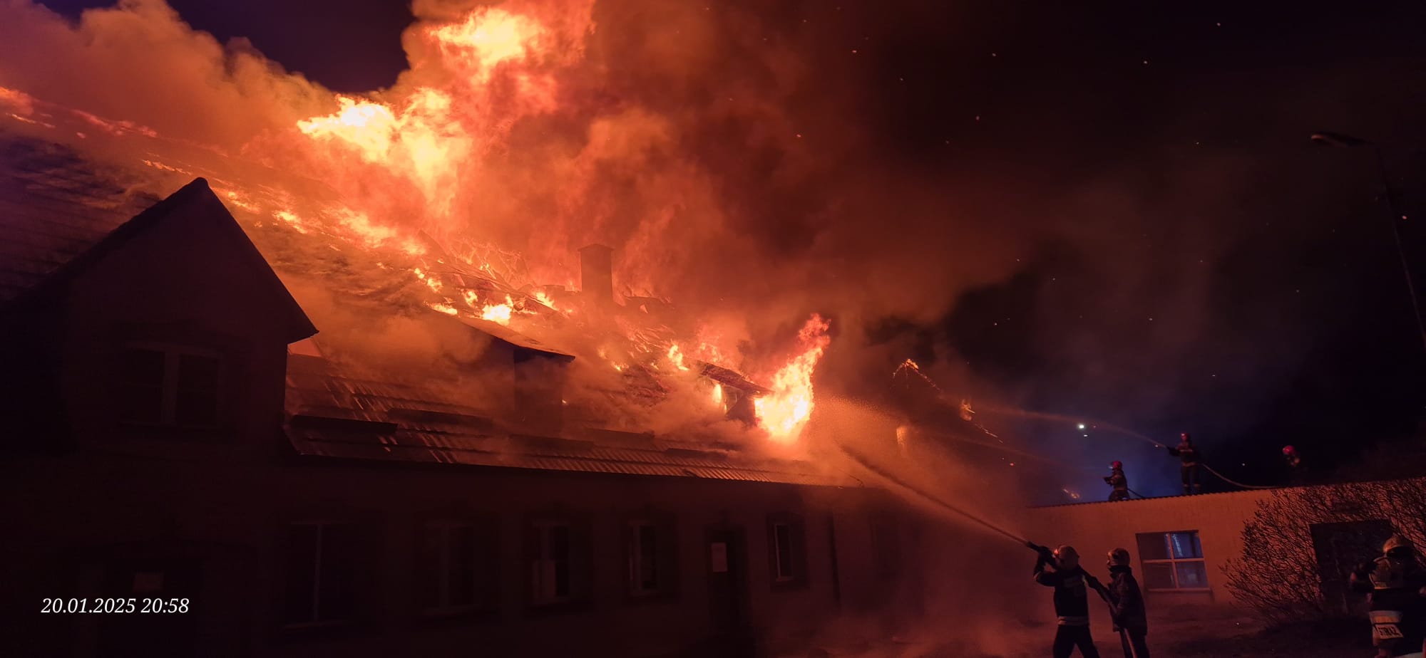 Wczorajszy wieczór (20 stycznia 2025) przyniósł dramatyczne wydarzenia w Szkotowie – pow. nidzicki, gdzie późnym wieczorem doszło do pożaru Szkoły Podstawowej im. ks. Jana Twardowskiego. Zgłoszenie o widocznych płomieniach na poddaszu budynku wpłynęło około godziny 19:00. Na miejscu strażacy zastali intensywnie rozprzestrzeniający się pożar dachu i strychu. Zagrożona pożarem była sala gimnastyczna, która połączona była łącznikiem z płonącym budynkiem. Strażacy prowadzili akcję gaśniczą w dwóch kierunkach. Gasili płonący budynek szkoły w natarciu oraz podjęli obronę sali gimnastycznej. W kulminacyjnym momencie w akcję zaangażowanych było 78 strażaków z 23 zastępów z powiatów nidzickiego, działdowskiego, olsztyńskiego i ostródzkiego. Dzięki ich profesjonalizmowi udało się ochronić część budynku, w tym salę gimnastyczną. Na miejscu akcji obecny był między innymi nadbryg. Michał Kamieniecki Warmińsko-Mazurski Komendant Wojewódzki Państwowej Straży Pożarnej wraz z grupą operacyjną oraz kierownictwo nidzickiej Komendy Powiatowej PSP.