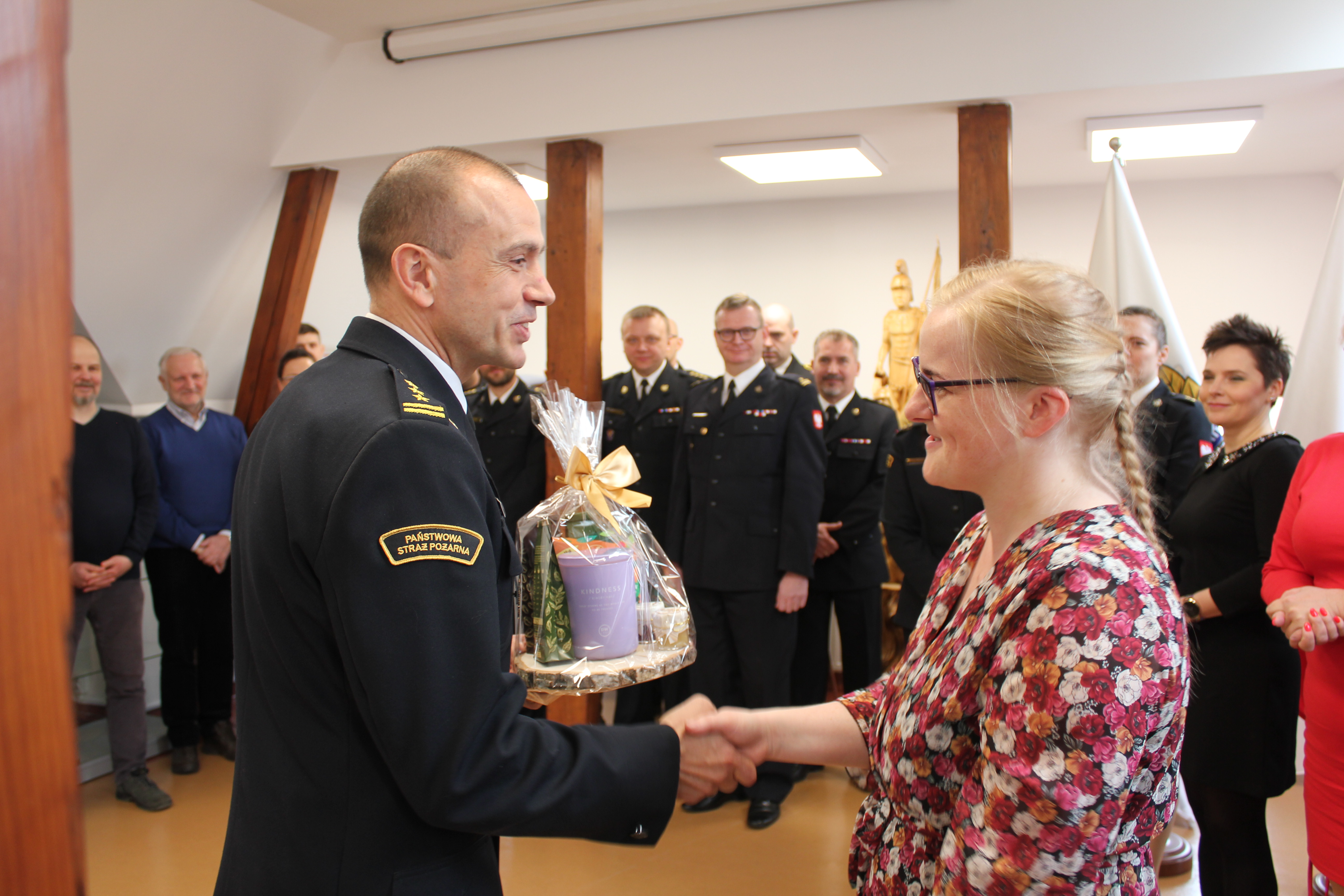 Pracownicy cywilni i funkcjonariusze KW PSP w Olsztynie pożegnali się również z Panią Katarzyną Gocejn - byłym pracownikiem wydziału finansów KW PSP w Olsztynie, która od 1 lutego br. objęła stanowisko głównego księgowego w Komendzie Powiatowej PSP w Mrągowie.