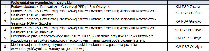 Plan Państwowej Straży Pożarnej przewiduje realizacje 150 inwestycji budowlanych w całym kraju, w tym 6 inwestycji na Warmii i Mazurach.