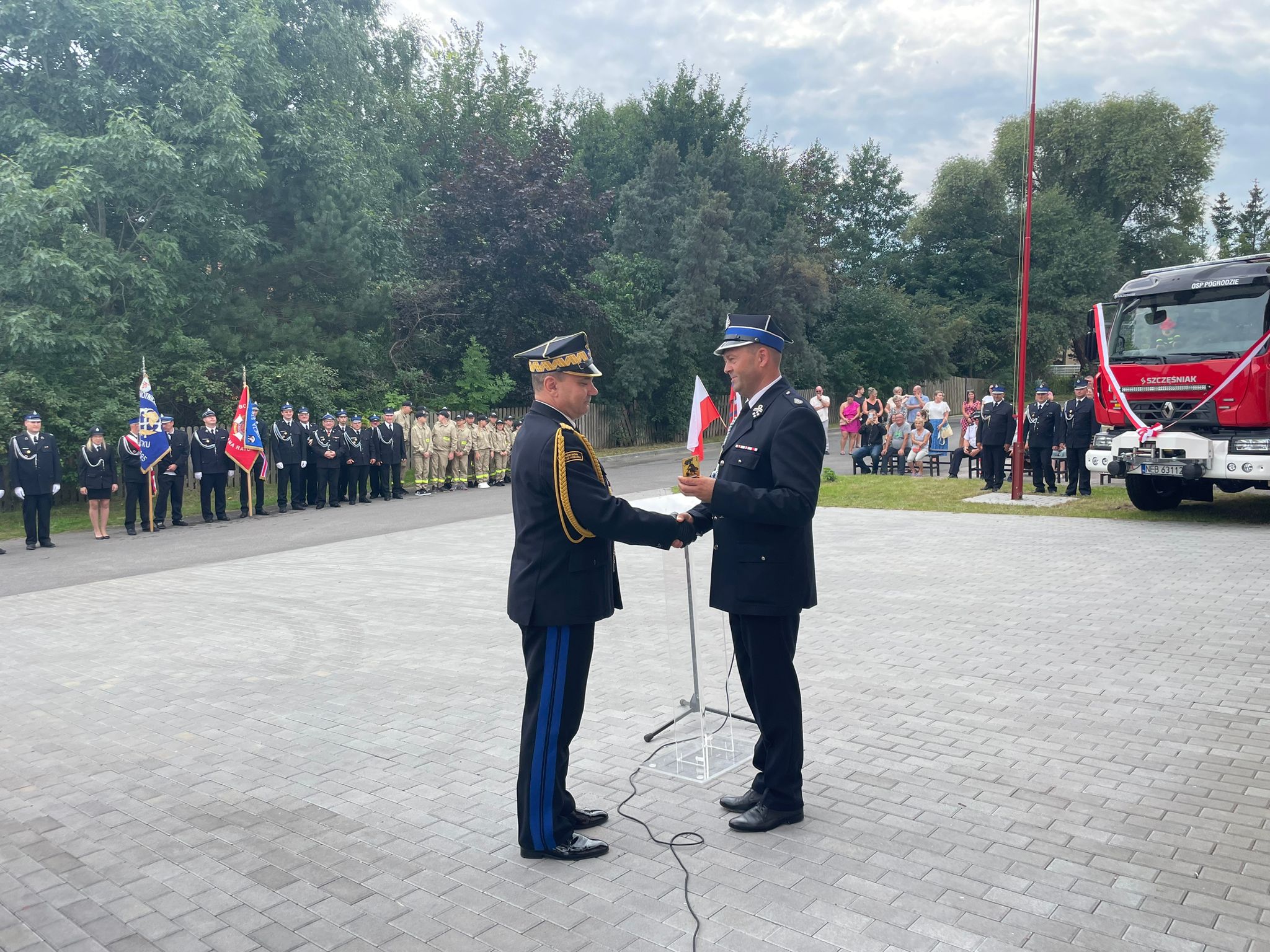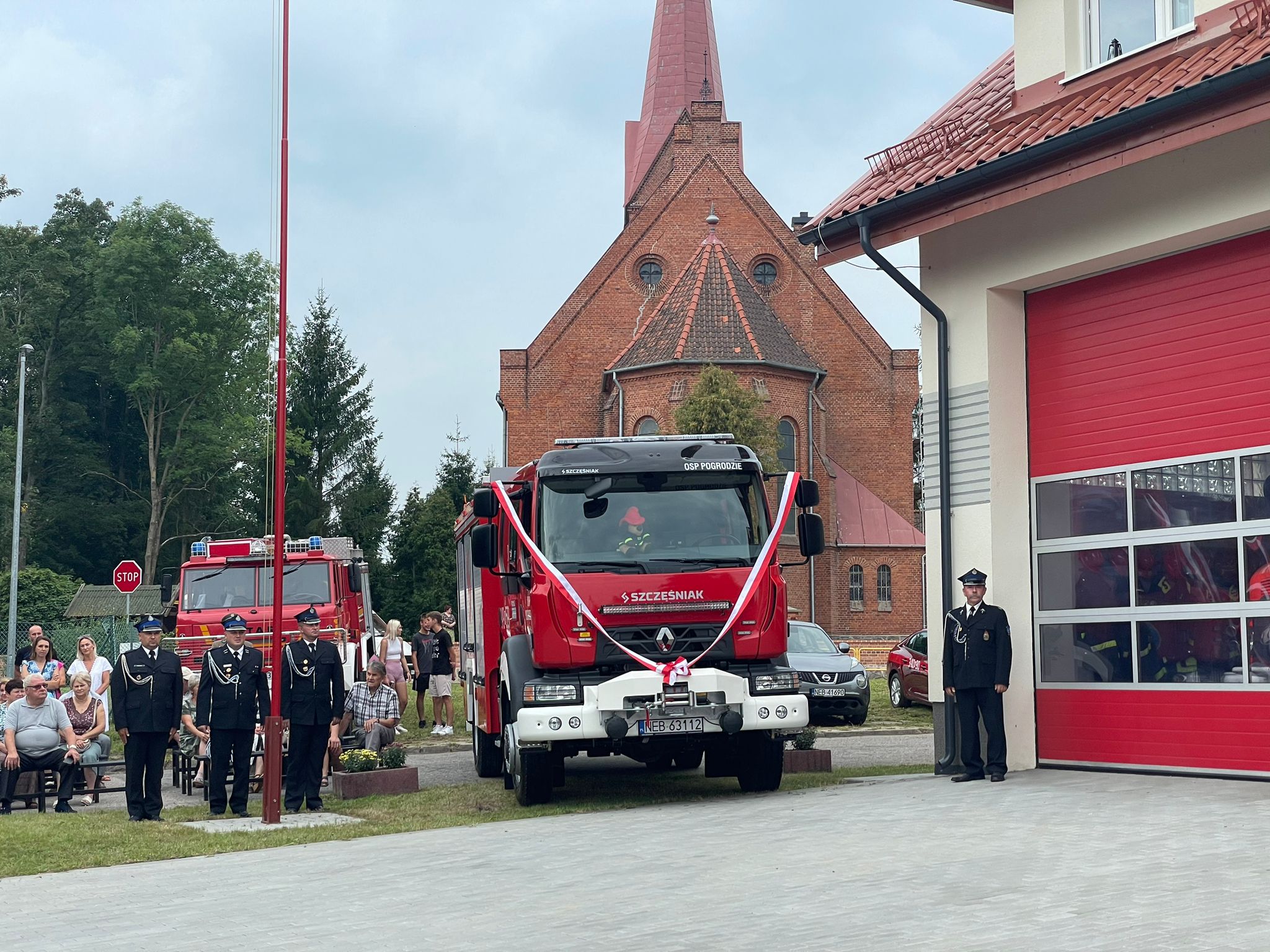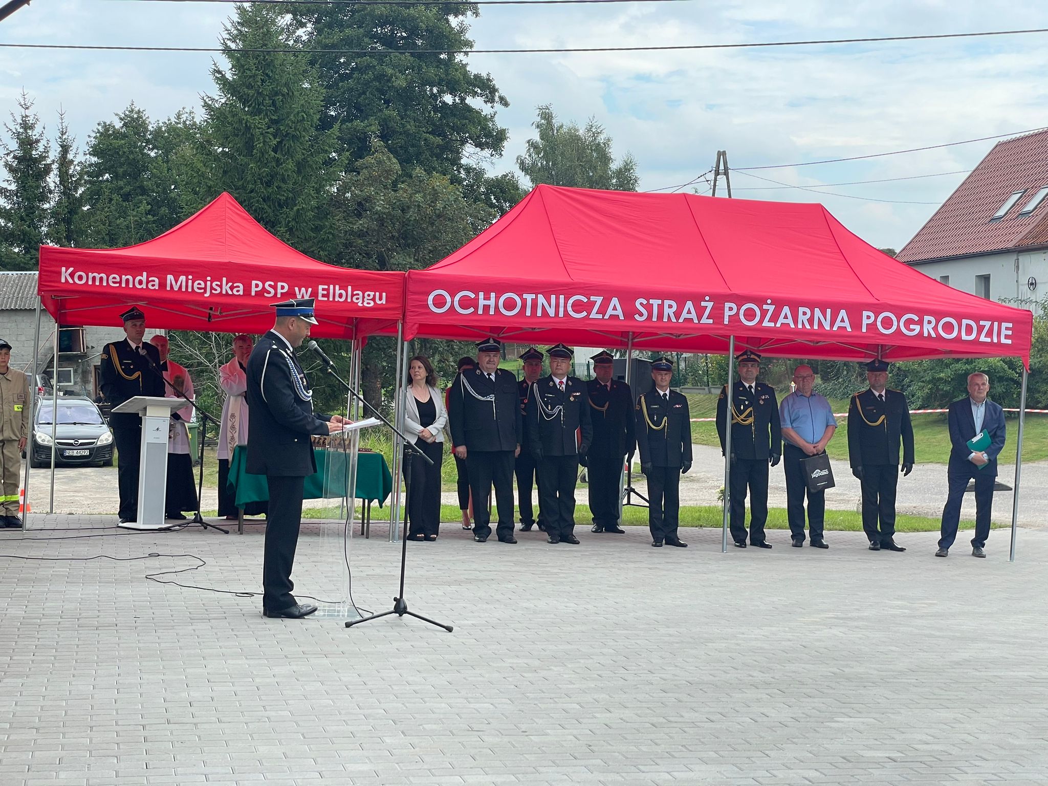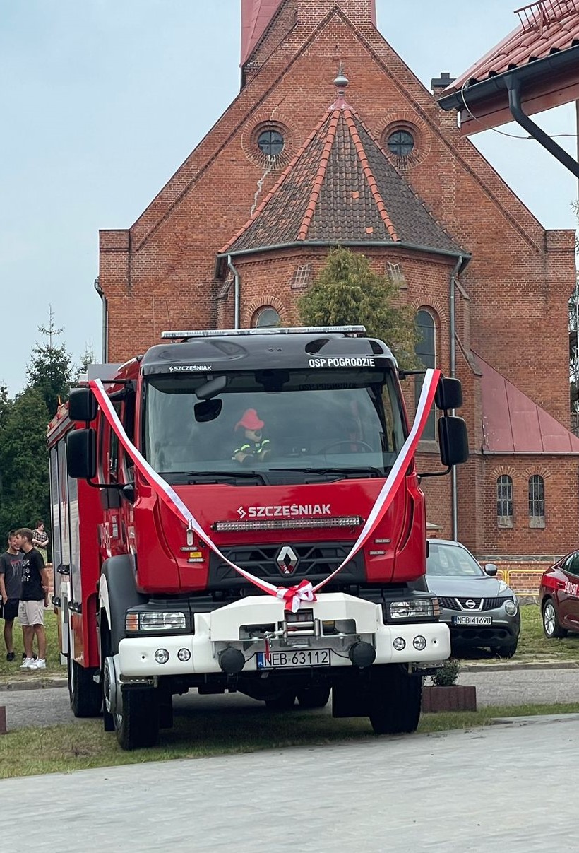 W minioną sobotę 26 sierpnia w Pogrodziu – pow. elbląski odbyła się uroczysta zbiórka z okazji oficjalnego przekazania nowego samochodu ratowniczo-gaśniczego dla miejscowej Ochotniczej Straży Pożarnej. W uroczystości udział wzięli między innymi zaproszeni goście, a wśród nich obecny był nadbryg. Tomasz Komoszyński Warmińsko-Mazurski Komendant Wojewódzki Państwowej Straży Pożarnej wraz z Komendantem Miejskim PSP w Elblągu bryg. Łukaszem Kochanem. Na uroczystości zgromadzili się również samorządowcy, członkowie Ochotniczych Straży Pożarnych na czele z dh Maciejem Jasińskim Dyrektorem Zarządu Wykonawczego ZOW ZOSP RP oraz duchowieństwo, przedstawiciele służb i instytucji.