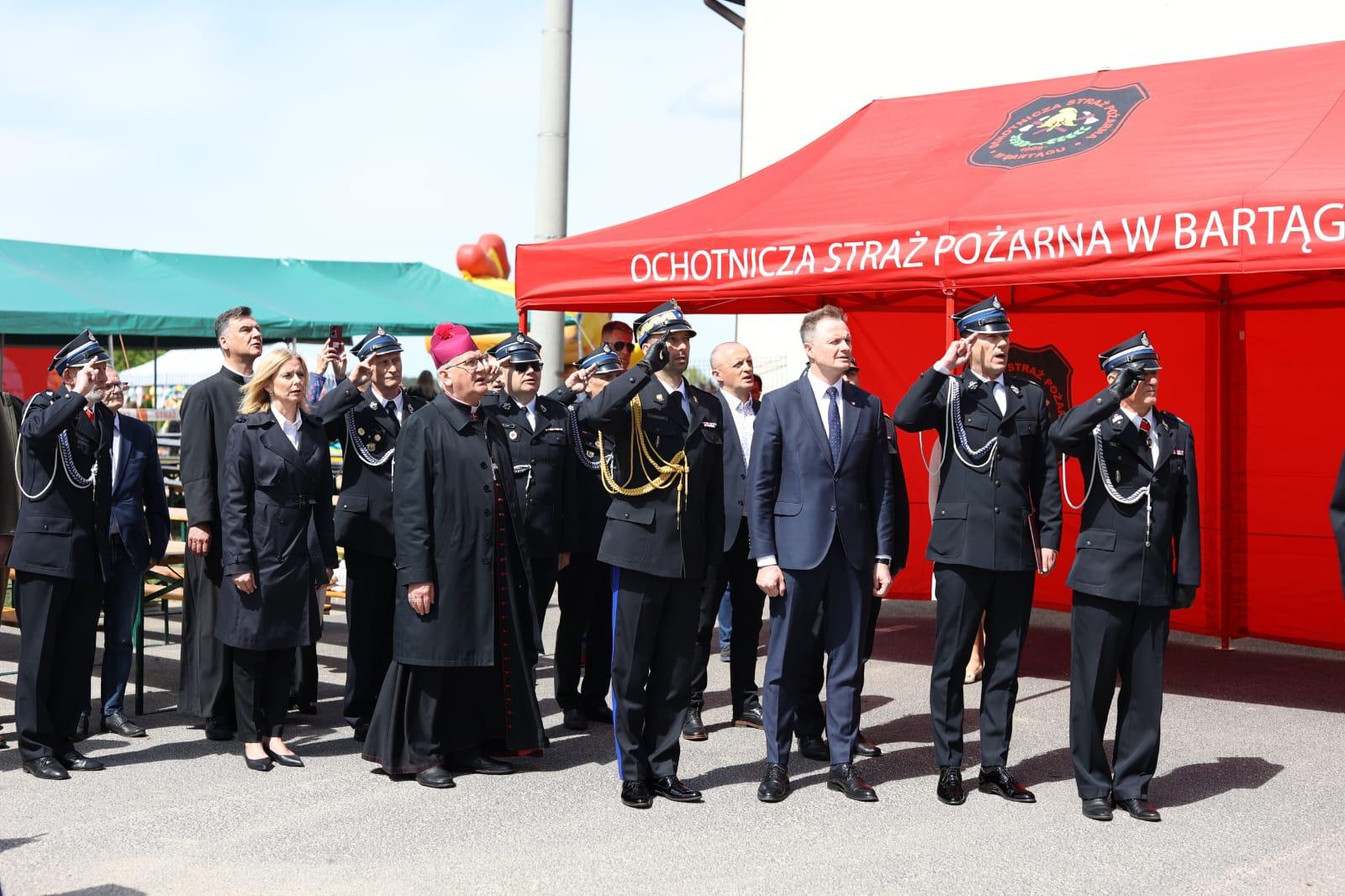 Przekazanie nowego sztandaru jednostce Ochotnicza Straż Pożarna w Bartągu oraz nowego pojazdu jednostce OSP Pluski