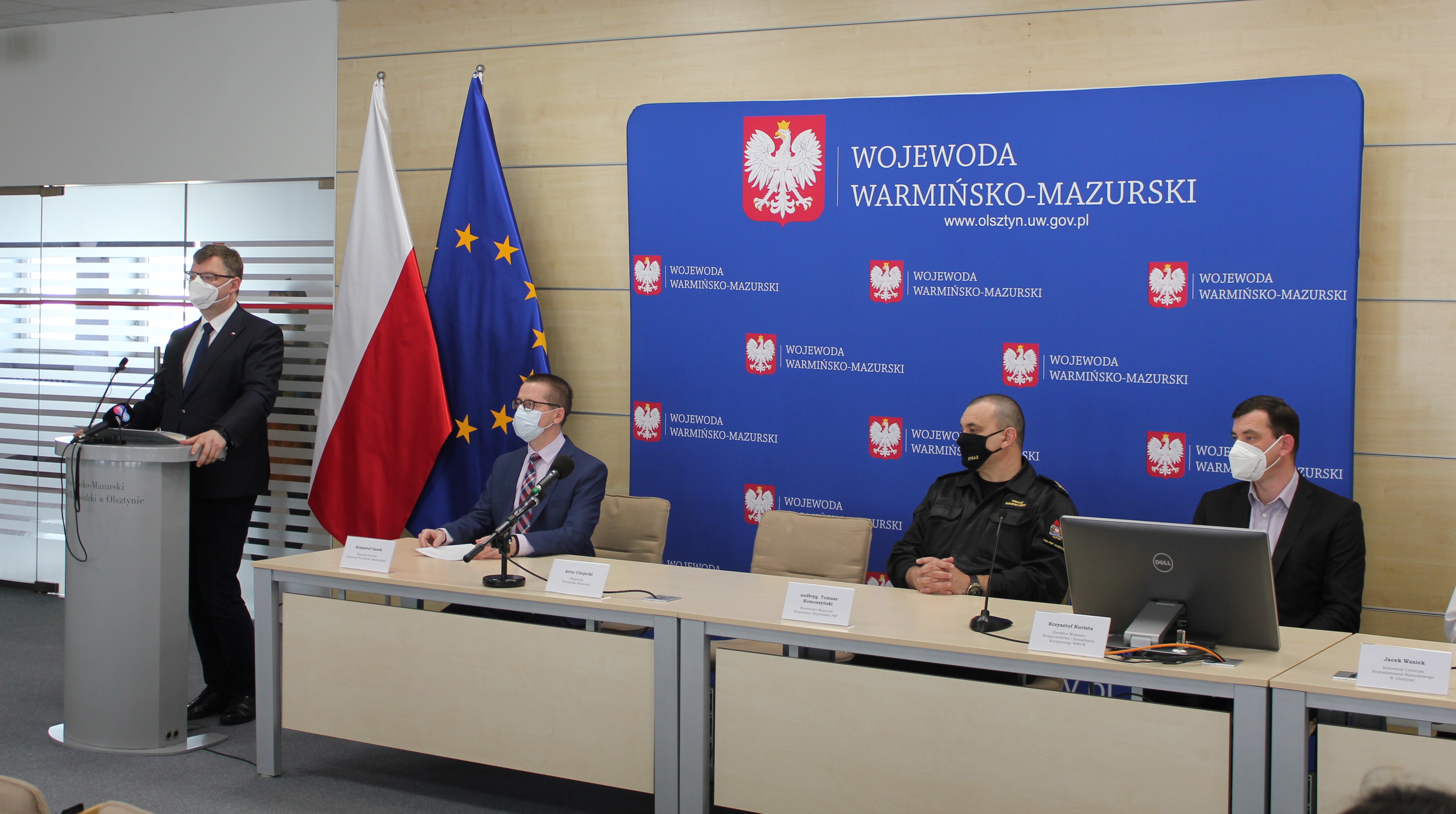 Dziś odbył się briefing prasowy dotyczący przełączenia obsługi numeru alarmowego 998 do CPR w Olsztynie, w którym udział wzięli min. Wojewoda Warmińsko-Mazurski Artur Chojecki, Warmińsko-Mazurski Komendant Wojewódzki PSP nadbryg. Tomasz Komoszyński oraz Dyrektor Wydział Bezpieczeństwa Zarządzania Kryzysowego W-MUW Krzysztof Kuriata.