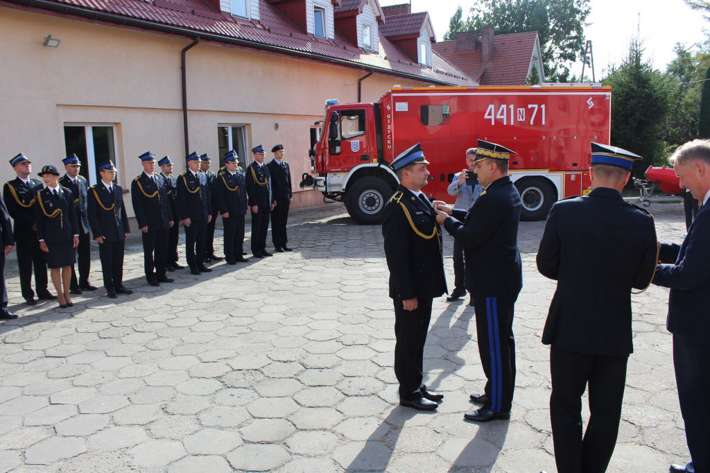 Po złożeniu meldunku Warmińsko-Mazurskiemu Komendantowi Wojewódzkiemu PSP - nadbryg. Tomaszowi Komoszyńskiemu, podniesiono flagę państwową oraz odegrano hymn. W trakcie uroczystości wręczono odznaczenia oraz awanse i wyróżnienia giżyckim strażakom, po czym bryg. Jacek Baczewski oraz mł. bryg. Tomasz Siemieniuk zameldowali Warmińsko-Mazurskiemu Komendantowi Wojewódzkiemu odpowiednio zdanie i przejęcie obowiązków Komendanta Powiatowego PSP w Giżycku.