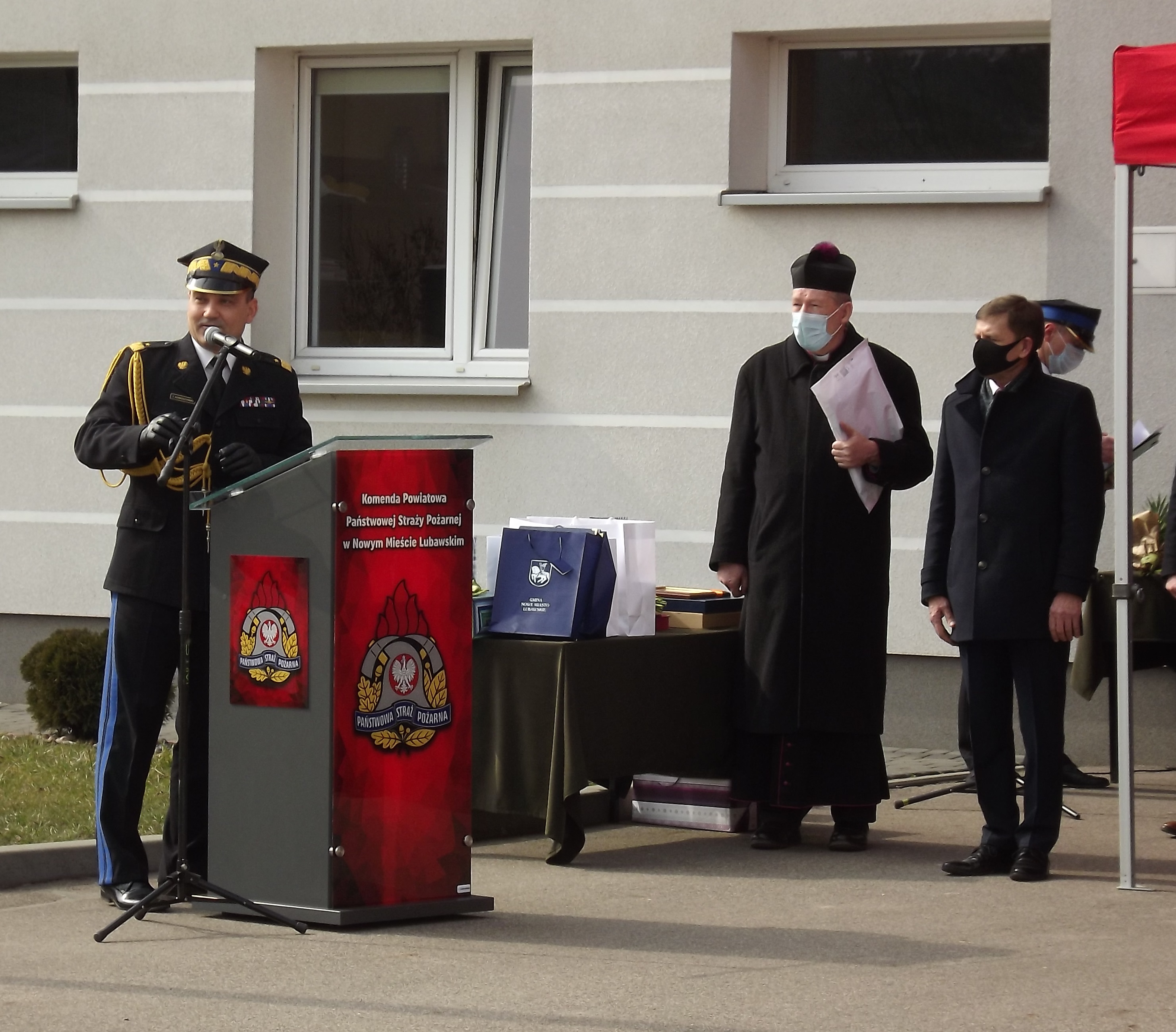 Po uroczystym przekazaniu obowiązków głos zabrali zaproszeni goście, którzy podziękowali bryg. Jackowi Audzie za wkład pracy w ochronę przeciwpożarową w powiecie nowomiejskim oraz złożyli życzenia i powitali przyjmującego obowiązki st. kpt. Krzysztofa Szałkowskiego.