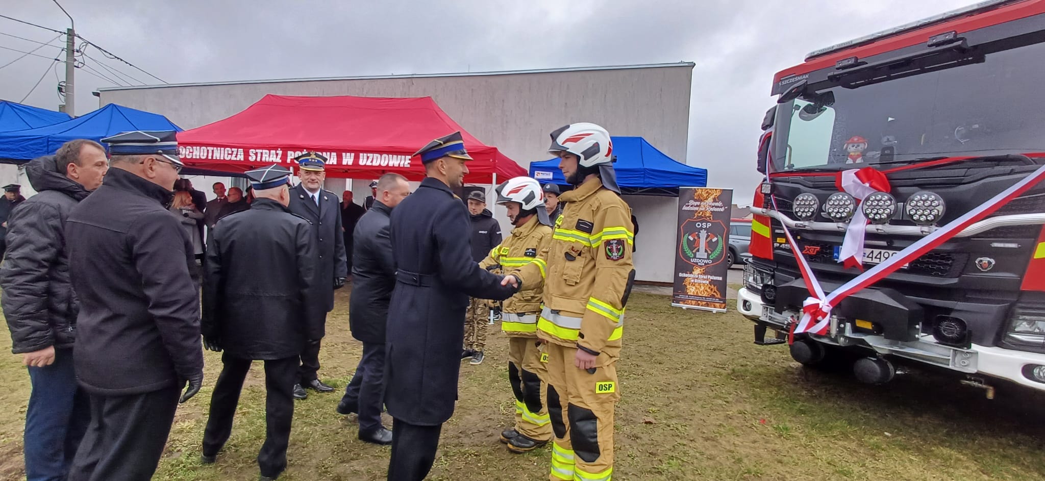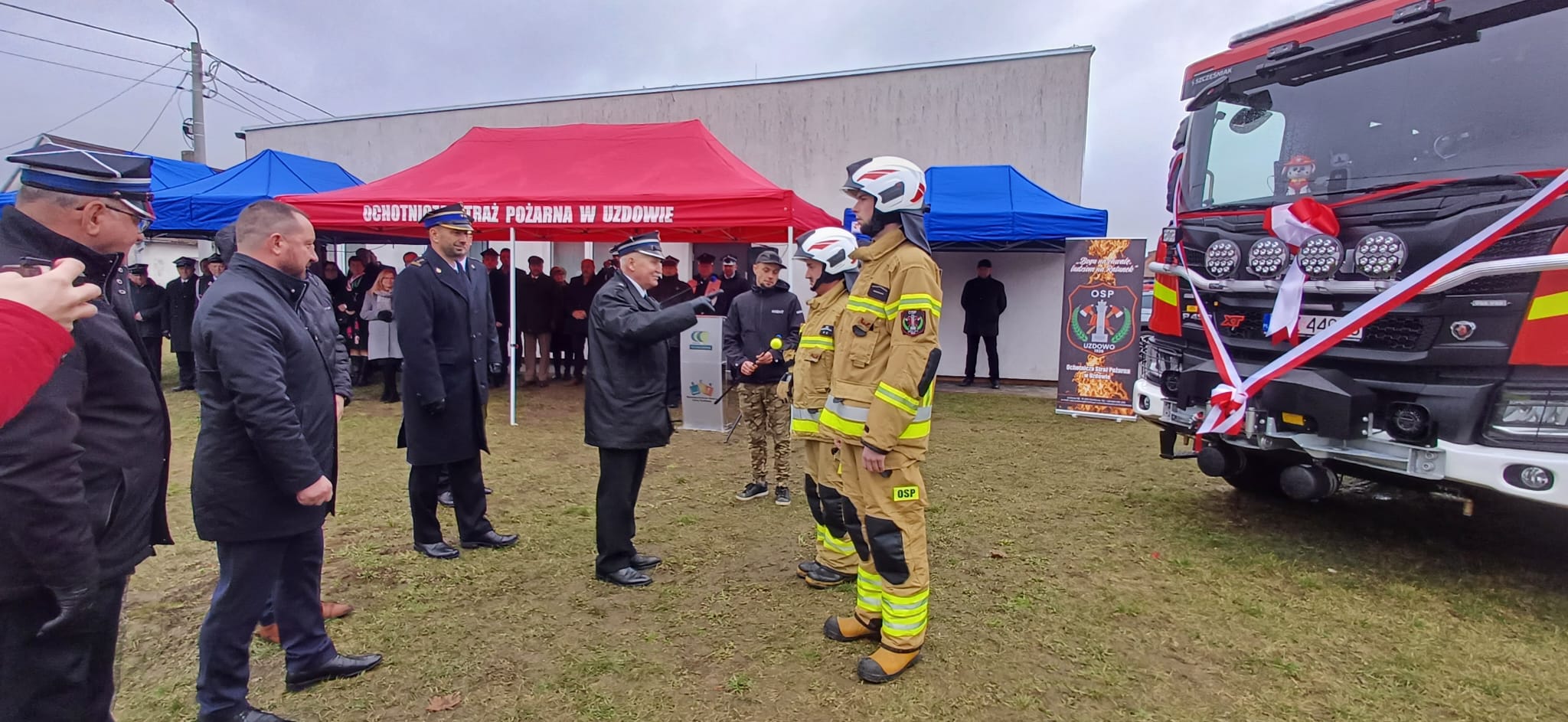 Uroczystość rozpoczęła się od złożenia meldunku o gotowości pododdziału do zbiórki, który przyjął dh Gustaw Marek Brzezin Prezes Zarządu Oddziału Wojewódzkiego ZOSP RP. Punktem kulminacyjnym było przekazanie przedstawicielom OSP Uzdowo aktu przekazania pojazdu, dokumentów i kluczyków do samochodu pożarniczego.