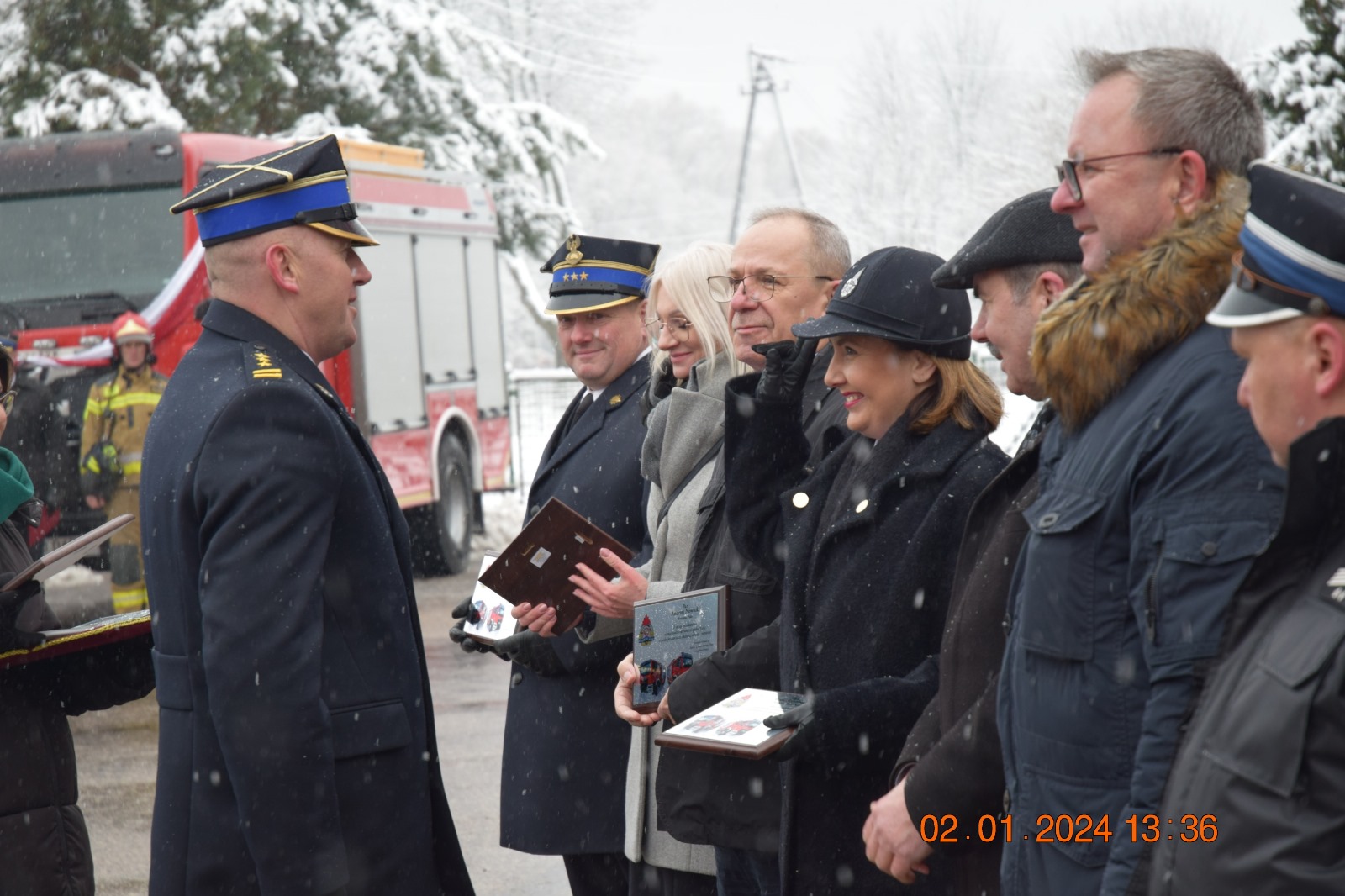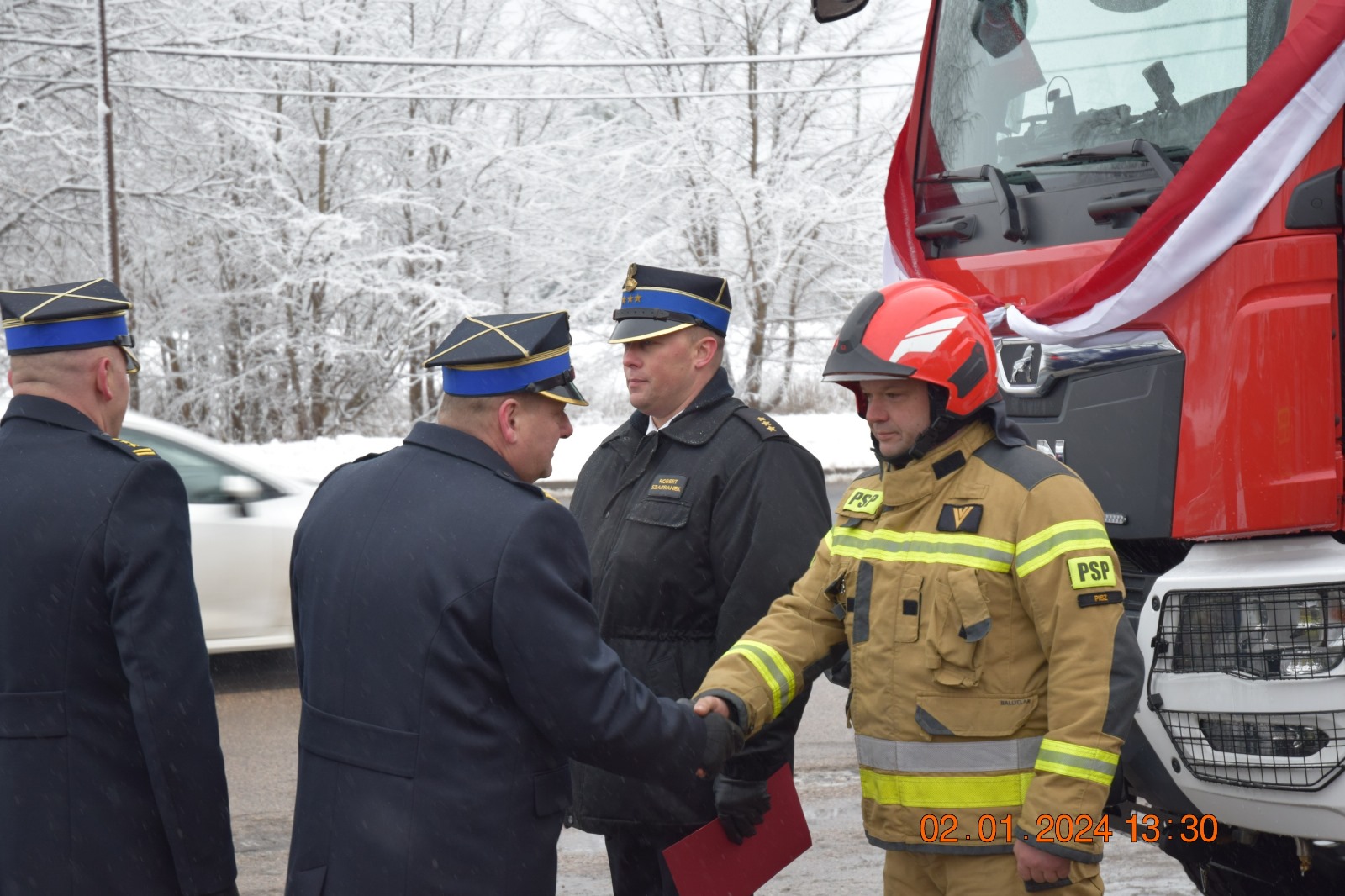 We wtorek 2 stycznia w Braniewie, Piszu i Ornecie odbyły się uroczyste zbiórki z okazji przekazania pojazdów i sprzętu pożarniczego. W Braniewie i Ornecie udział w uroczystościach wziął nadbryg. Tomasz Komoszyński Warmińsko-Mazurski Komendant Wojewódzki Państwowej Straży Pożarnej, a w Piszu st. bryg. Adam Jastrzębski Zastępca Warmińsko-Mazurskiego Komendanta Wojewódzkiego PSP. Zbiórki inaugurowały meldunki o gotowości pododdziałów do uroczystości, które odebrali Komendanci. Zgromadzonych na uroczystości w Braniewie przywitał st. bryg. Ireneusz Ścibiorek braniewski Komendant Powiatowy PSP. W Piszu przybyłych na uroczystość przywitał miejscowy Komendant Powiatowy PSP st. bryg. Paweł Pieńkosz, a w Ornecie zgromadzonych przywitał Burmistrz Ornety Ireneusz Popiel. Punktem kulminacyjnym uroczystości było przekazanie reprezentantom jednostek aktów przekazania, dokumentów i kluczyków do samochodów pożarniczych.