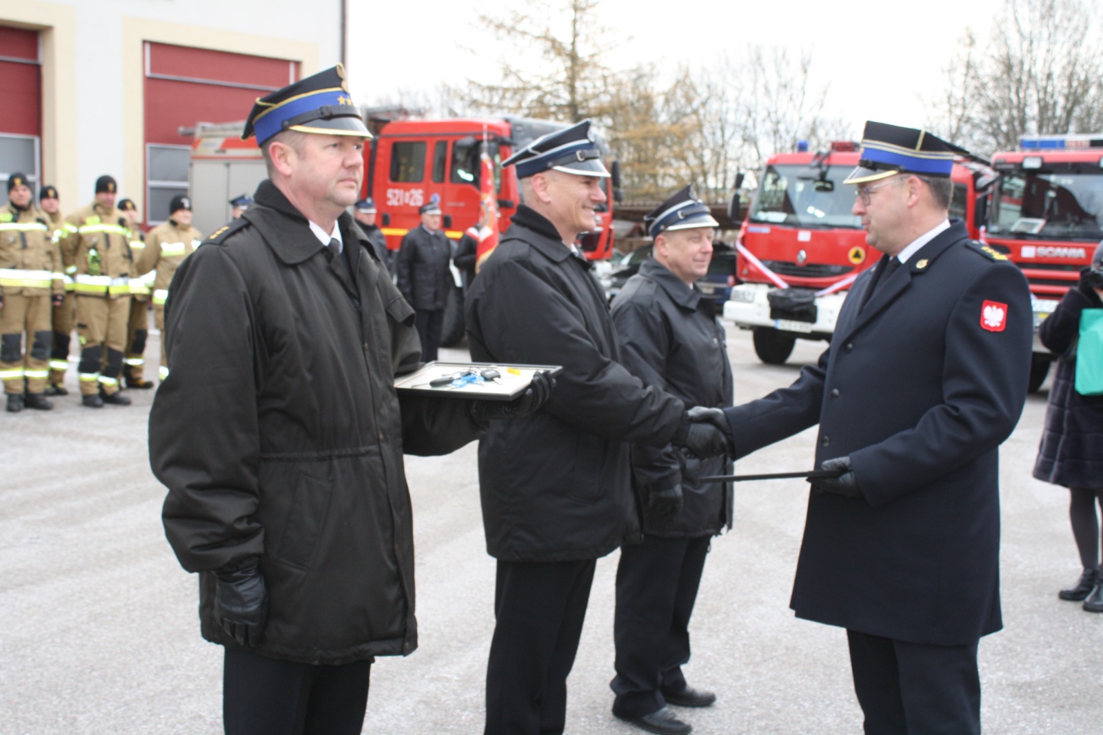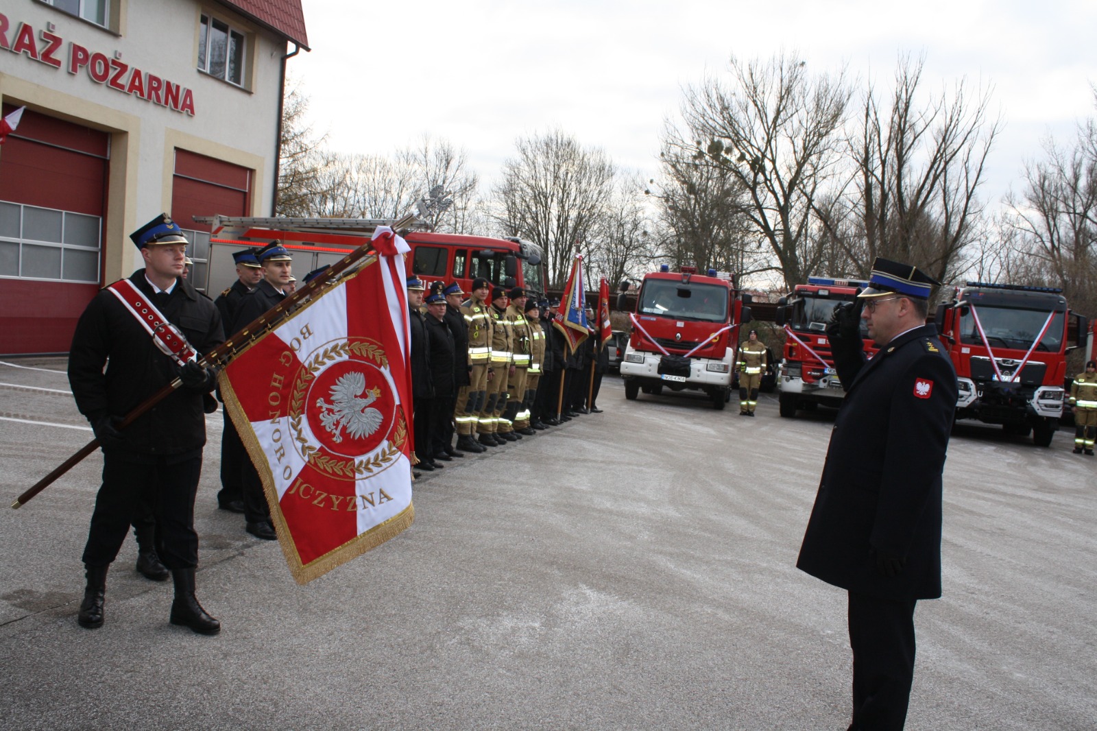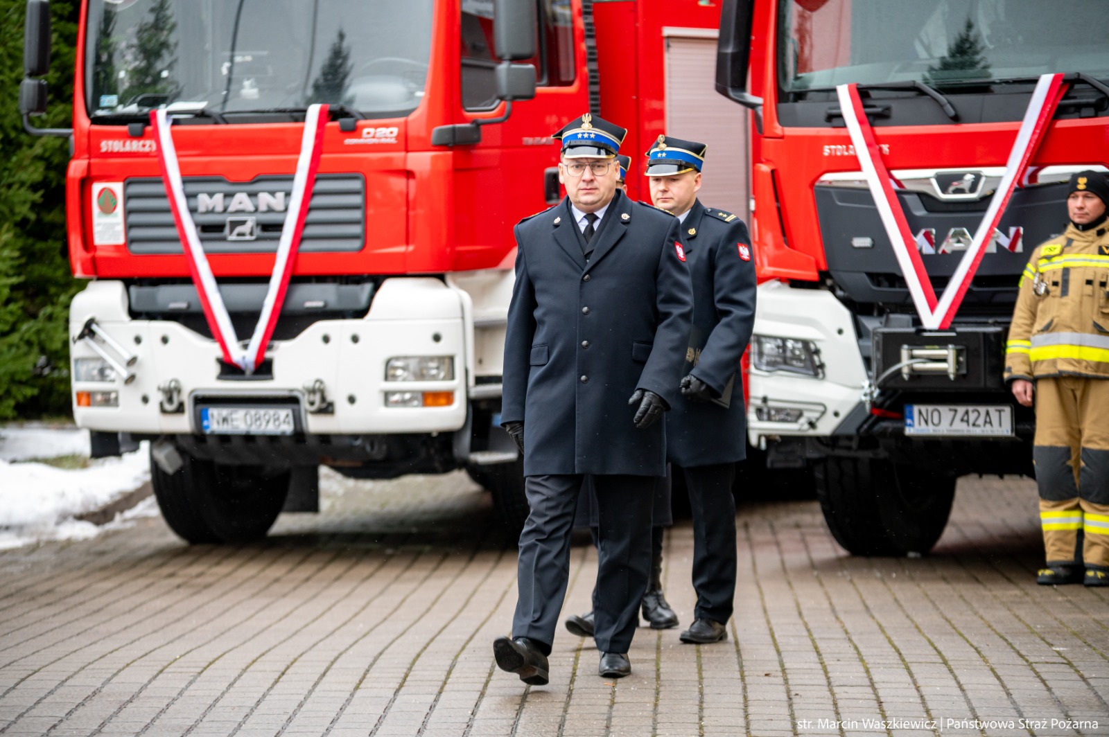 W miniony piątek 15 grudnia w Komendach Powiatowych Państwowej Straży Pożarnej w Olecku i Węgorzewie odbyły się uroczyste zbiórki z okazji oficjalnego przekazania pojazdów pożarniczych do miejscowych komend powiatowych PSP oraz jednostek Ochotniczych Straży Pożarnych z powiatów oleckiego i węgorzewskiego. W uroczystościach udział wziął st. bryg. Tomasz Ostrowski Zastępca Warmińsko-Mazurskiego Komendanta Wojewódzkiego PSP. Zbiórki rozpoczynały się od złożenia meldunków o gotowości pododdziałów do uroczystości, a przyjął je st. bryg. Tomasz Ostrowski. Przybyłych na uroczystości przywitali Komendanci Powiatowi PSP: w Olecku st. bryg. Sławomir Litwinko, a w Węgorzewie bryg. Kamil Pawlukanis. Punktem kulminacyjnym było przekazanie reprezentantom jednostek aktów przekazania, dokumentów i kluczyków do samochodów pożarniczych.