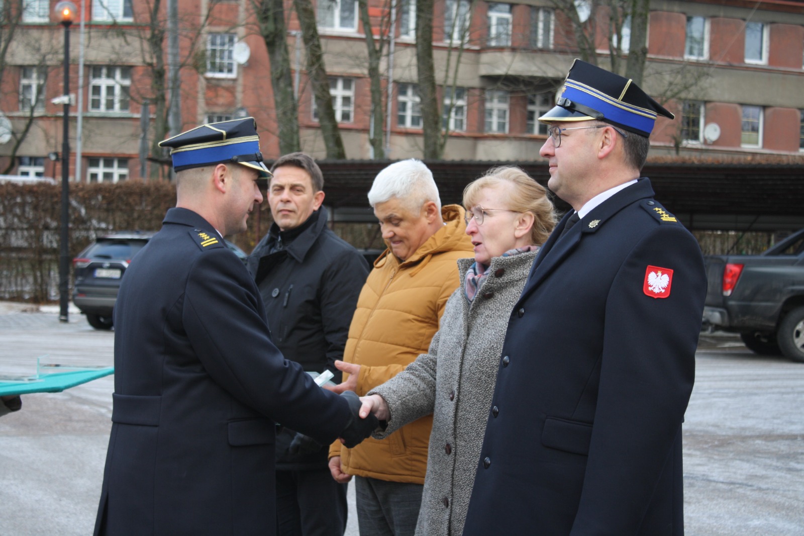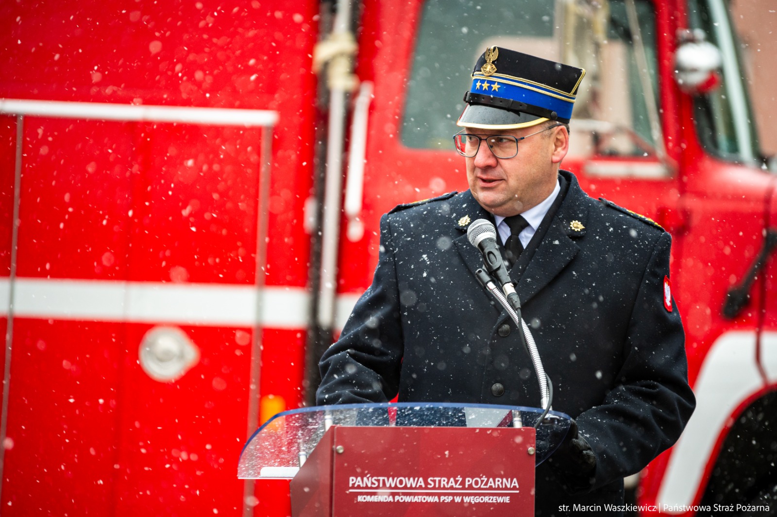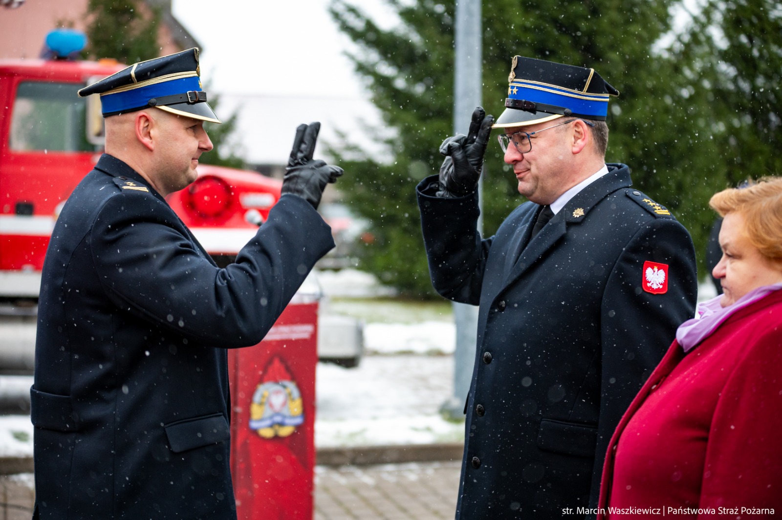 W miniony piątek 15 grudnia w Komendach Powiatowych Państwowej Straży Pożarnej w Olecku i Węgorzewie odbyły się uroczyste zbiórki z okazji oficjalnego przekazania pojazdów pożarniczych do miejscowych komend powiatowych PSP oraz jednostek Ochotniczych Straży Pożarnych z powiatów oleckiego i węgorzewskiego. W uroczystościach udział wziął st. bryg. Tomasz Ostrowski Zastępca Warmińsko-Mazurskiego Komendanta Wojewódzkiego PSP. Zbiórki rozpoczynały się od złożenia meldunków o gotowości pododdziałów do uroczystości, a przyjął je st. bryg. Tomasz Ostrowski. Przybyłych na uroczystości przywitali Komendanci Powiatowi PSP: w Olecku st. bryg. Sławomir Litwinko, a w Węgorzewie bryg. Kamil Pawlukanis. Punktem kulminacyjnym było przekazanie reprezentantom jednostek aktów przekazania, dokumentów i kluczyków do samochodów pożarniczych.