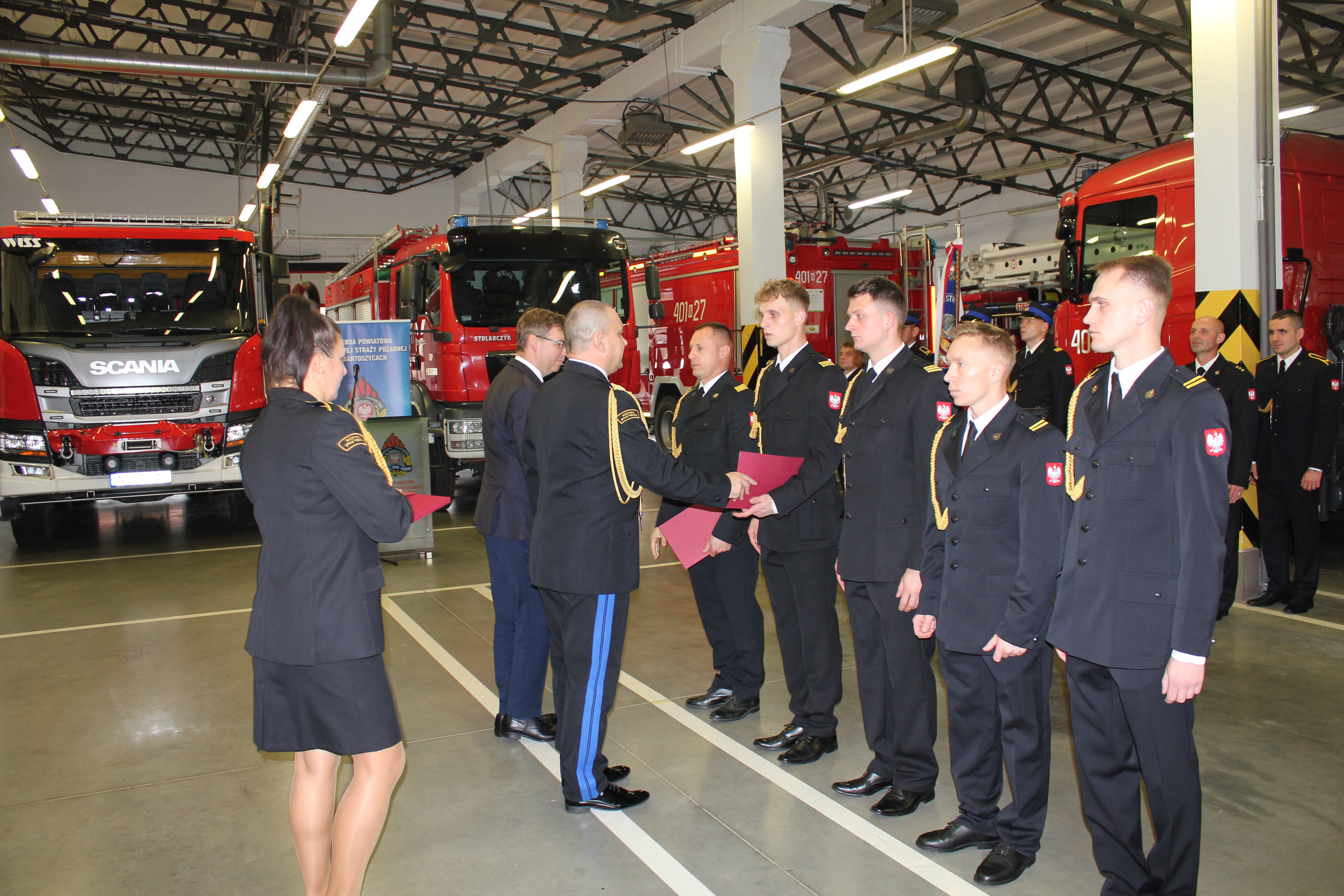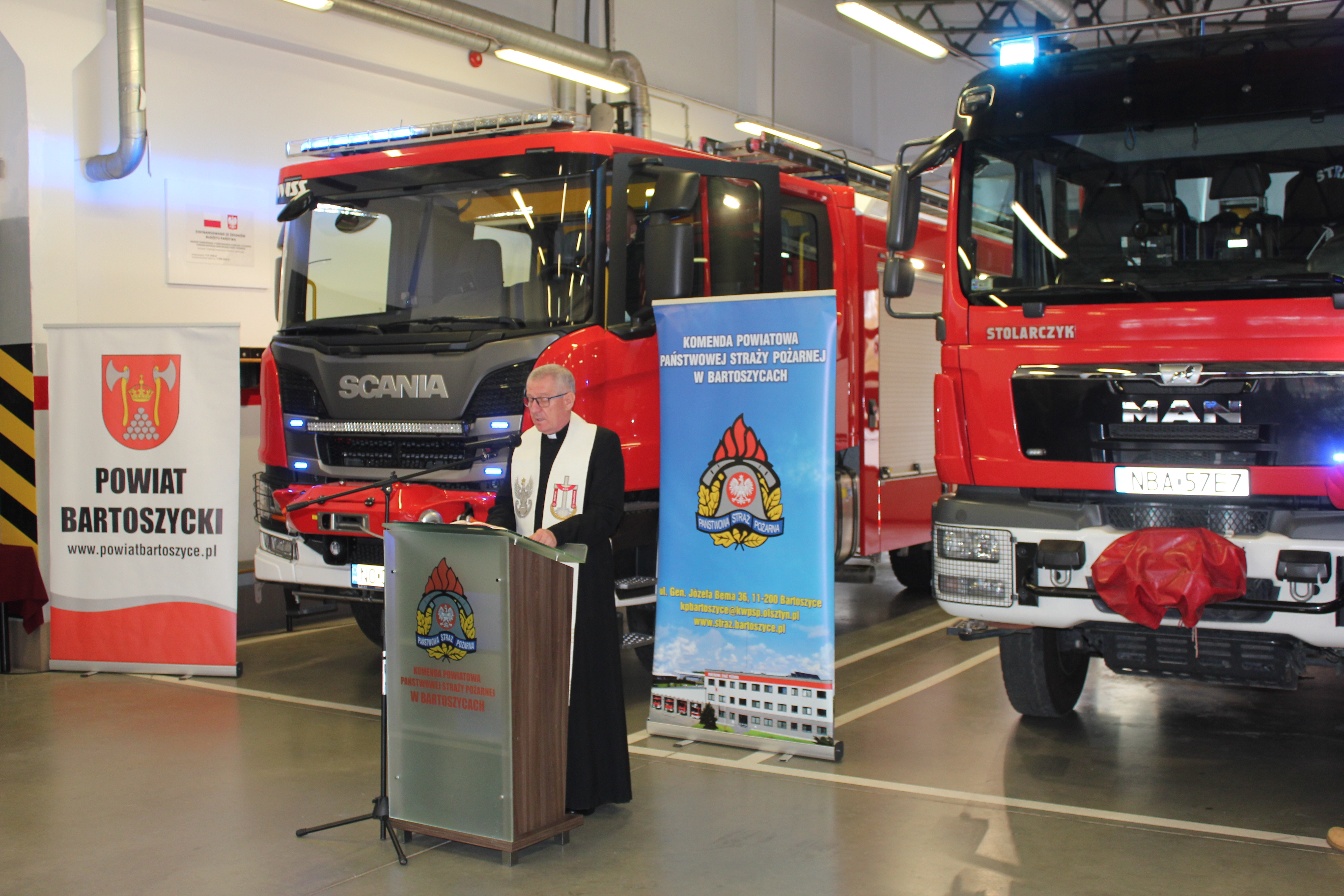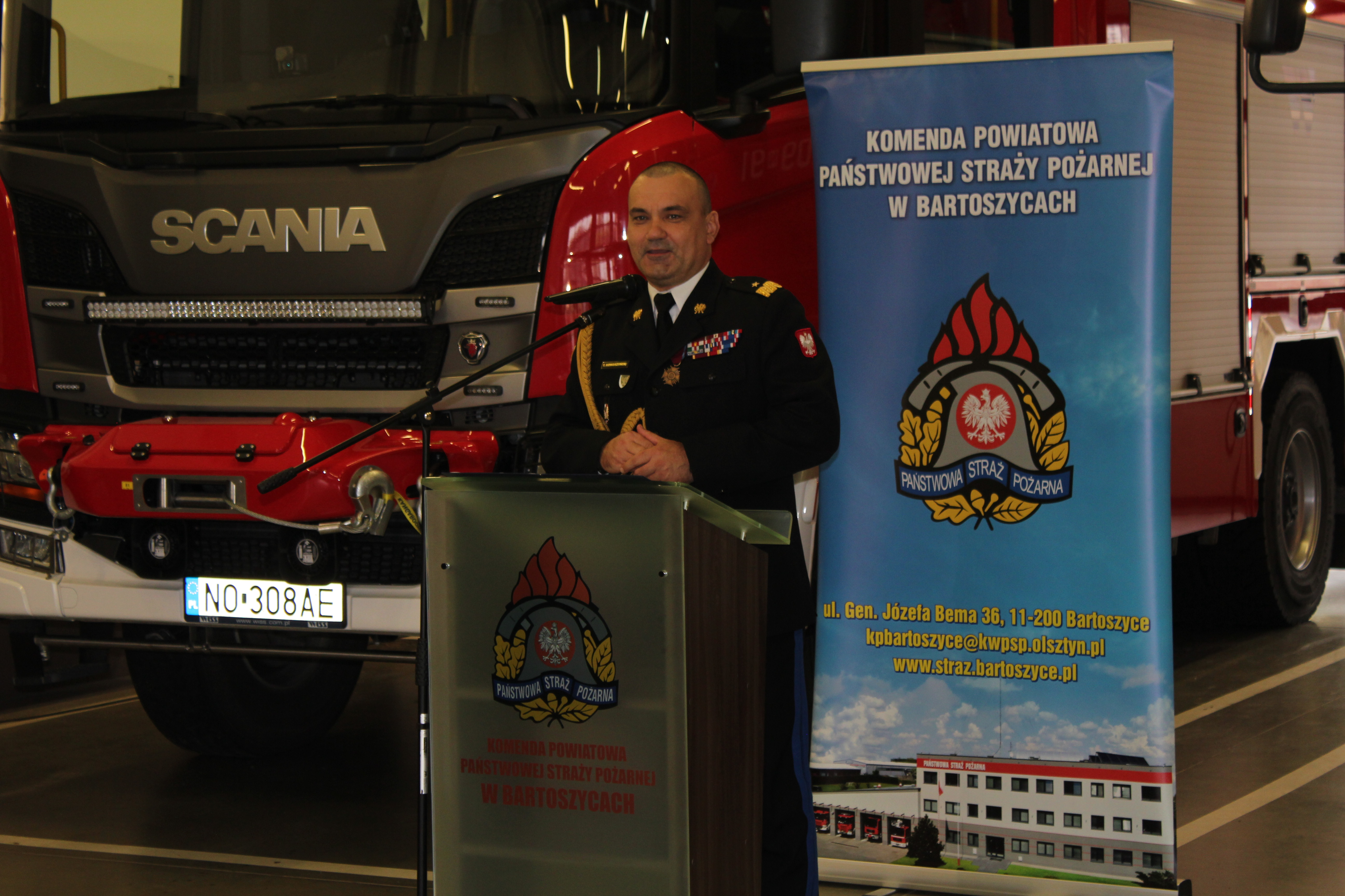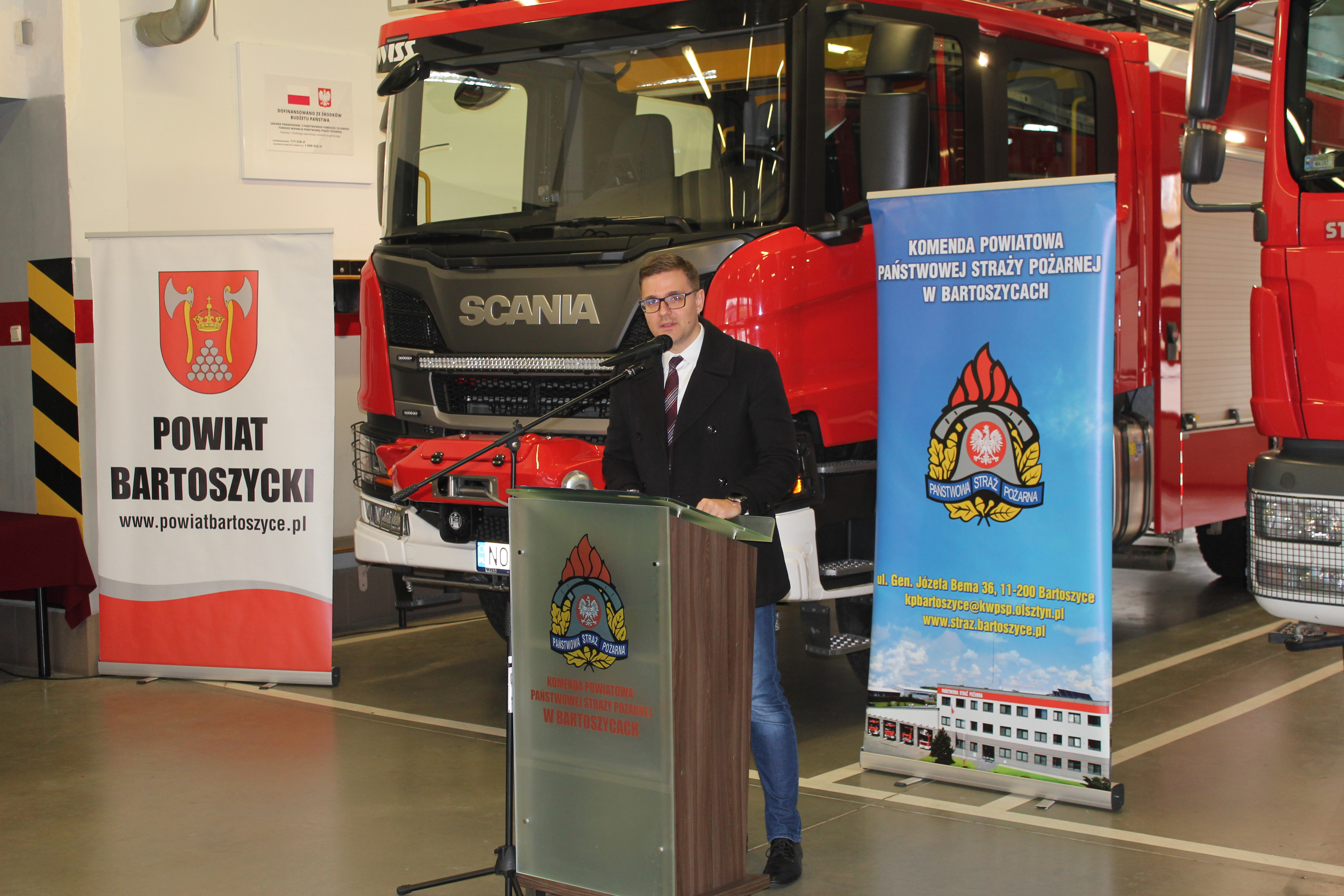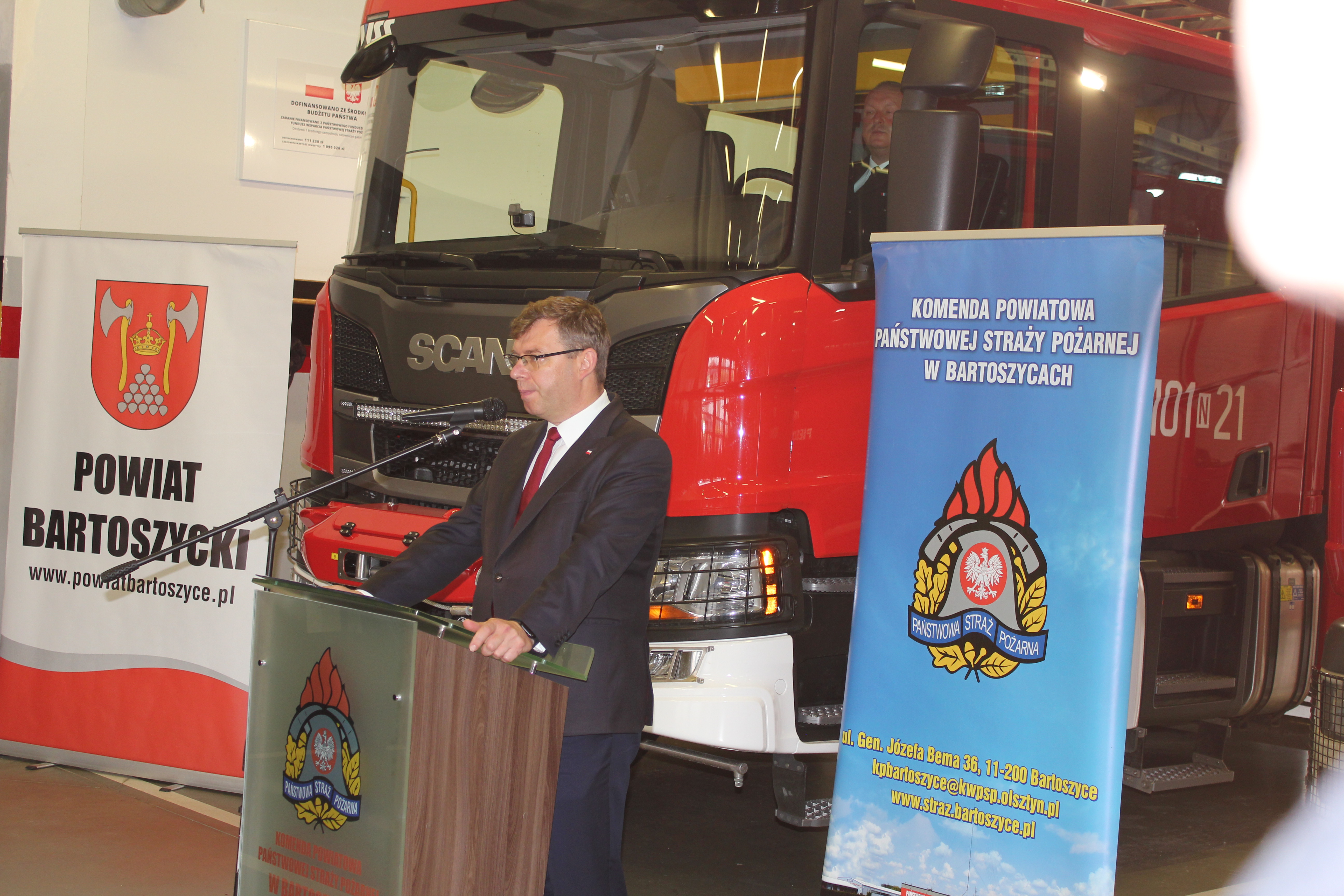 W bartoszyckiej Komendzie Powiatowej Państwowej Straży Pożarnej 7 listopada odbyła się uroczysta zbiórka z okazji oficjalnego przekazania średniego samochodu ratowniczo-gaśniczego i łodzi ratowniczej Komendzie Powiatowej PSP w Bartoszycach oraz średniego samochodu ratowniczo-gaśniczego Ochotniczej Straży Pożarnej Pieszkowo. Podczas uroczystości wręczono również dwunastu Młodzieżowym Drużynom Pożarniczym z powiatu bartoszyckiego i pięciu MDP z pow. lidzbarskiego promesy na zakup umundurowania i sprzętu na łączną kwotę 56 630,00 zł. Środki na ten cel przeznaczył Premier RP z rezerwy celowej państwa. Na uroczystości swą obecnością zaszczycili między innymi: Poseł na Sejm RP Robert Gontarz, Artur Chojecki Wojewoda Warmińsko-Mazurski, nadbryg. Tomasz Komoszyński Warmińsko-Mazurski Komendant Wojewódzki PSP wraz ze swoim zastępcą st. bryg. Tomaszem Ostrowskim, Dyrektor Biura Wojewódzkiego Funduszu Ochrony Środowiska i Gospodarki Wodnej Hanna Teodorowicz, Radny Sejmiku Województwa Warmińsko-Mazurskiego Marcin Kazimierczuk, Komendanci Powiatowi PSP z Bartoszyc i Lidzbarka Warmińskiego oraz samorządowcy na czele ze Starostą Bartoszyckim Janem Zbigniewem Nadolnym. Do bartoszyckiej Komendy Powiatowej PSP trafił fabrycznie nowy średni samochód ratowniczo-gaśniczy, którego zakup był możliwy dzięki finansowaniu rządowo-samorządowemu. Pojazd kosztował 1 090 026,00 złotych, z czego 528 788 zł. to środki z budżetu państwa, Narodowy FOŚiGW przekazał na ten cel 450 tysięcy złotych, a pozostałą część środków finansowych poprzez fundusz wsparcia Komendy Wojewódzkiej PSP w Olsztynie przeznaczyły samorządy powiatu bartoszyckiego. Do bartoszyckich strażaków trafiła także nowa łódź ratownicza, a strażacy z Ochotniczej Straży Pożarnej w Pieszkowie otrzymali z zasobów Warmińsko-Mazurskiego Komendanta Wojewódzkiego PSP średni samochód ratowniczo-gaśniczy o napędzie 4x4 z 2013 roku. Ponadto z okazji zbliżającego się Narodowego Święta Niepodległości Komendant Wojewódzki PSP awansował na wyższe stopnie służbowe w korpusie podoficerskim sześciu funkcjonariuszy z bartoszyckiej KP PSP, a także wyróżnił pięciu funkcjonariuszy nagrodami pieniężnymi.