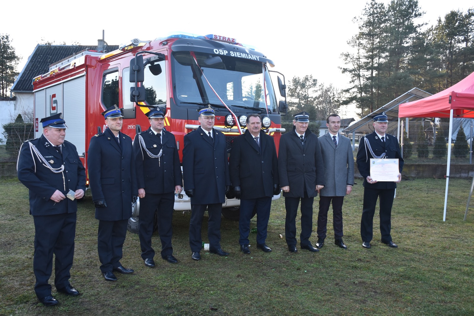 Do strażaków ochotników z Siemian oficjalnie trafiły dwa pojazdy pożarnicze: nowy średni samochód ratowniczo-gaśniczy na podwoziu Volvo oraz używany lekki samochód specjalny ratownictwa wodnego Nissan Navara przekazany z zasobów Warmińsko-Mazurskiego Komendanta Wojewódzkiego PSP, a pojazd ten dotychczas użytkowała Komenda Powiatowa PSP w Iławie.