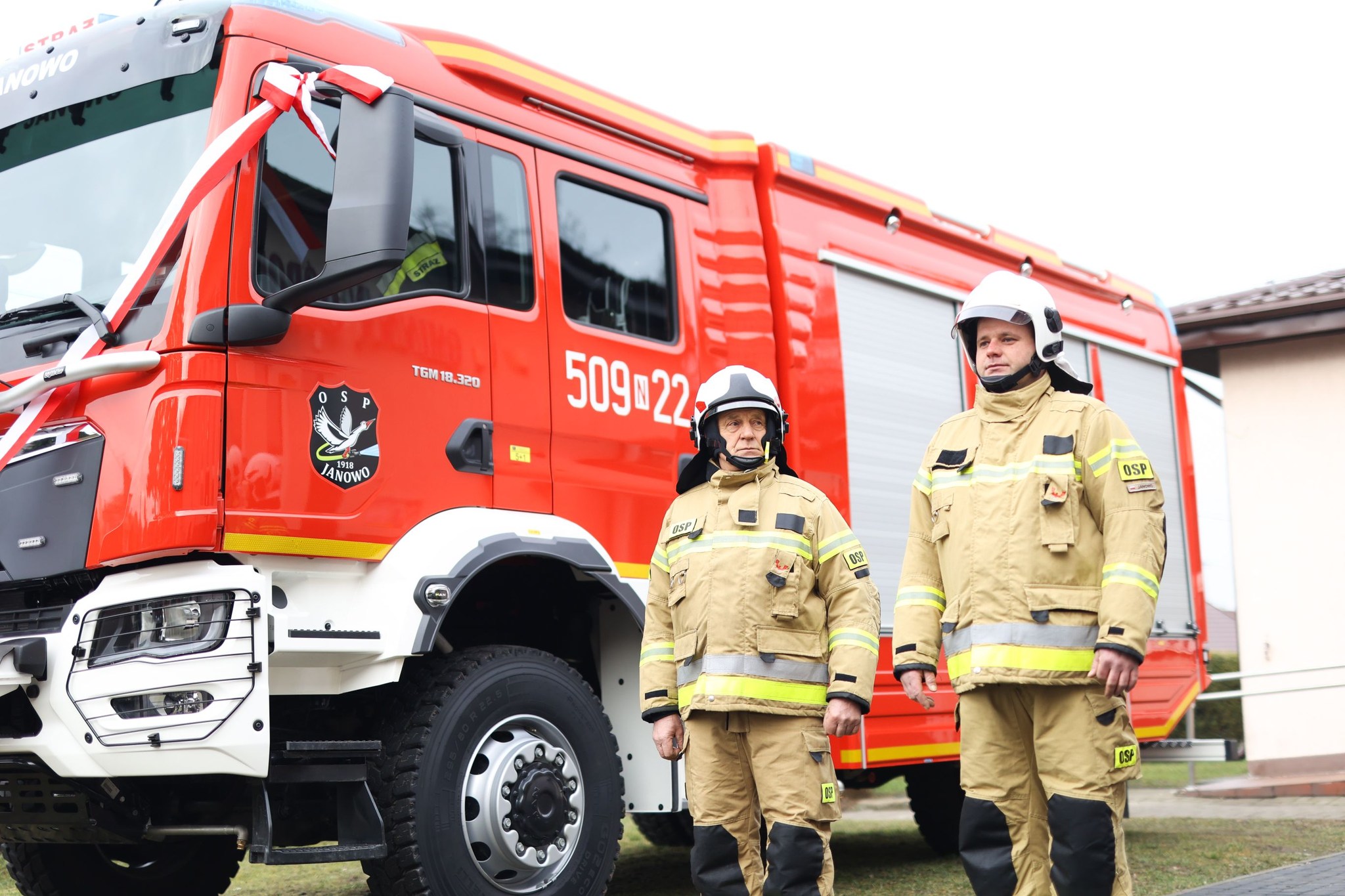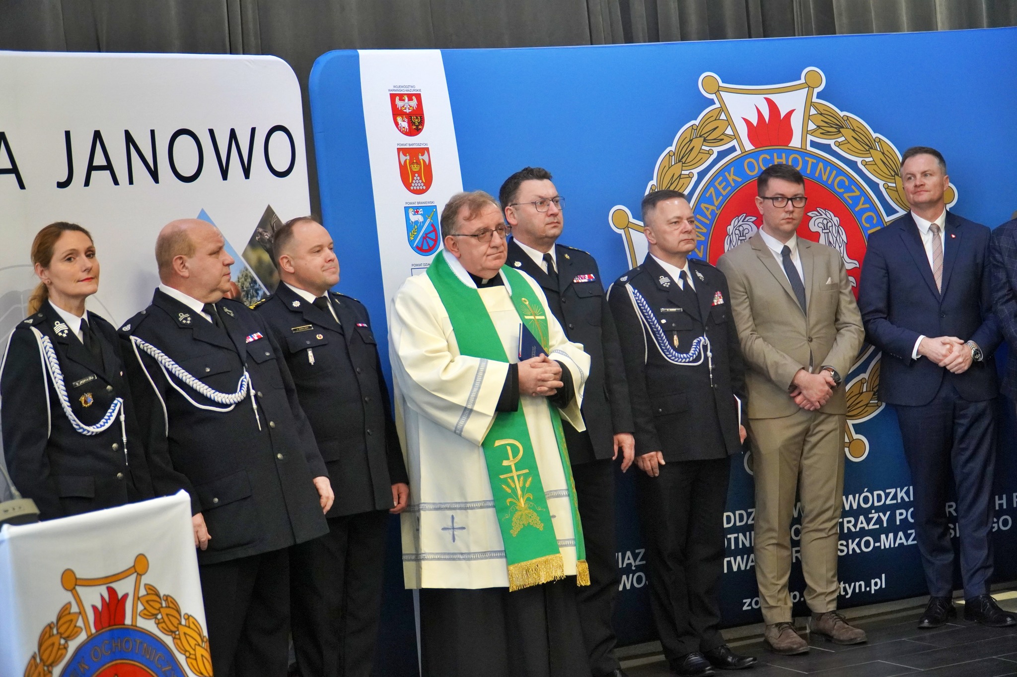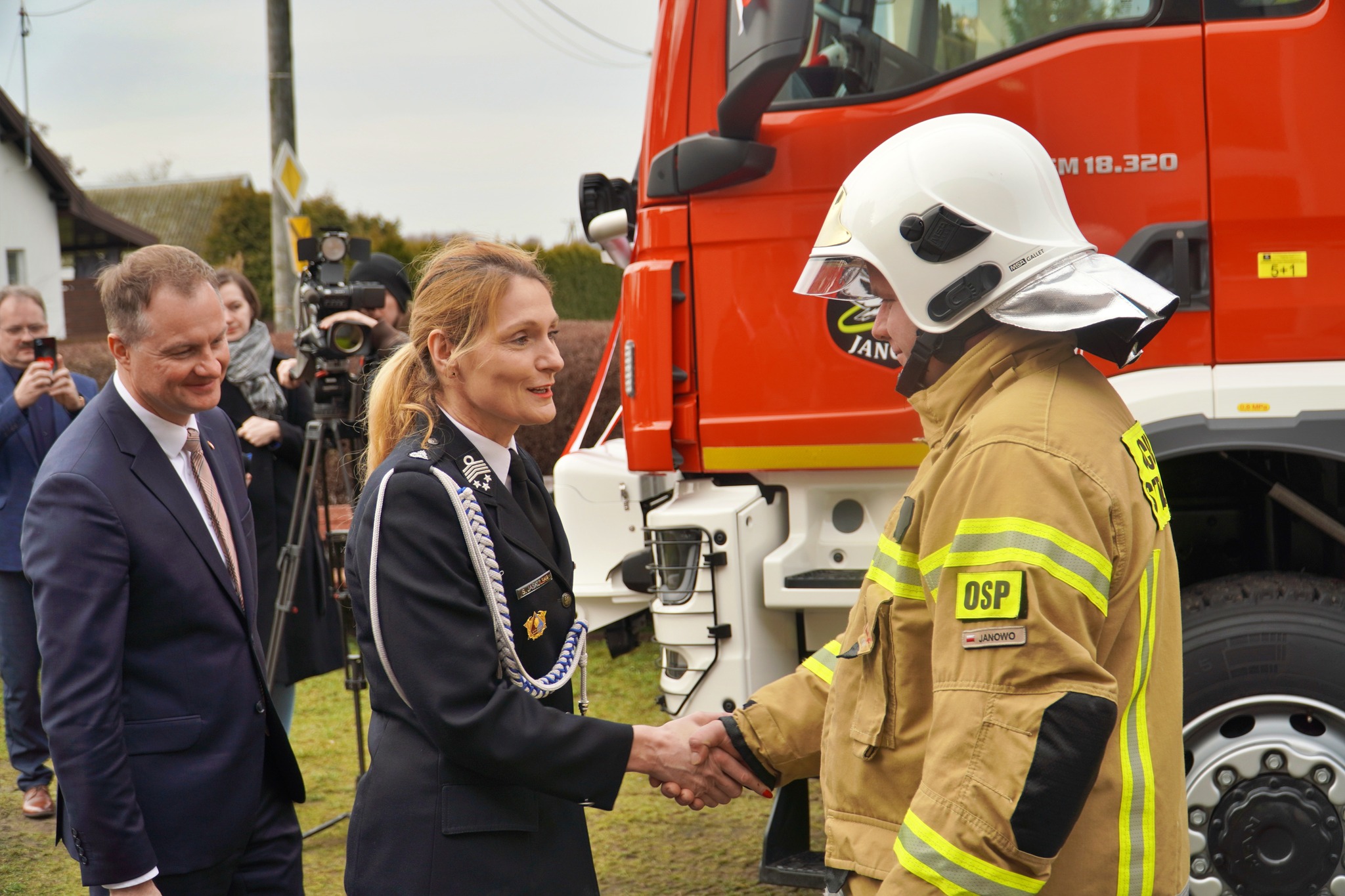W sobotę (25 lutego 2025) do Janowa na uroczystsze przekazanie nowego ciężkiego samochodu ratowniczo-gaśniczego przybyli między innymi Marcin Kuchciński Marszałek Województwa Warmińsko-Mazurskiego, Sylwia Jaskulska Wicemarszałek Województwa, Wiceprezes Zarządu Wojewódzkiego Związku OSP RP, Prezes Wojewódzkiego Funduszu Ochrony Środowiska i Gospodarki Wodnej w Olsztynie Bartosz Nowicki, Dyrektor Zarządu Wykonawczego Oddziału Wojewódzkiego Związku OSP RP w Olsztynie dh Maciej Jasiński, st. bryg. Jarosław Skalski Komendant Powiatowy PSP w Nidzicy.