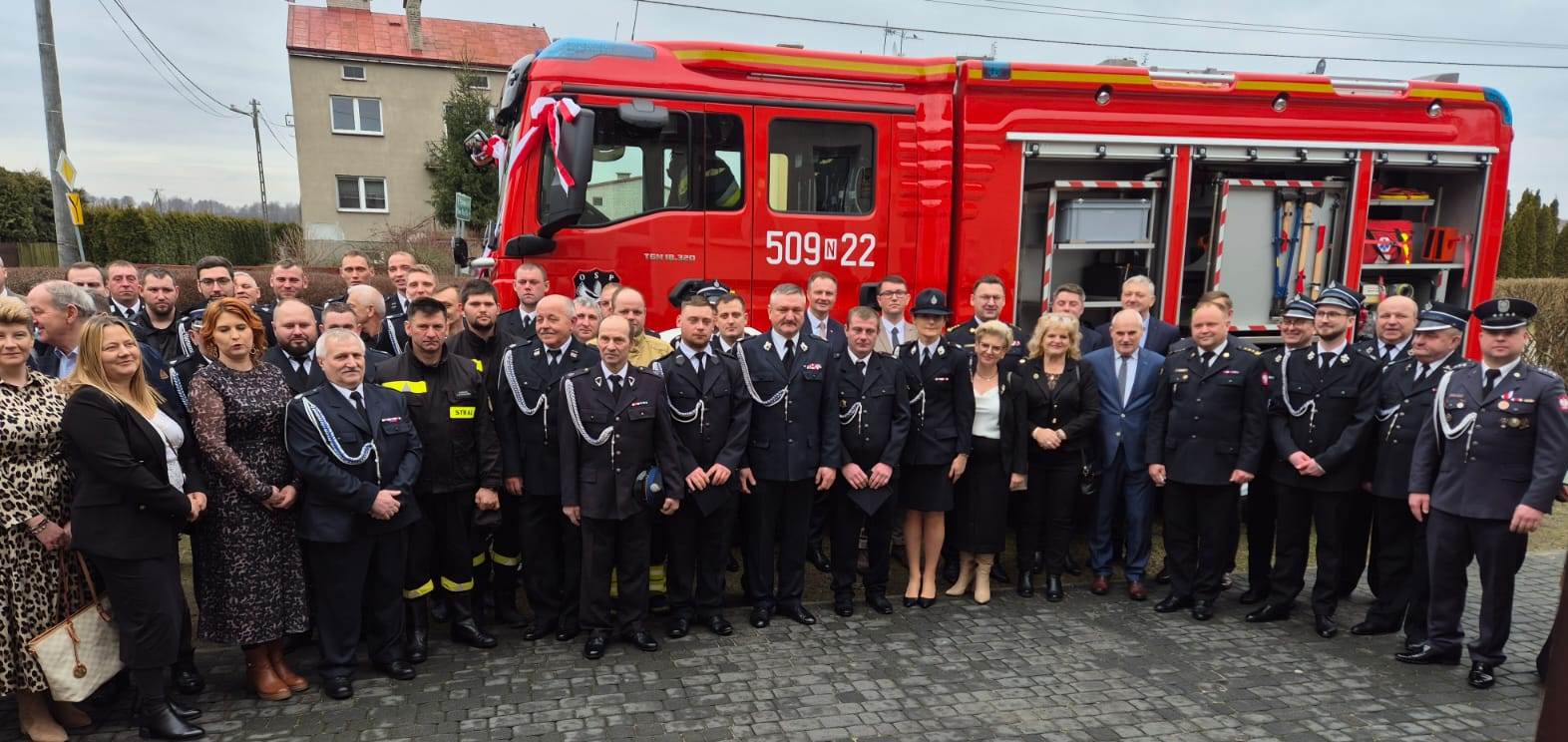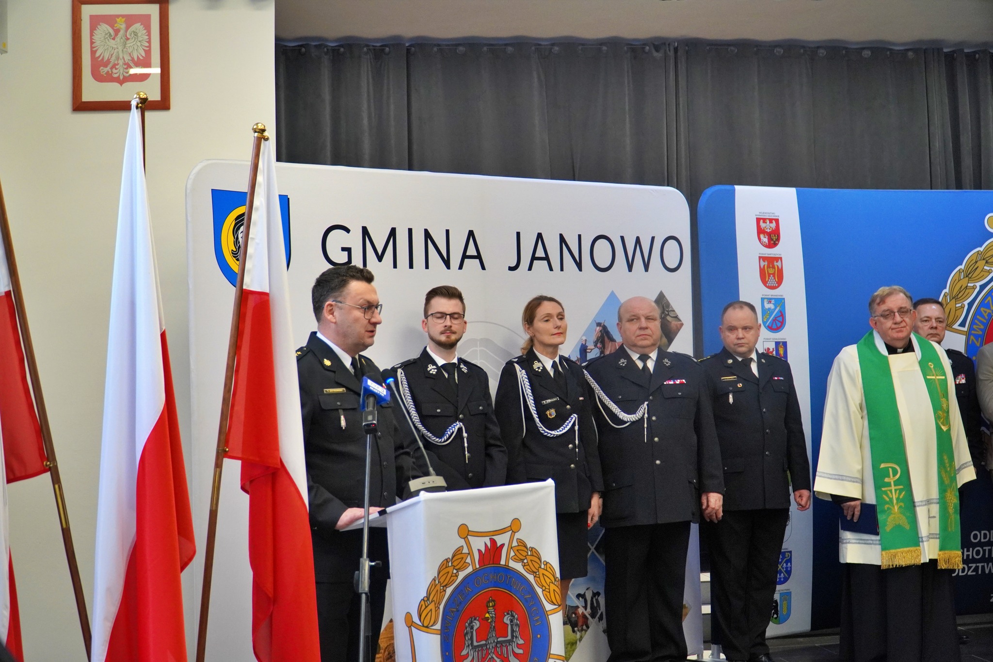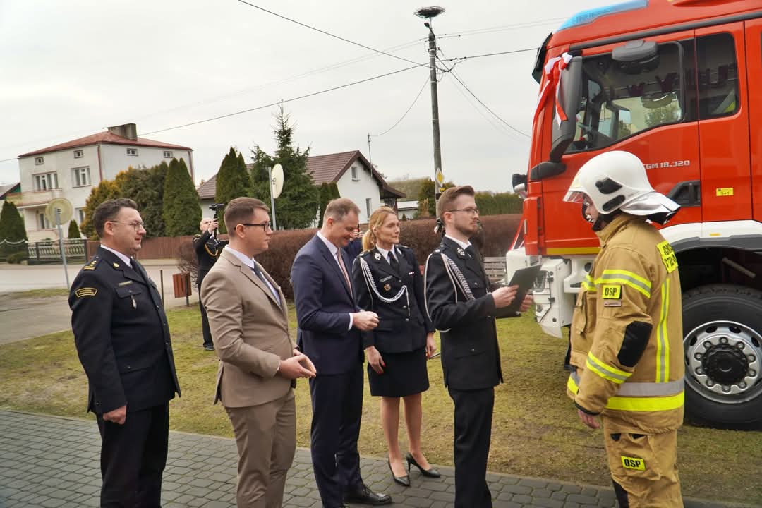 W sobotę (25 lutego 2025) do Janowa na uroczystsze przekazanie nowego ciężkiego samochodu ratowniczo-gaśniczego przybyli między innymi Marcin Kuchciński Marszałek Województwa Warmińsko-Mazurskiego, Sylwia Jaskulska Wicemarszałek Województwa, Wiceprezes Zarządu Wojewódzkiego Związku OSP RP, Prezes Wojewódzkiego Funduszu Ochrony Środowiska i Gospodarki Wodnej w Olsztynie Bartosz Nowicki, Dyrektor Zarządu Wykonawczego Oddziału Wojewódzkiego Związku OSP RP w Olsztynie dh Maciej Jasiński, st. bryg. Jarosław Skalski Komendant Powiatowy PSP w Nidzicy.
