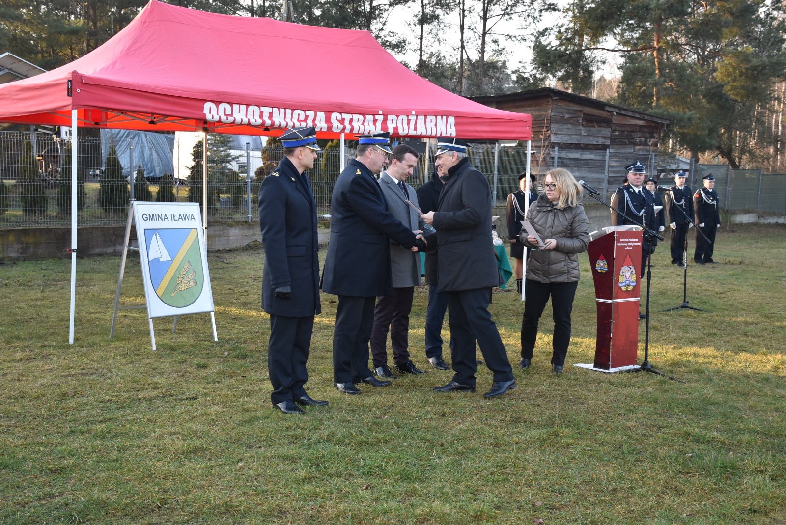 W Siemianach na uroczystość przybyli również Zbigniew Ziejewski Sekretarz Stanu w Ministerstwie Aktywów Państwowych, Mateusz Szauer Wicewojewoda Warmińsko-Mazurski, mł. bryg. Marcin Wiśniewski iławski Komendant Powiatowy PSP.