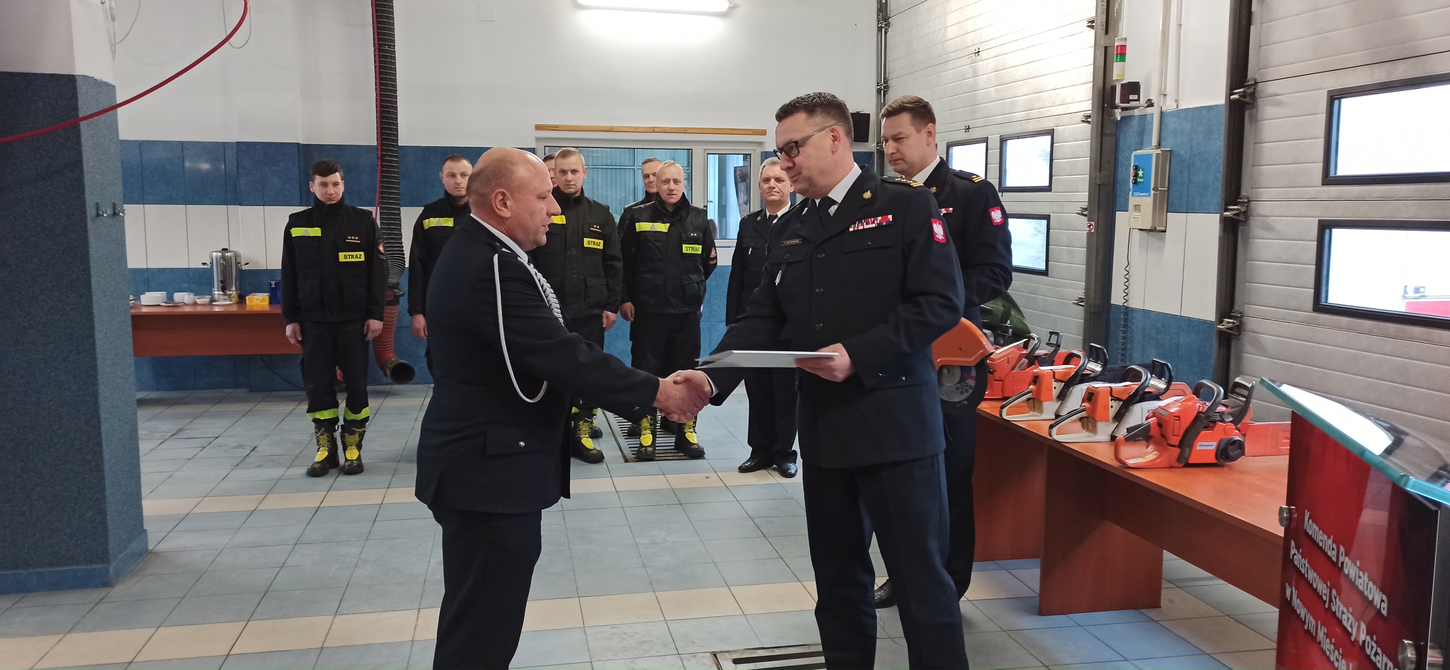 Tego dnia prezenty w postaci sprzętu pożarniczego trafiły także do kolejnych ośmiu jednostek OSP w powiecie nowomiejskim. Używany sprzęt w postaci pięciu pilarek do drewna, dwóch pił do betonu i stali oraz pneumatycznych sań lodowych pochodził z zasobów nowomiejskiej Komendy Powiatowej PSP. Uroczystego przekazania sprzętu jednostkom OSP dokonał Zastępca Komendanta Wojewódzkiego PSP wraz z Komendantem Powiatowym PSP.