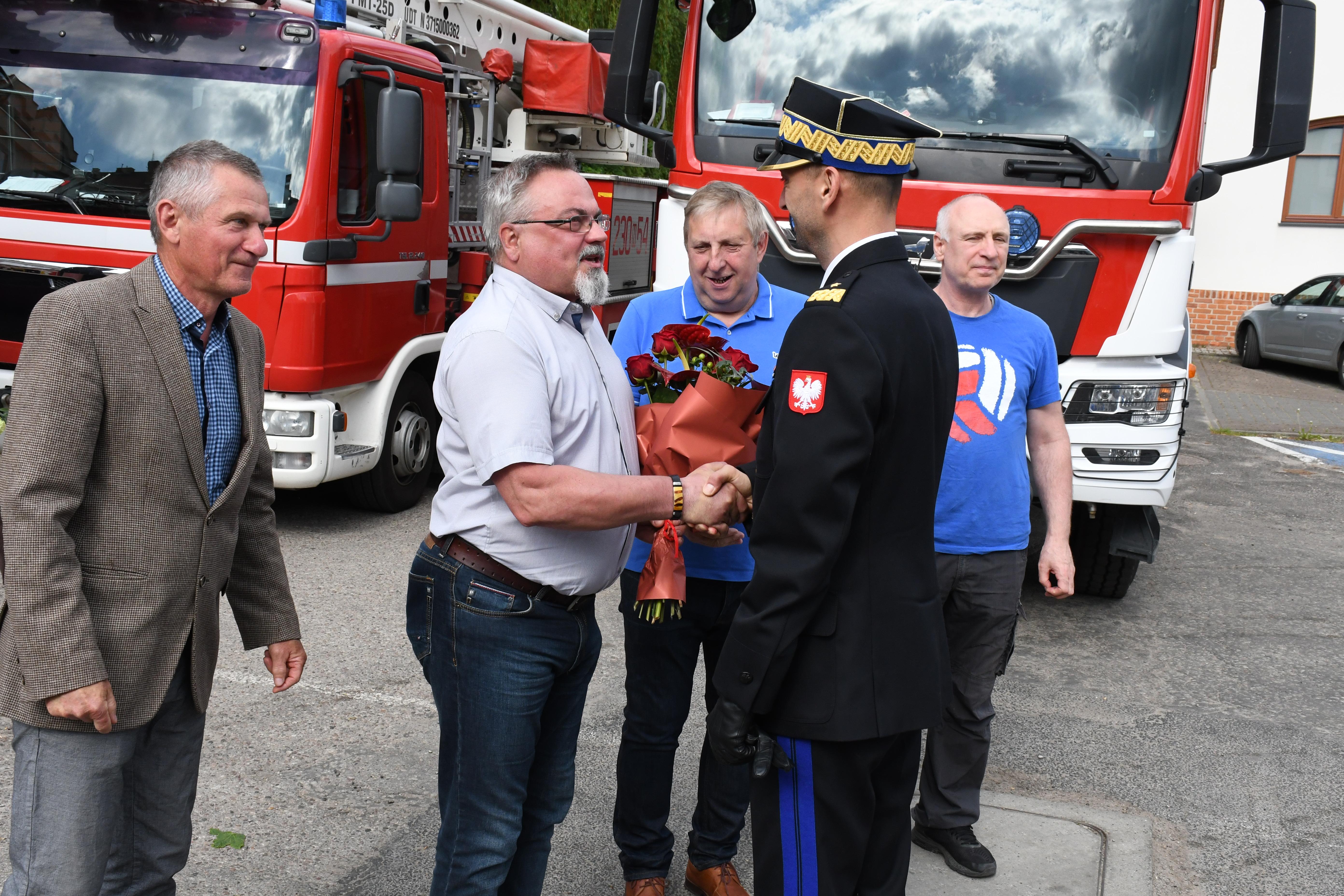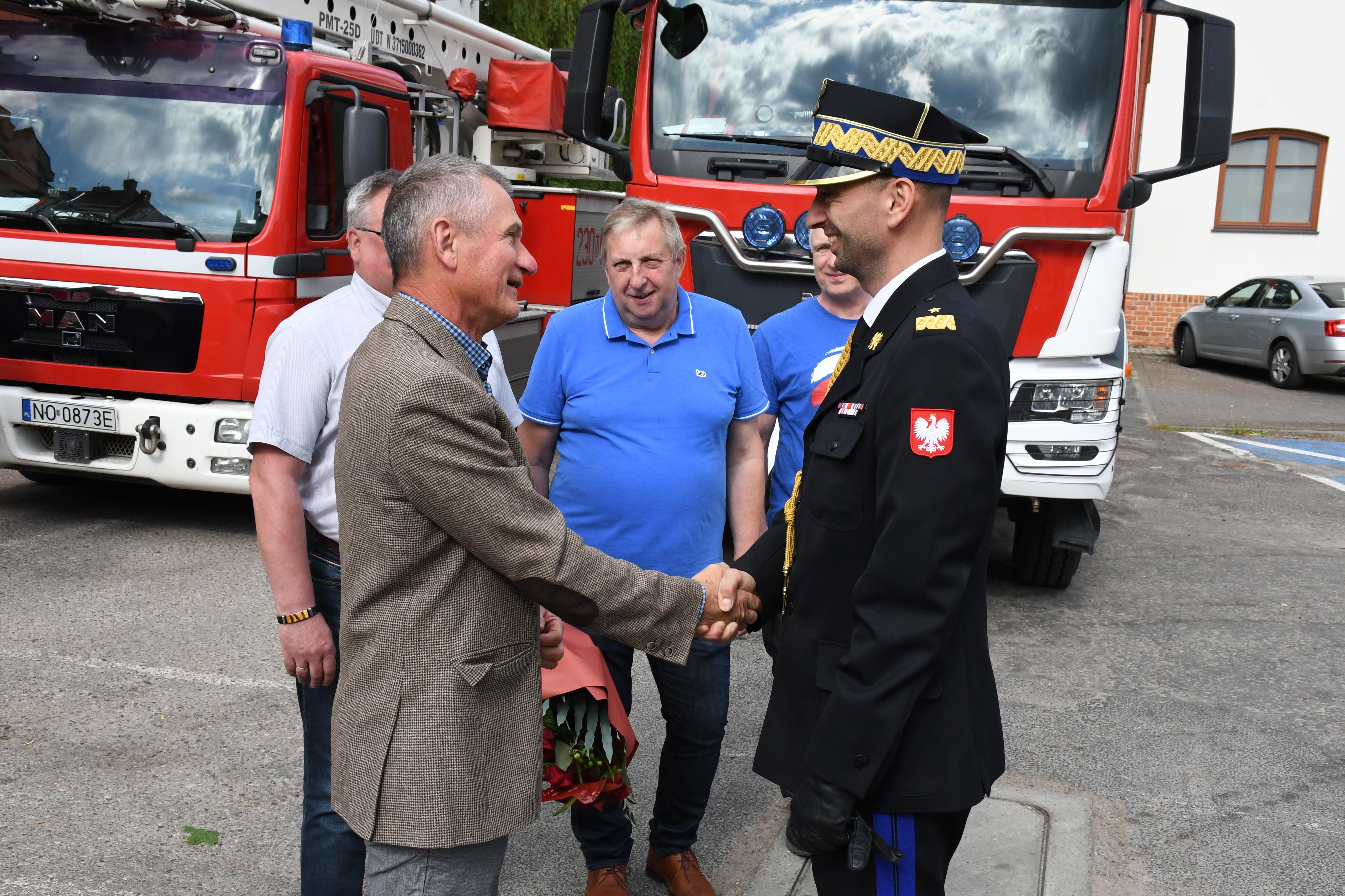 Pan nadbrygadier pierwsze kroki w służbie stawiał właśnie w Jednostce Ratowniczo-Gaśniczej 1 w Olsztynie, a kolejne w KM PSP w Olsztynie. W powitaniu nadbrygadiera brali udział członkowie Prezydium Zarządu Wojewódzkiego Związku Emerytów i Rencistów Pożarnictwa RP.