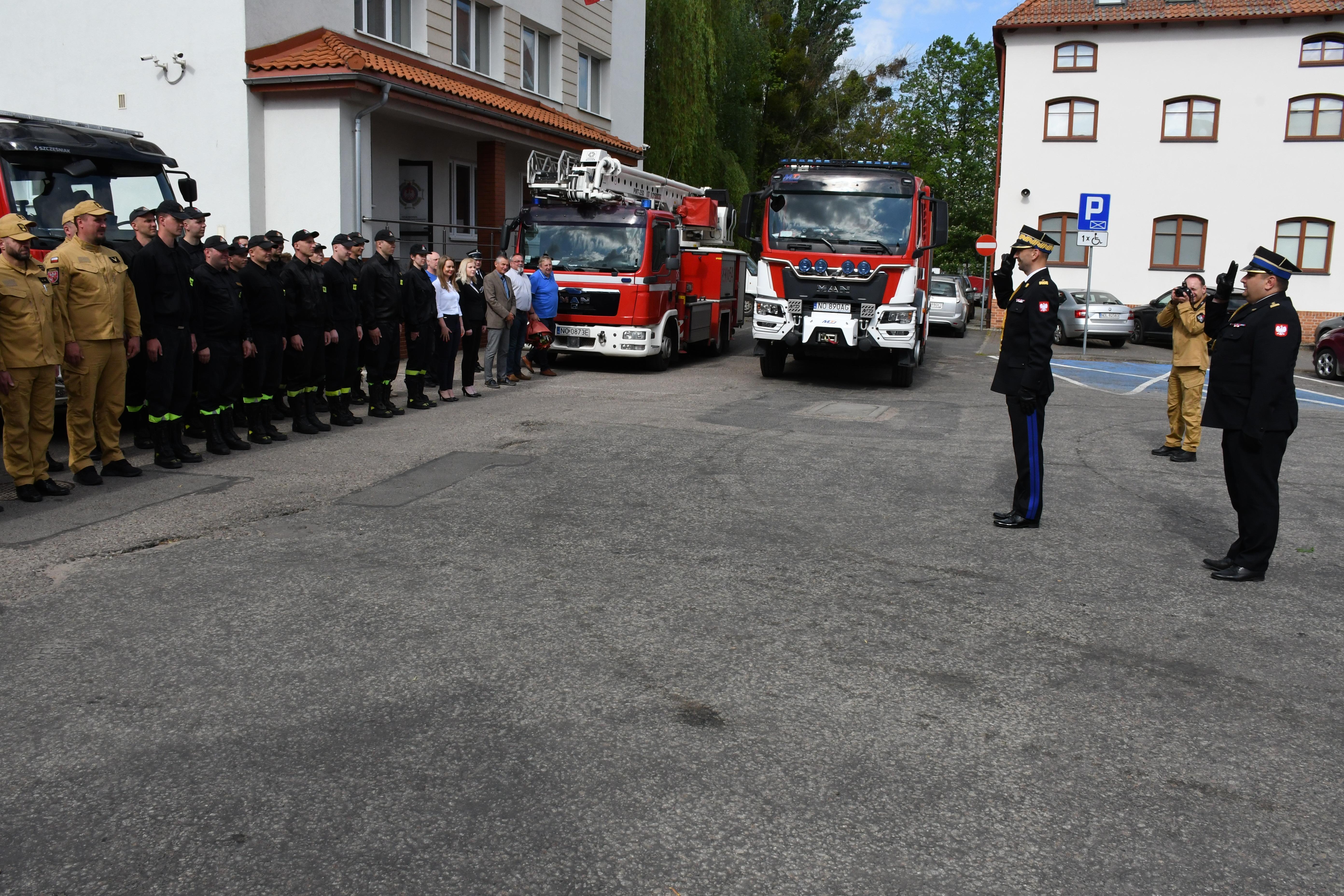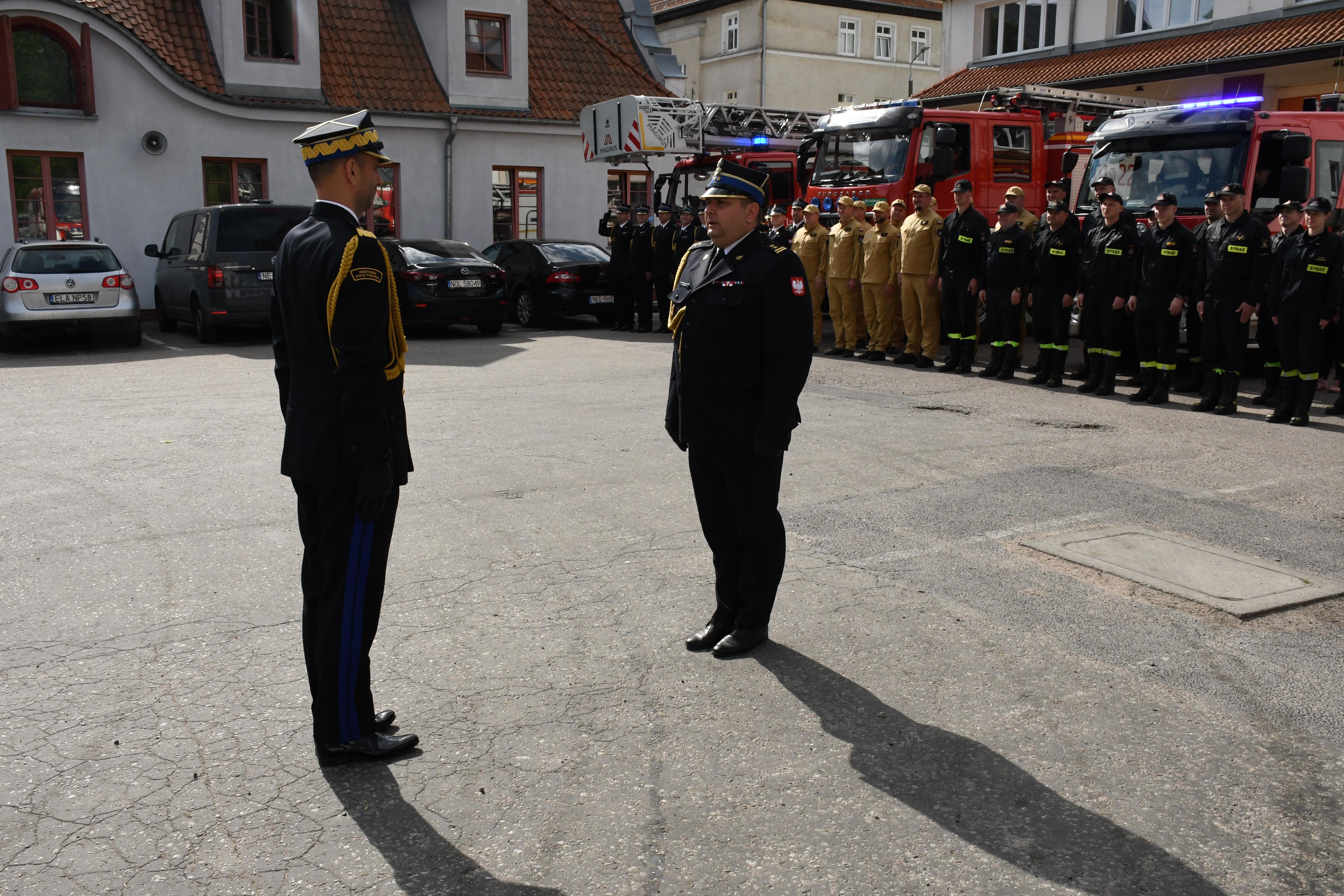 Tego dnia odbyła się również zbiórka na placu apelowym Komendy Miejskiej PSP w Olsztynie, na której bryg. Łukasz Jasiński Komendant Miejski PSP w Olsztynie wraz z załogą przywitał nowo mianowanego Generała. Do gratulacji i powitania przyłączyli się również w imieniu Zarządu Wojewódzkiego ZOSP RP dh Maciej Jasiński Dyrektor Wykonawczy Zarządu oraz Prezydium Zarządu Wojewódzkiego Związku Emerytów i Rencistów Pożarnictwa.
