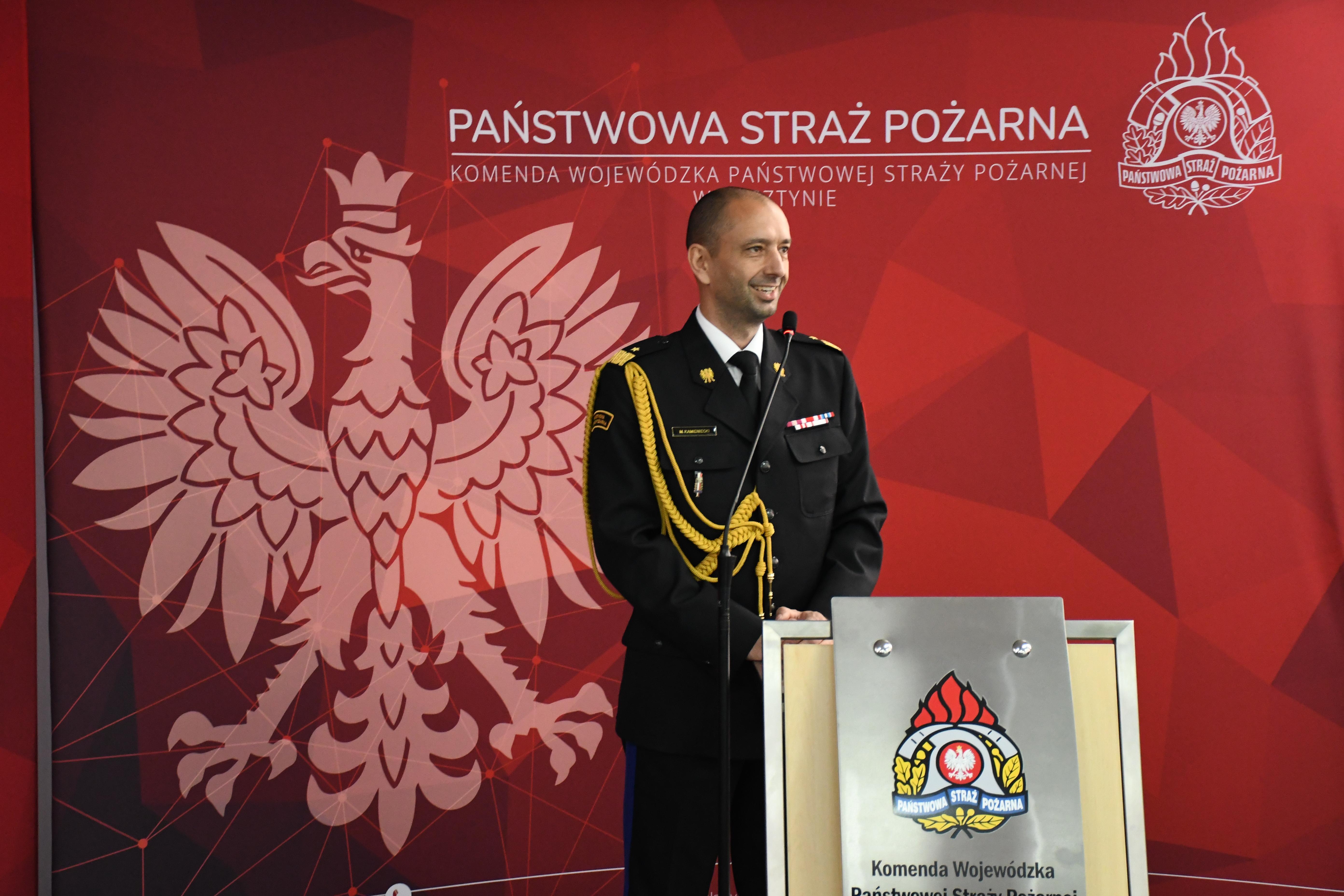 Warmińsko-Mazurski Komendant Wojewódzki Państwowej Straży Pożarnej nadbrygadier Michał Kamieniecki 4 maja podczas Centralnych Obchodów Dnia Strażaka w Warszawie odebrał z rąk Prezydenta RP nominację generalską. W poniedziałek 6 maja kadra kierownicza Państwowej Straży Pożarnej woj. warmińsko-mazurskiego oraz funkcjonariusze i pracownicy Komendy Wojewódzkiej PSP w Olsztynie spotkali się na uroczystej zbiórce, na której przywitano nadbrygadiera Michała Kamienieckiego Warmińsko-Mazurskiego Komendanta Wojewódzkiego PSP po nominacji generalskiej.
